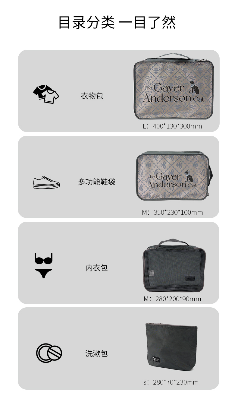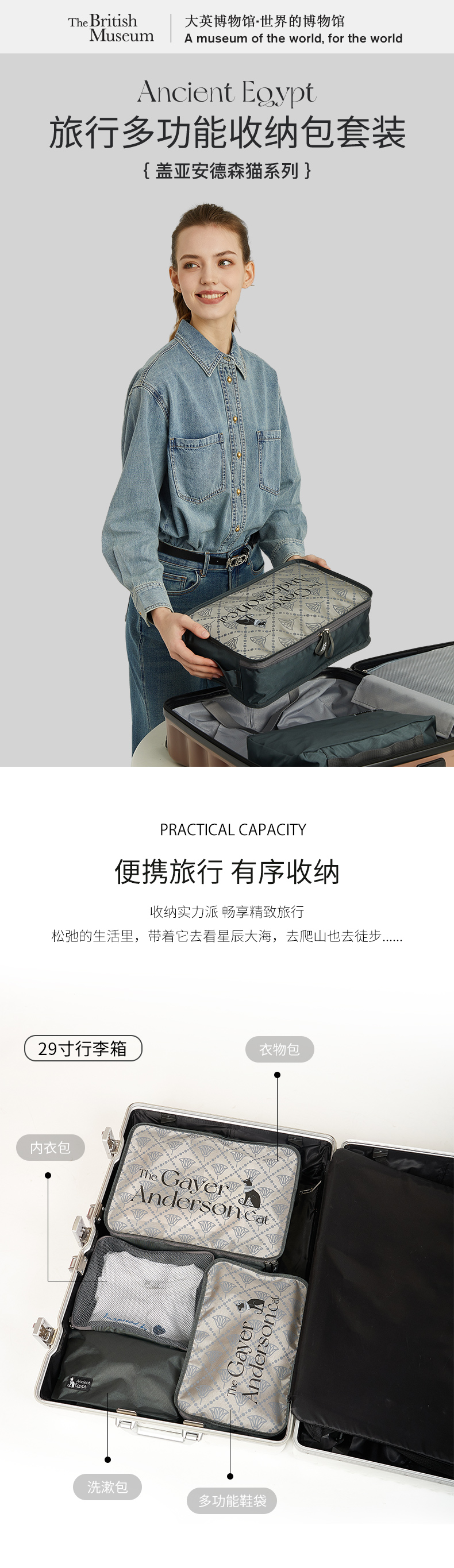 大英博物馆盖亚·安德森猫系列 旅行收纳三件套 鞋包分装袋衣物多功能收纳包套装