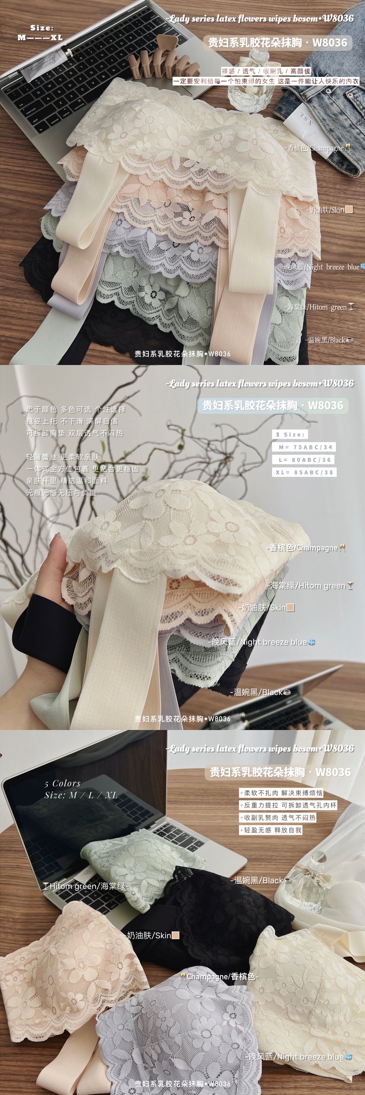【 贵妇系乳胶花朵抹胸?W8036 】