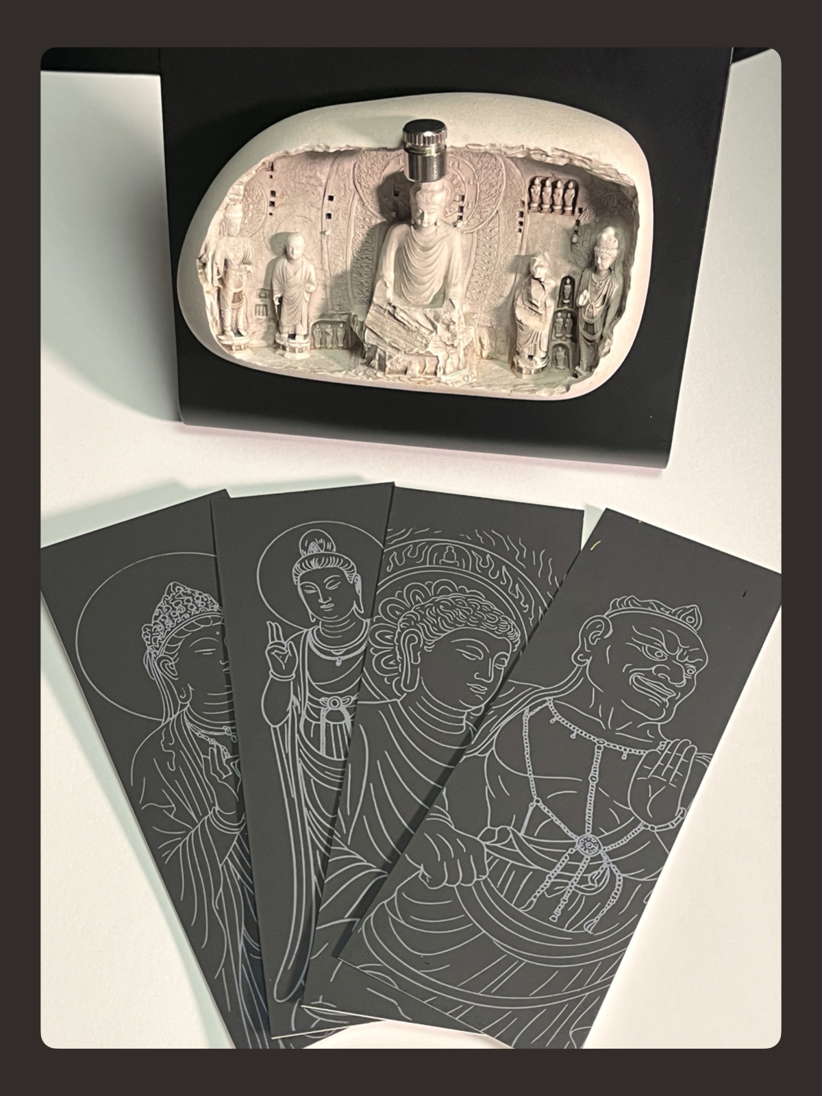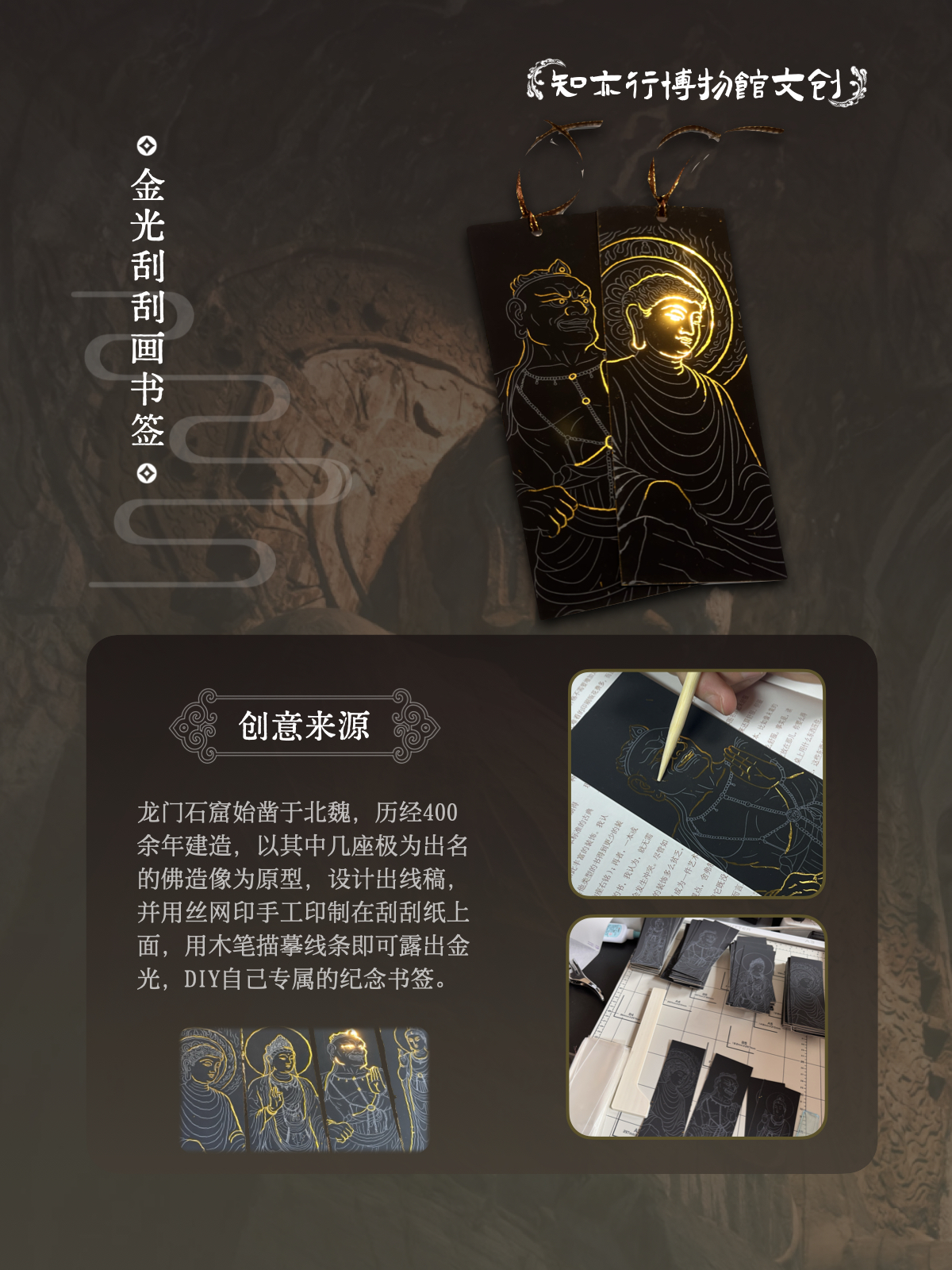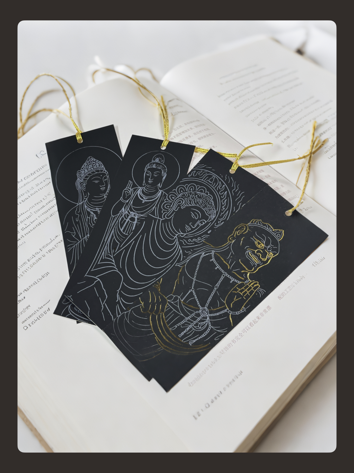 创意金光刮刮画书签龙门石窟雕塑diy便签手工制作礼物解压玩具