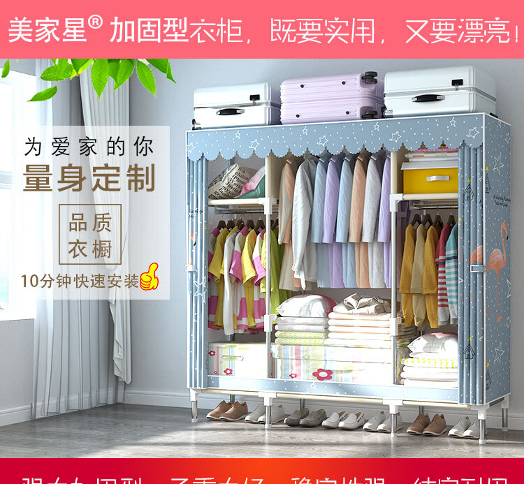 美家星 简易衣柜布衣柜防尘防潮牛津布衣柜钢管组装衣橱大容量加固型 100009620738