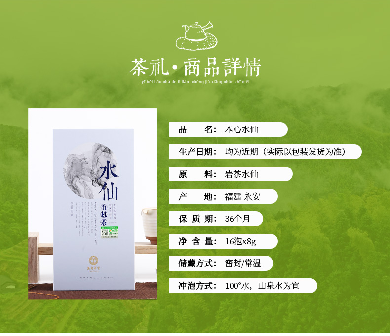 有机高山乌龙 本心水仙 128g/盒/16泡支持自提