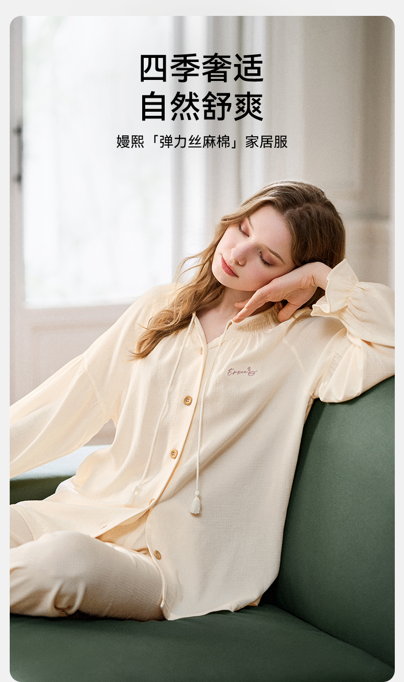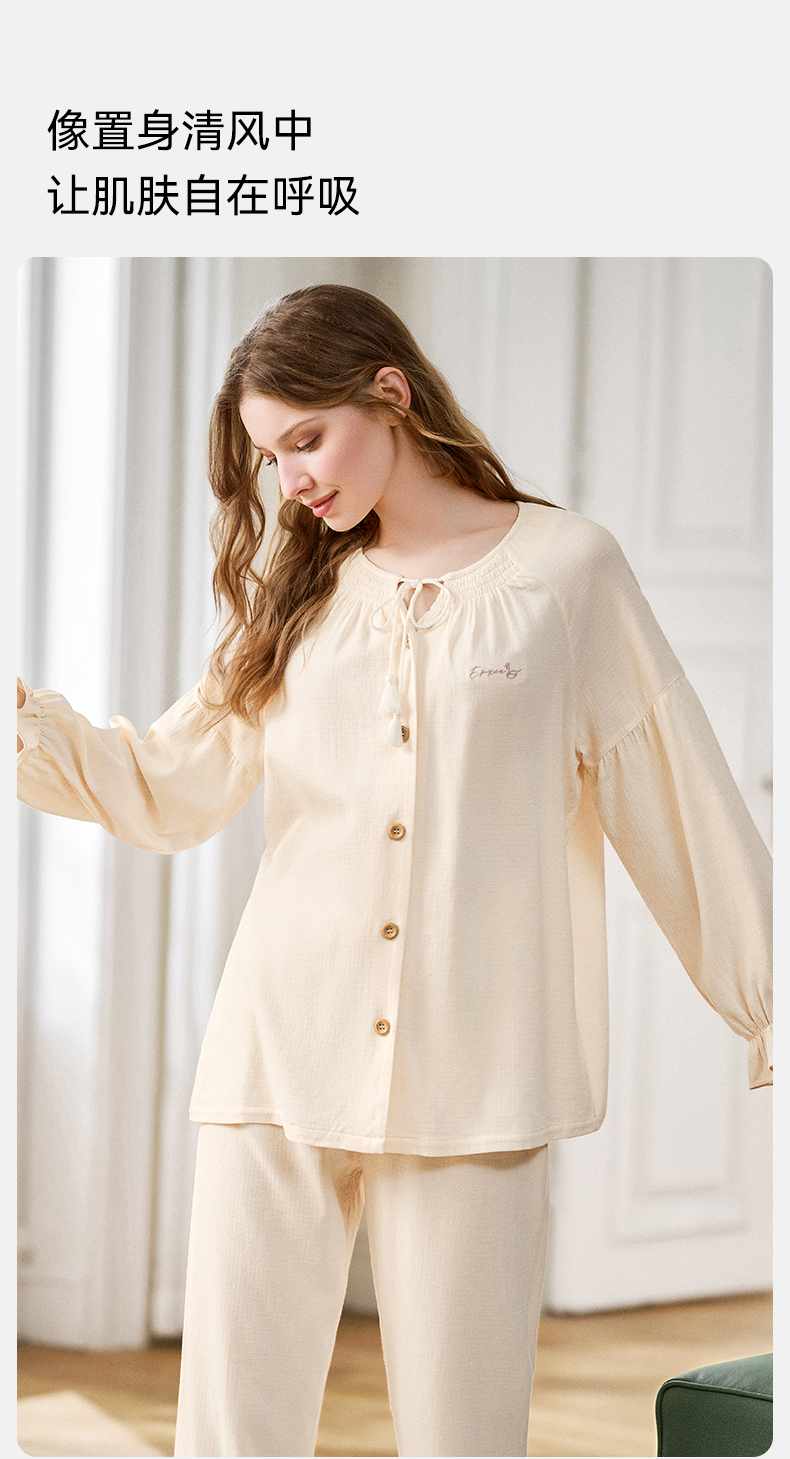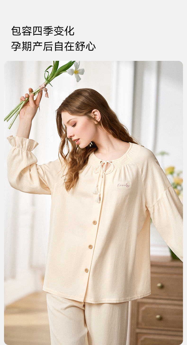 【家居服专场】嫚熙春夏季孕妇弹力丝麻棉哺乳睡衣产妇产后月子服家居服套装