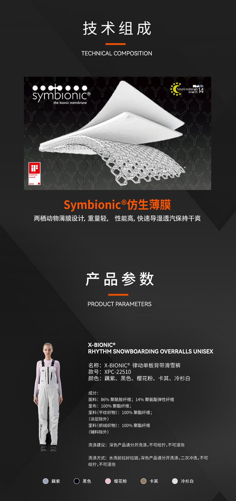 X-BIONIC 单板印花滑雪服上衣 专业背带滑雪裤 22511/22510