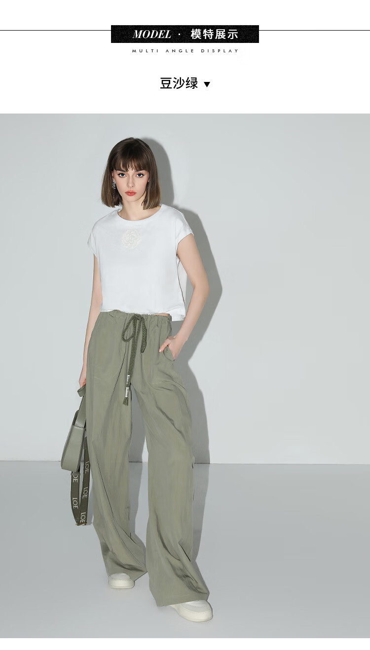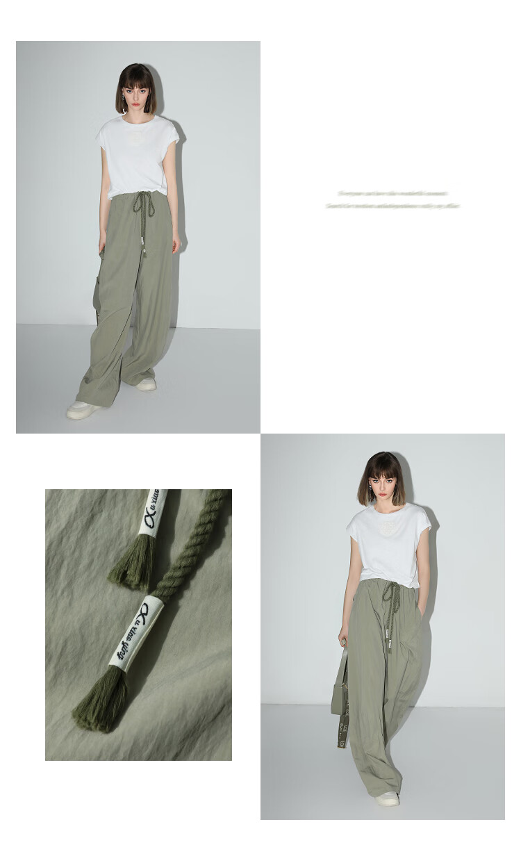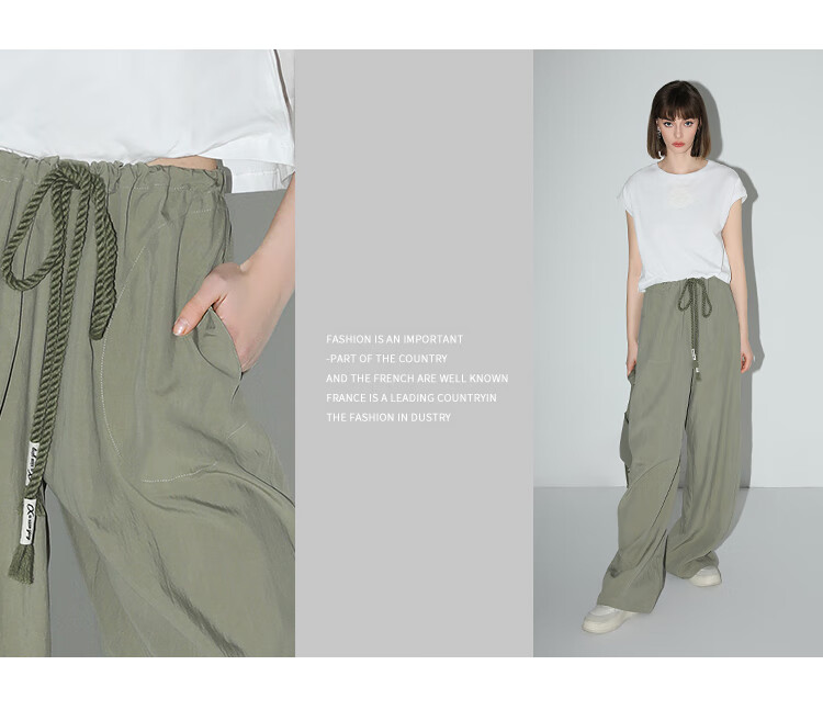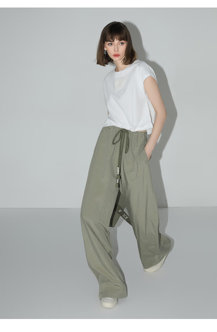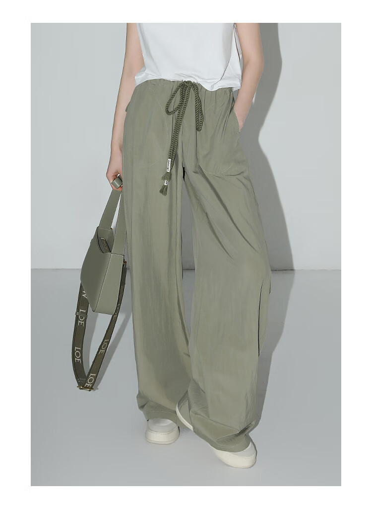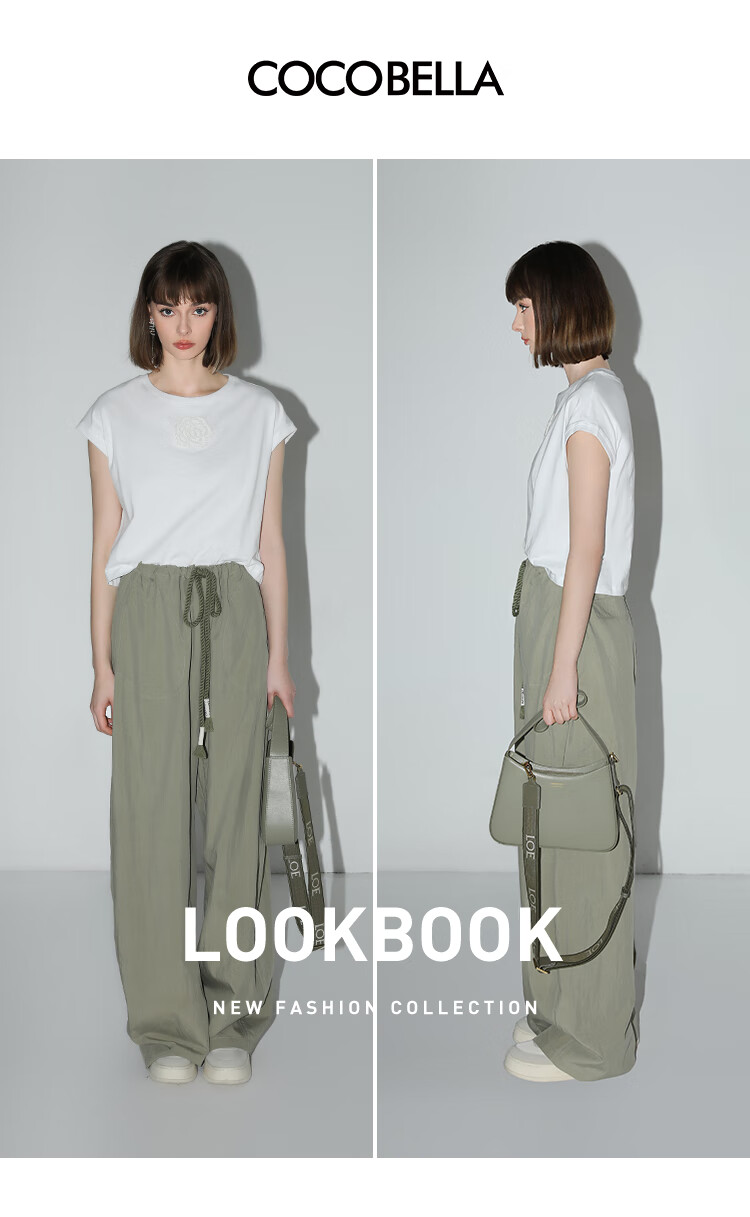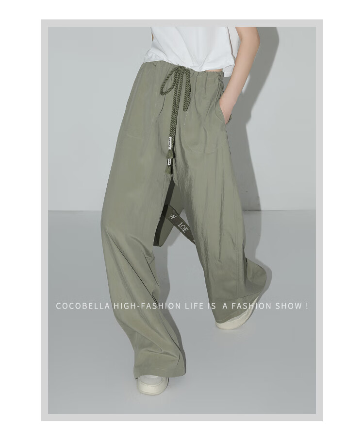 COCOBELLA设计感字母抽绳直筒休闲工装裤轻薄降落伞裤PA3018