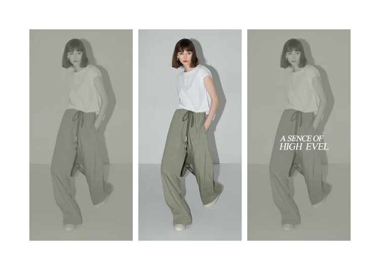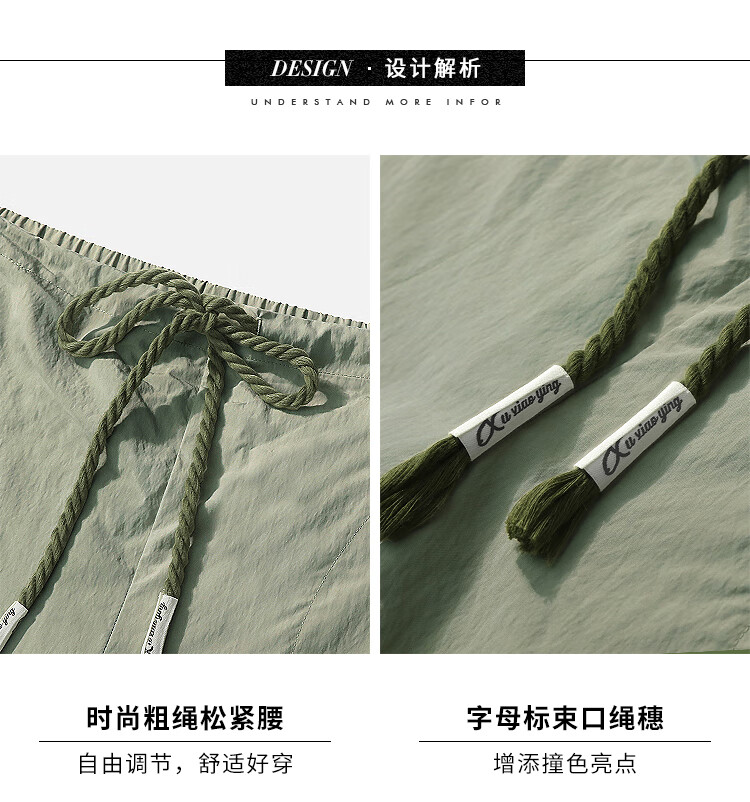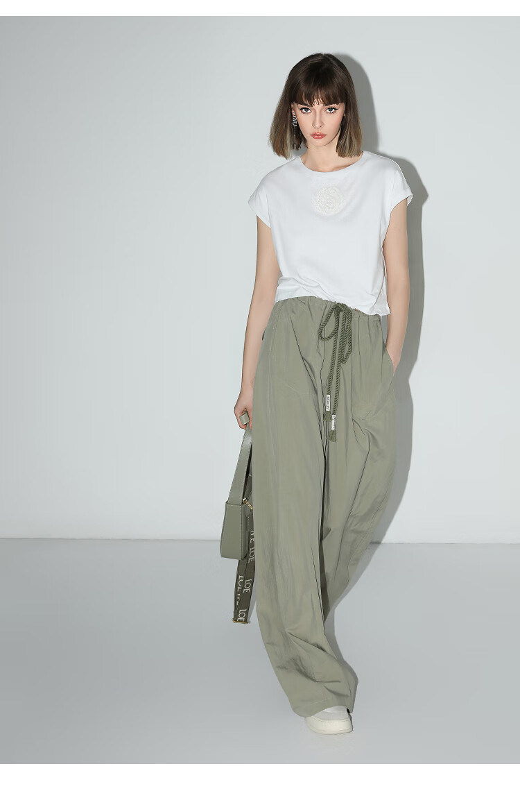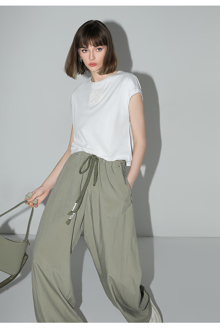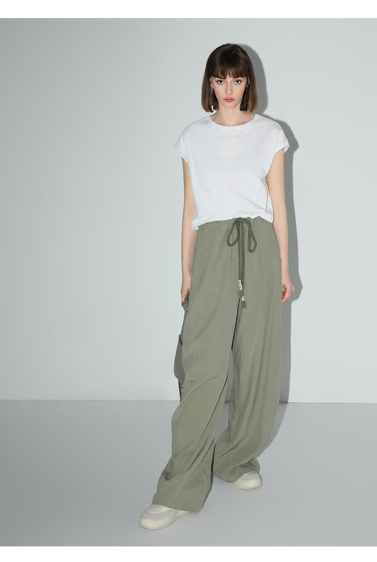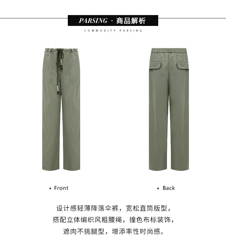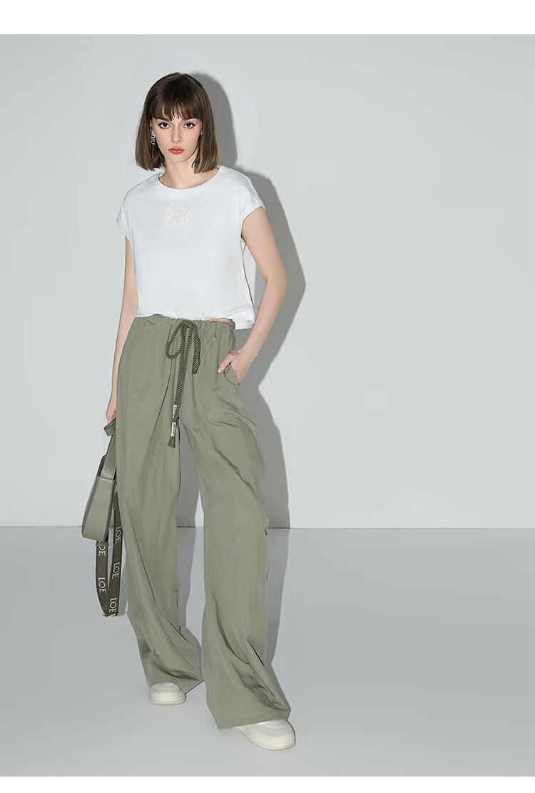 COCOBELLA设计感字母抽绳直筒休闲工装裤轻薄降落伞裤PA3018