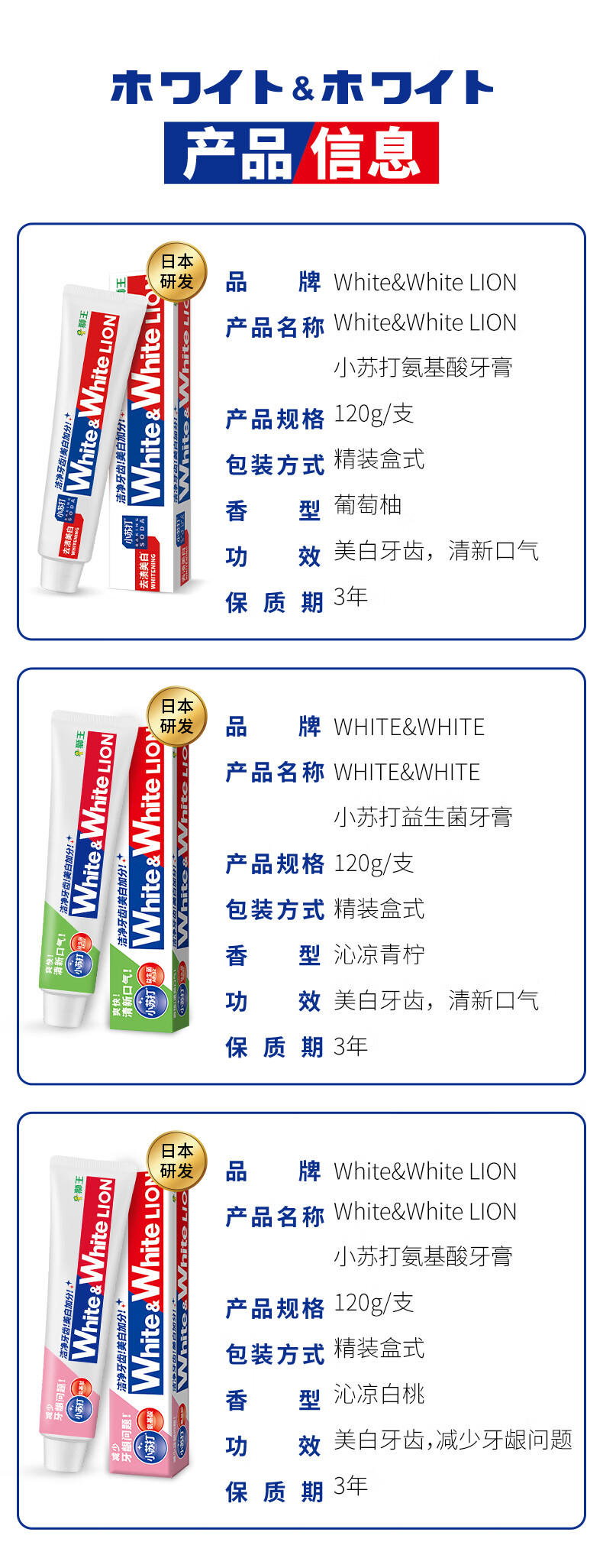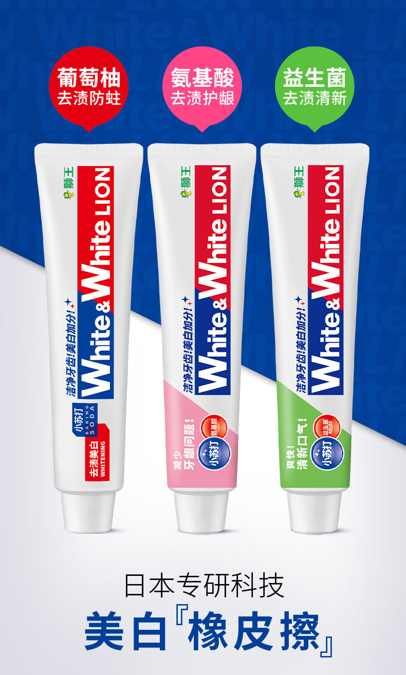 狮王葡萄柚小苏打元气美白牙膏120g/盒