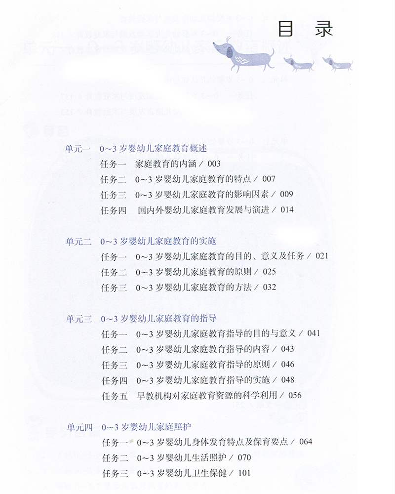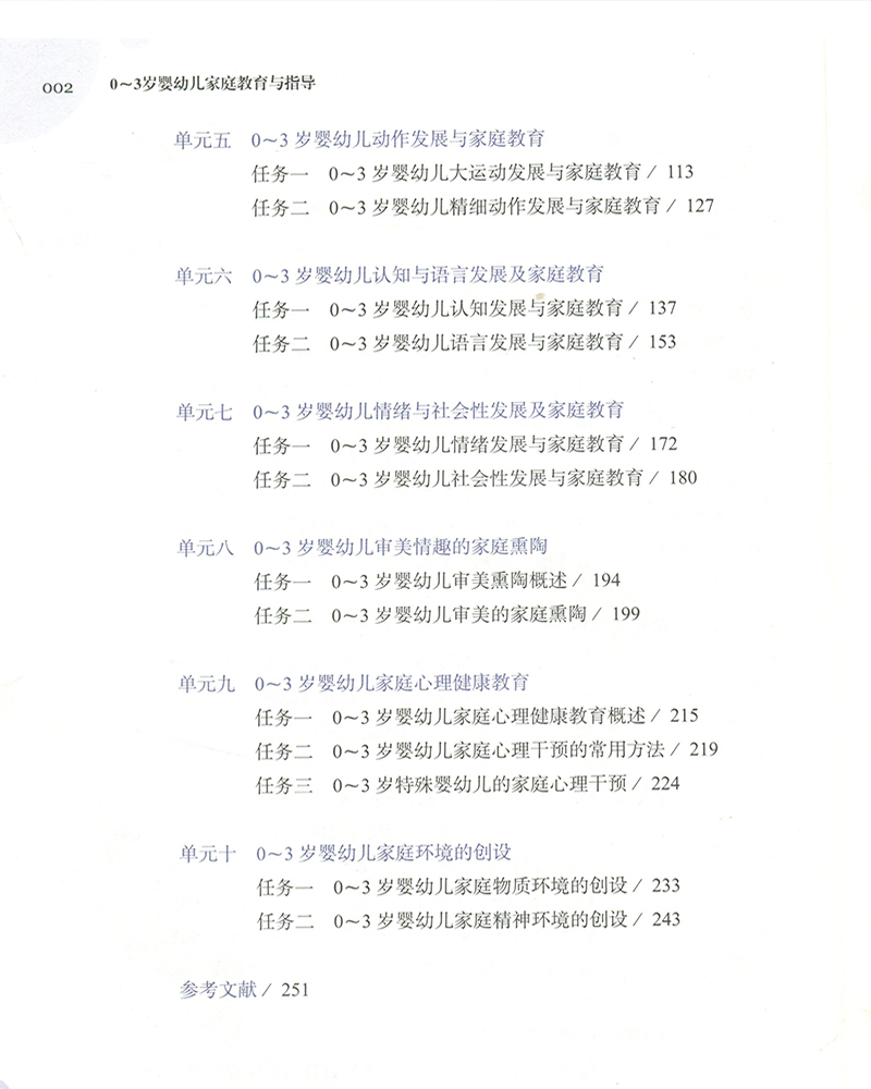 本教材简要介绍了0-3岁婴幼儿家庭教育的含义、特点、影响因素、实施及指导,并详述了0~3岁婴幼儿的家庭照护,婴幼儿动作、认知与语言、情绪与社会性、审美情趣、心理健康等领域的家庭教育具体实施要点以及家庭环境的创设。