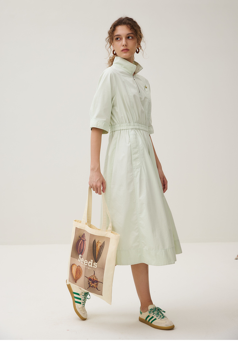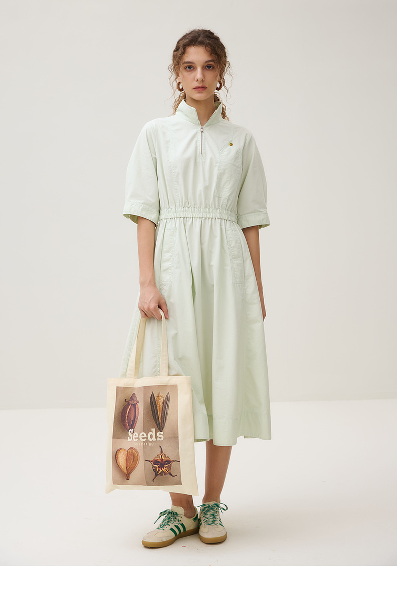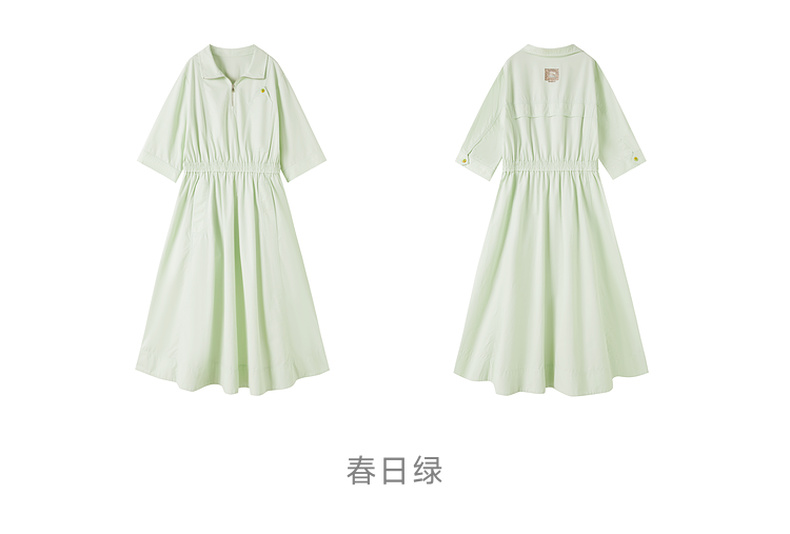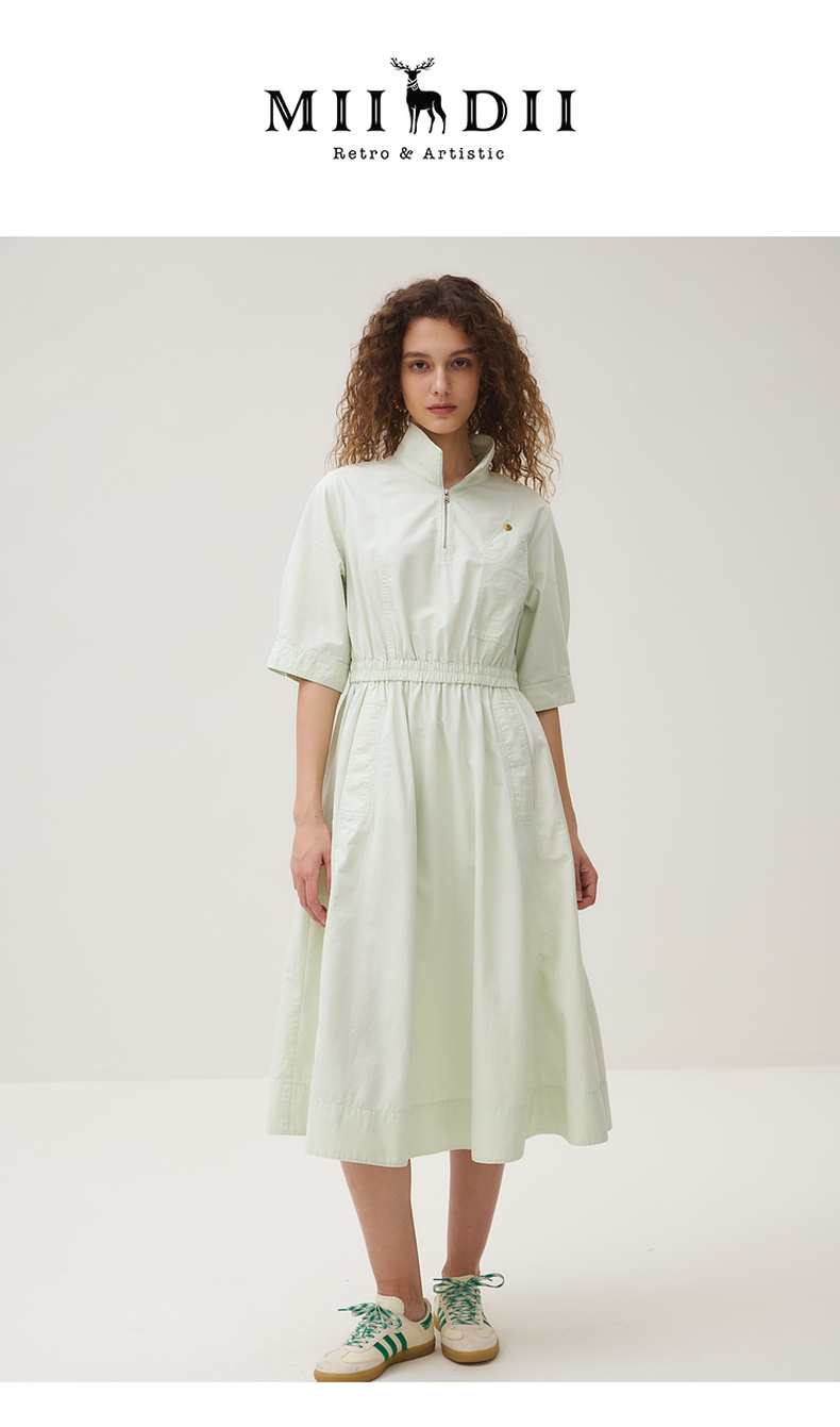 谜底连衣裙短袖女2025秋新品立领收腰磨毛亲肤特色长裙253ML1247