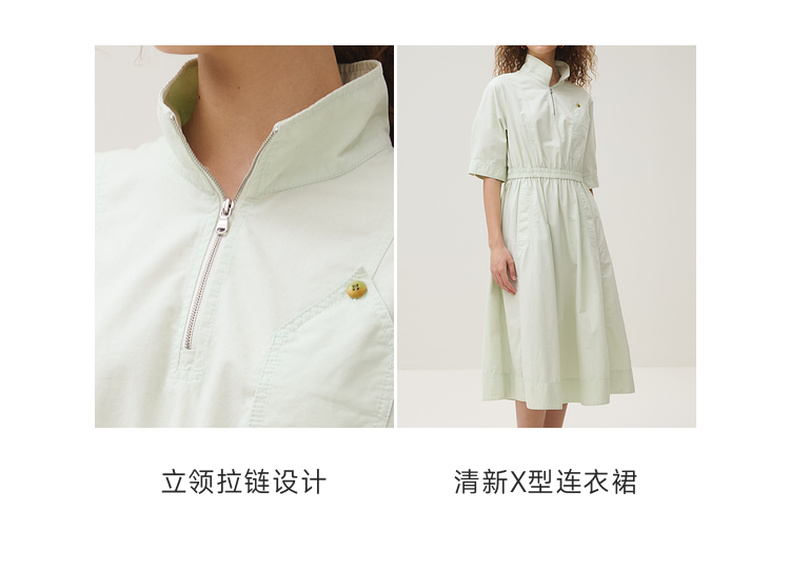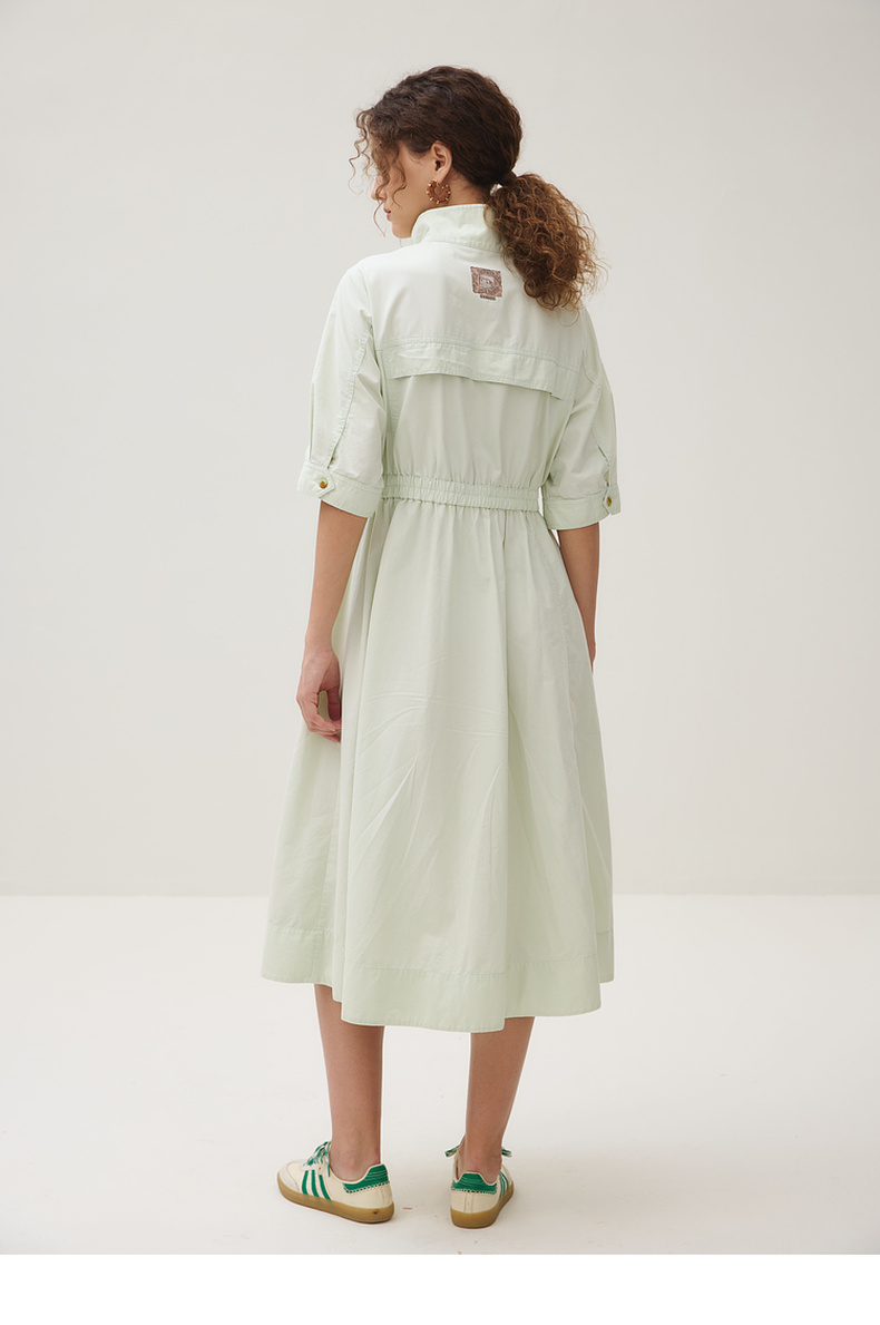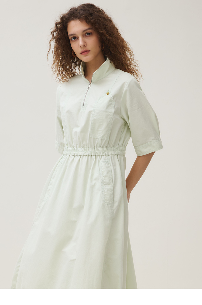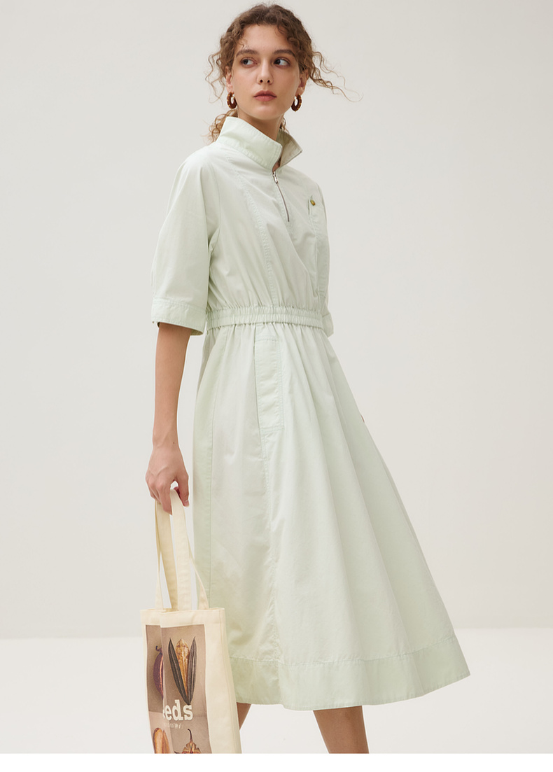 谜底连衣裙短袖女2025秋新品立领收腰磨毛亲肤特色长裙253ML1247