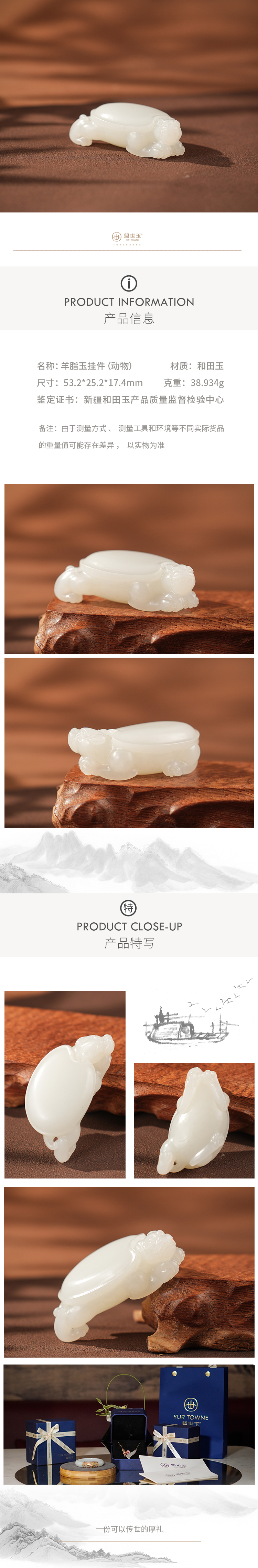 「年礼优选」【莱福】羊脂白玉福牌