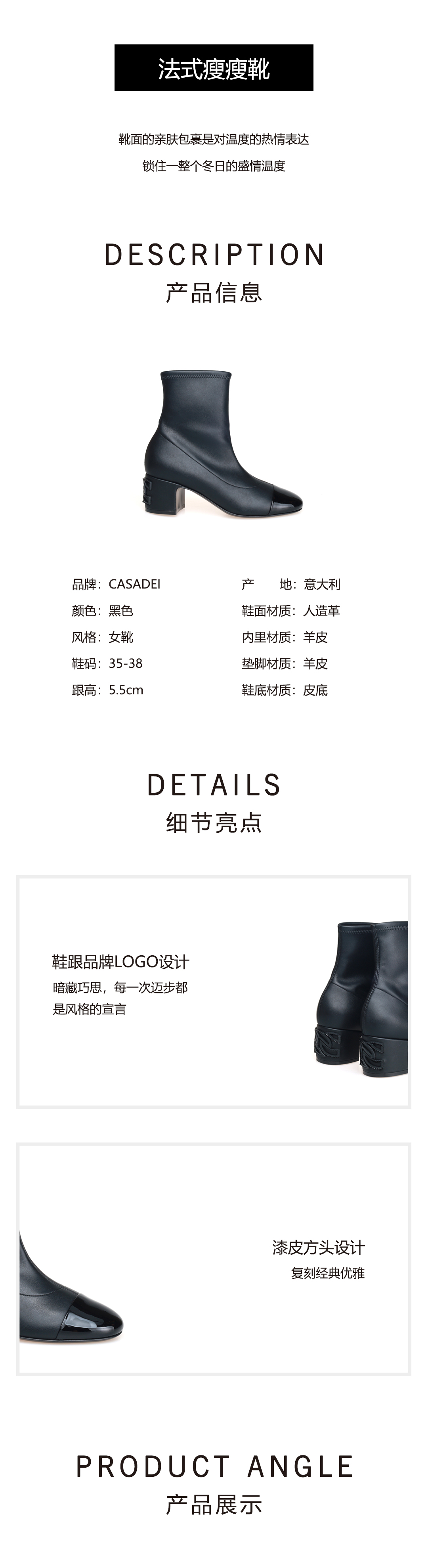 豪麟名鞋CASADEI女鞋短靴人造革1R534黑色