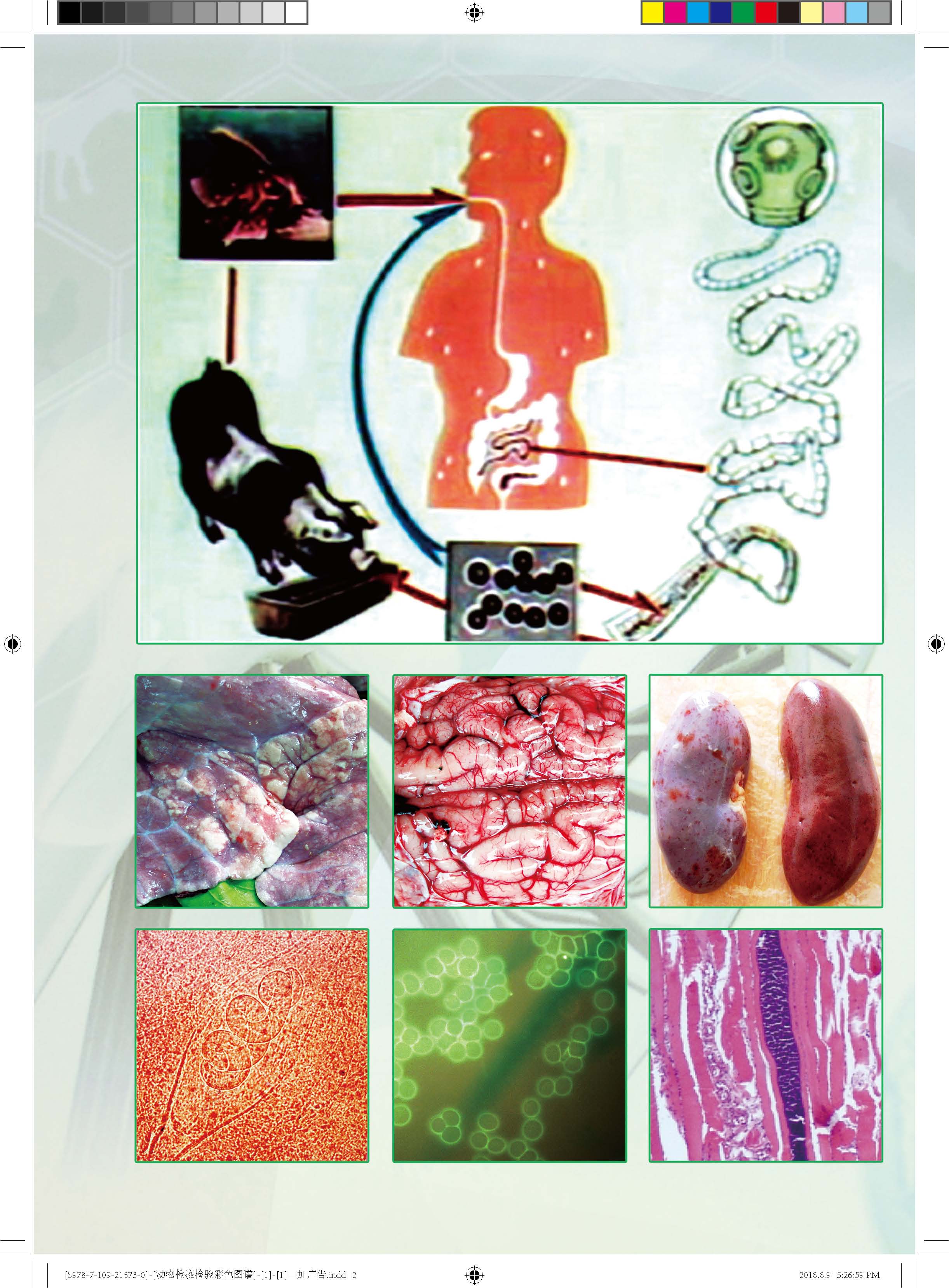 修订后的《动物检疫检验彩色图谱》分为常见人畜共患病、动物其他疾病、组织器官病变和动物肿瘤、病害肉和品质异常肉以及动物肉种类形态学鉴别等五章。包括动物疾病90种(类)、动物组织器官病变80余种、动物肿瘤近20种,共有彩色图片1581幅。