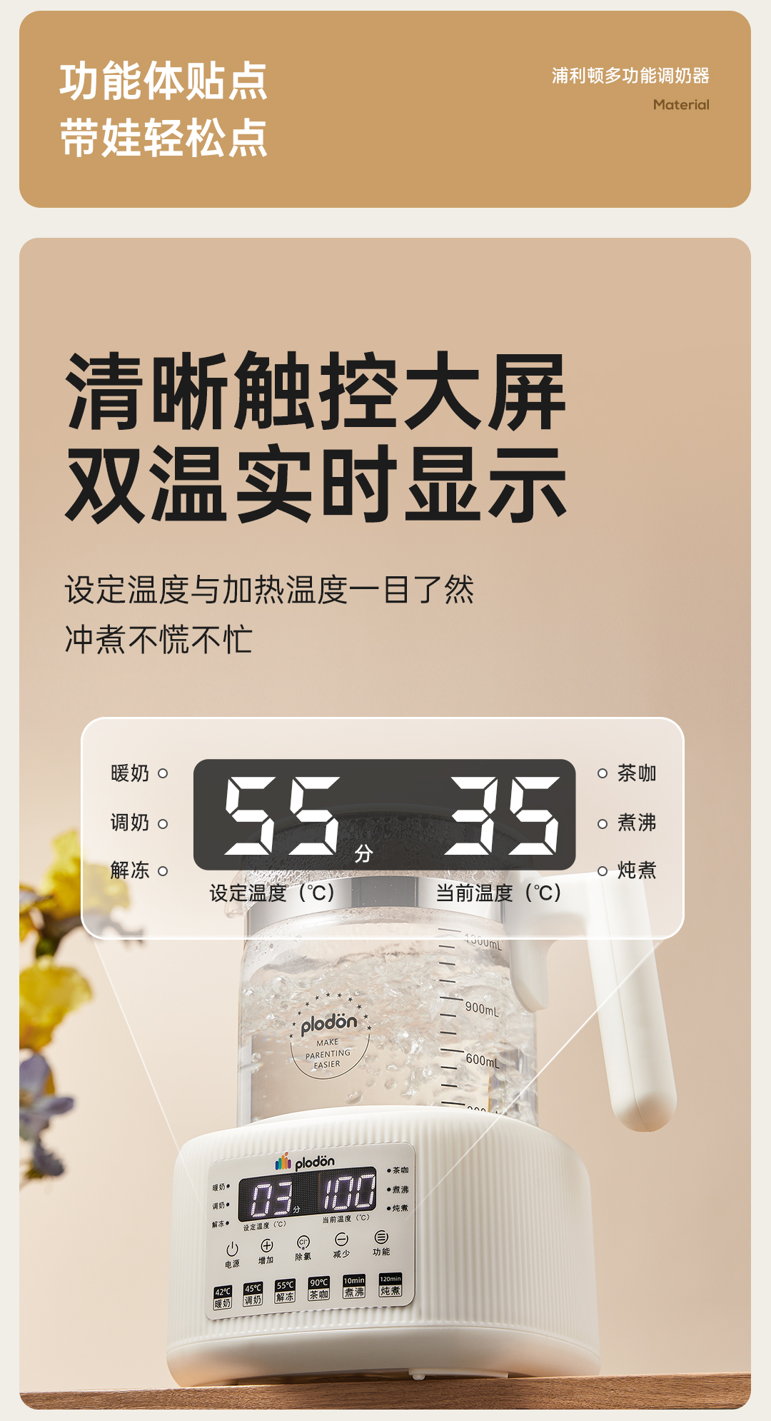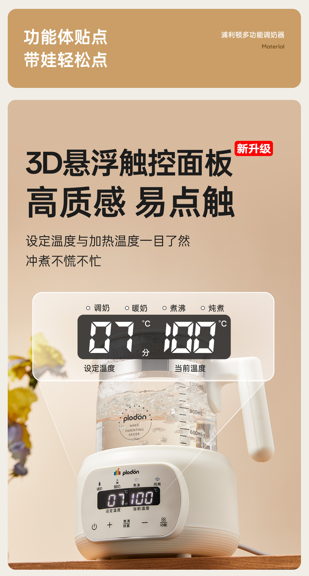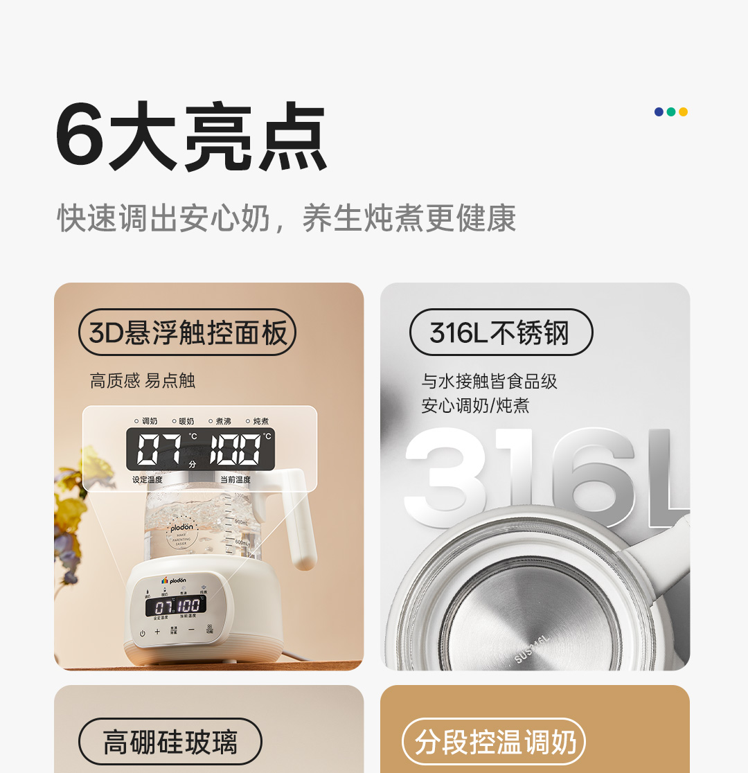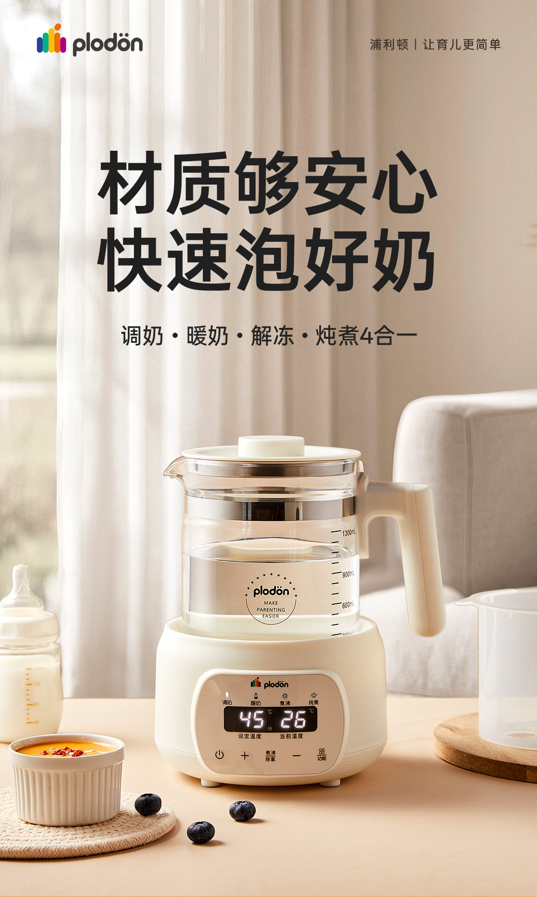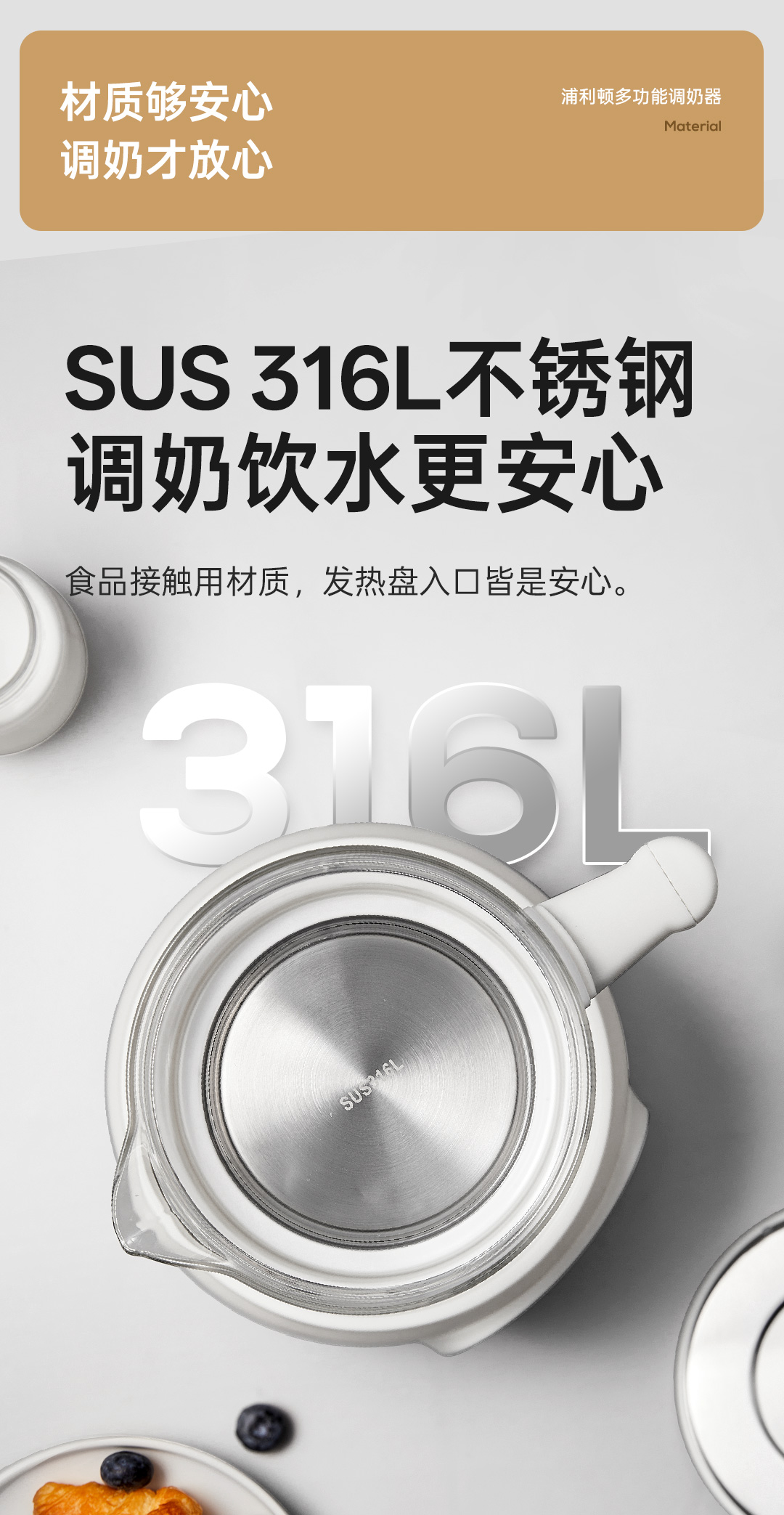 浦利顿调奶器多功能婴儿热奶温奶电热养生壶316 1.3L不锈钢调奶器13A05/13A04