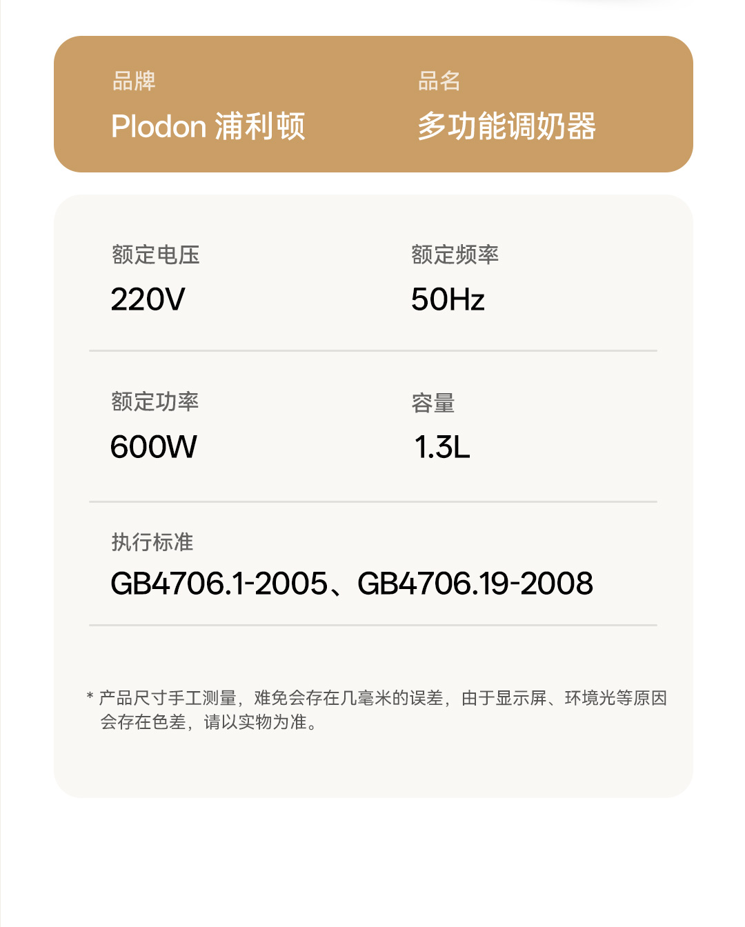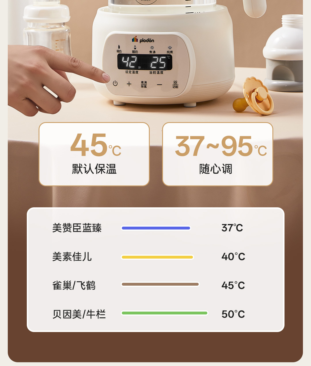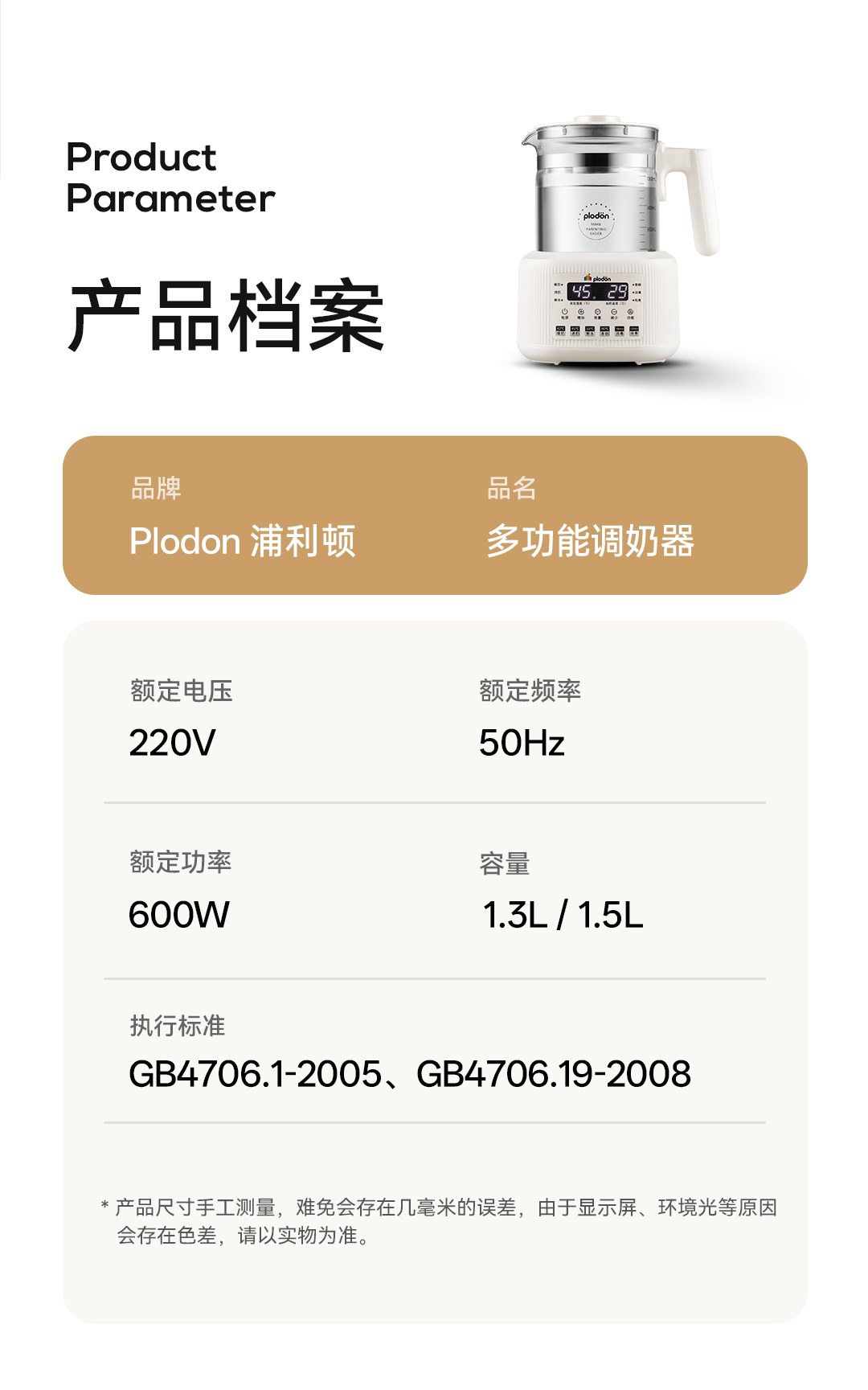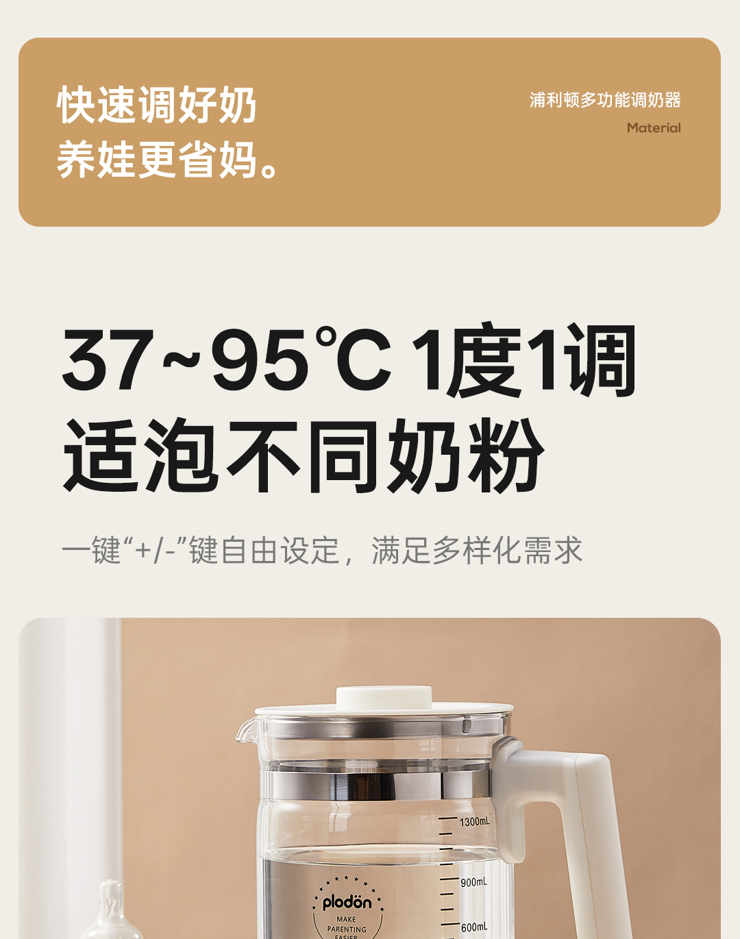 浦利顿调奶器多功能婴儿热奶温奶电热养生壶316 1.3L不锈钢调奶器13A05/13A04
