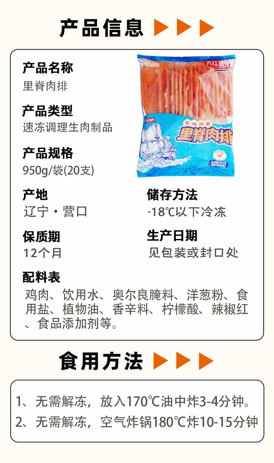 大红德邻里脊肉排 950g/袋(20支) 10袋/件