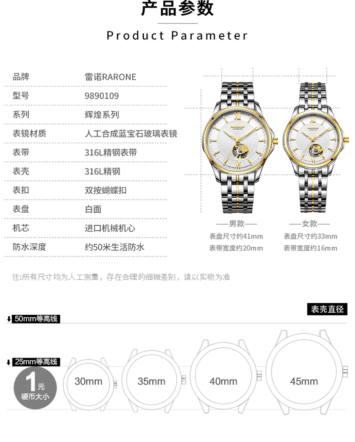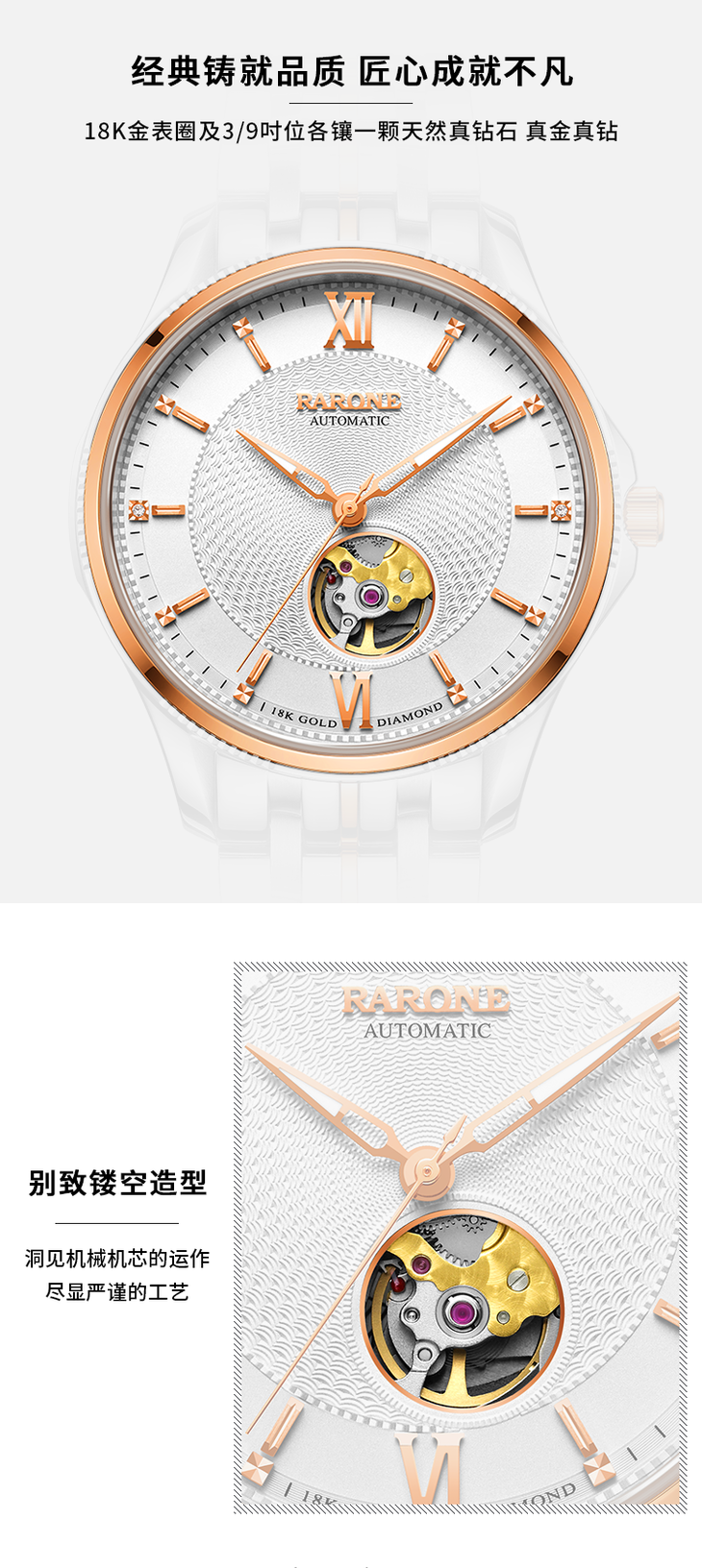 RARONE雷诺表臻诚系列机械腕表989010