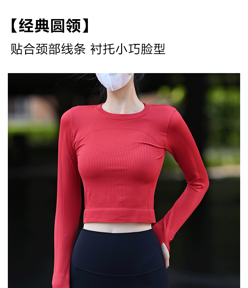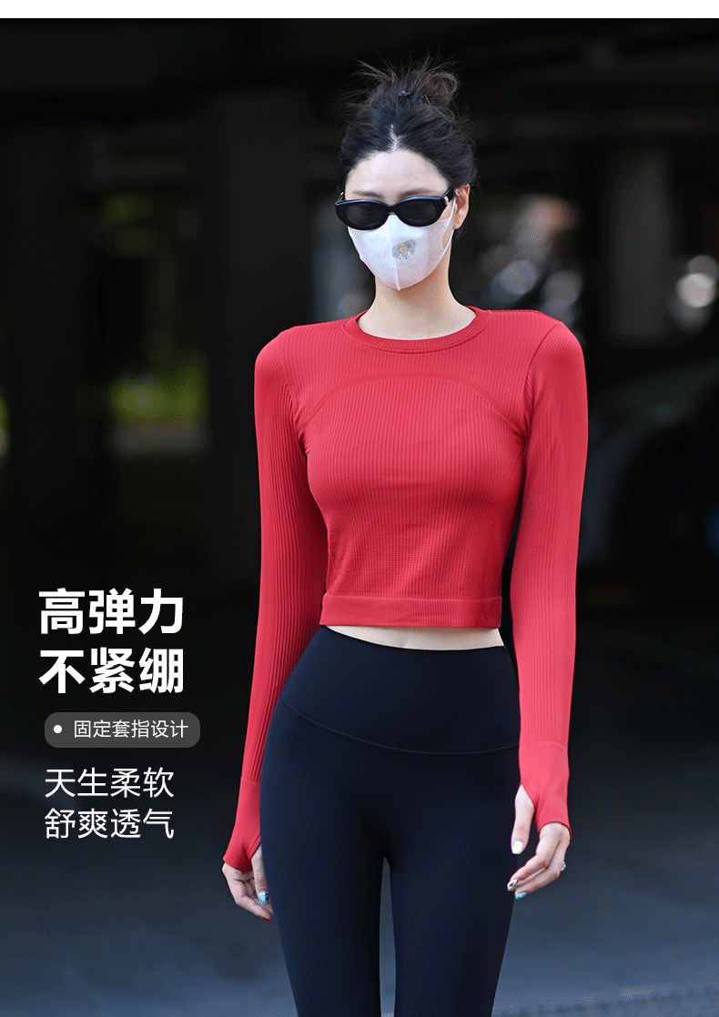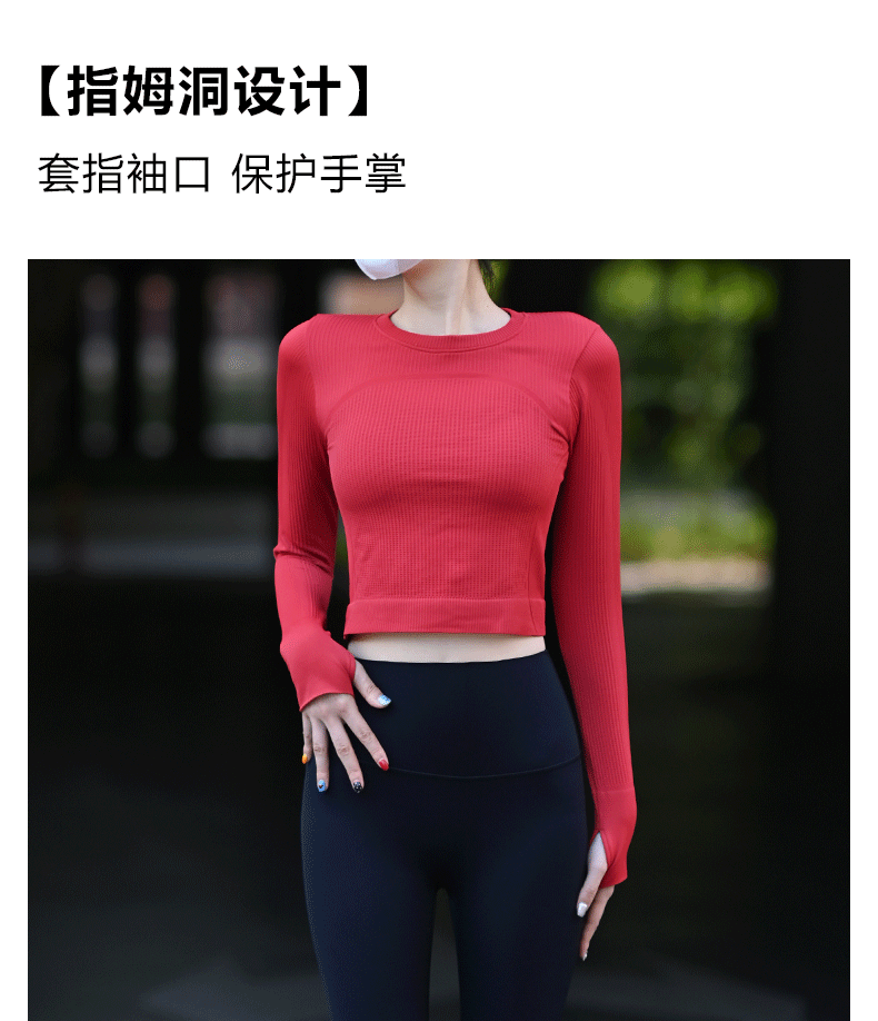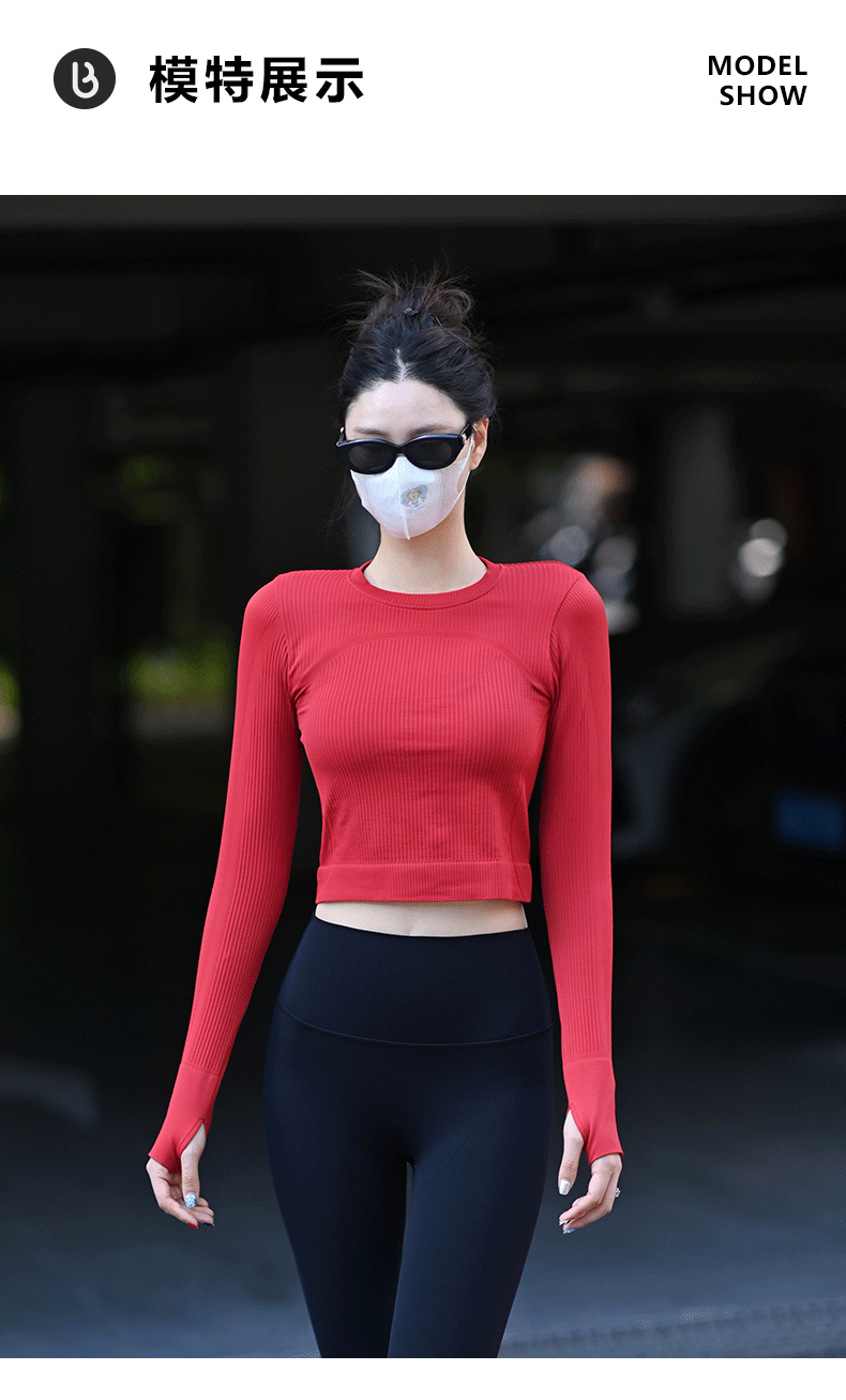 Beemen新款女式华夫格瑜伽上衣 长袖运动款修身紧身 速干透气健身服 户外室内瑜伽训练服