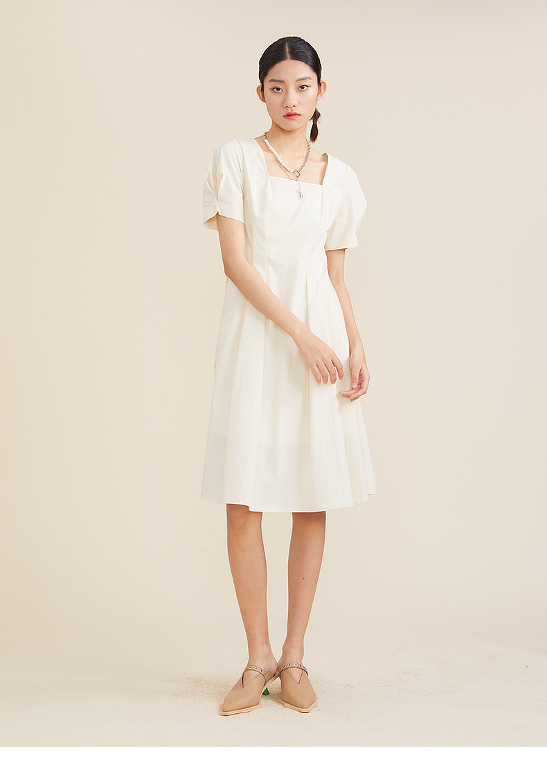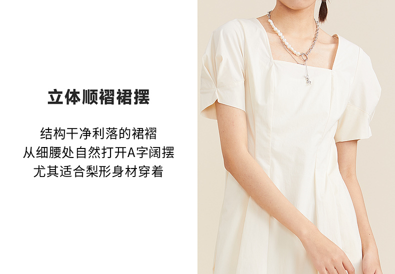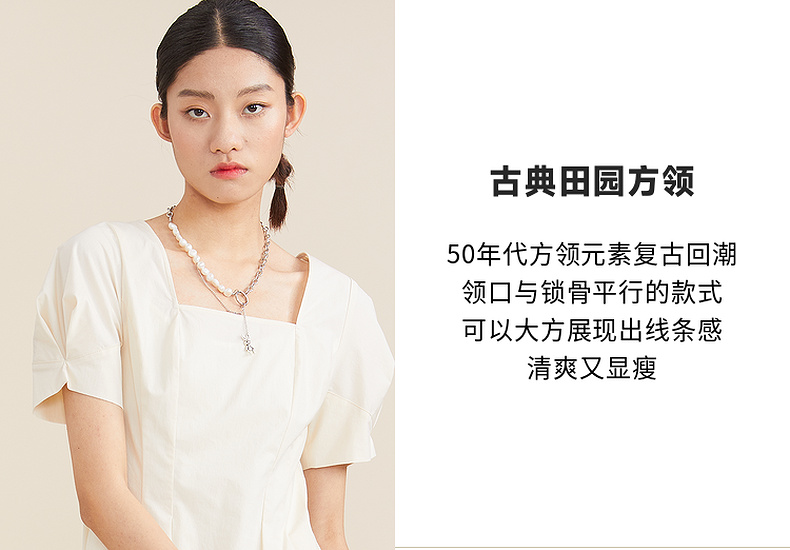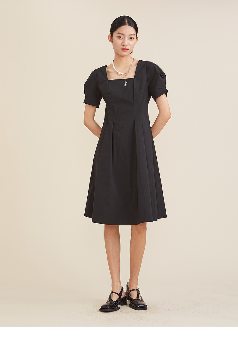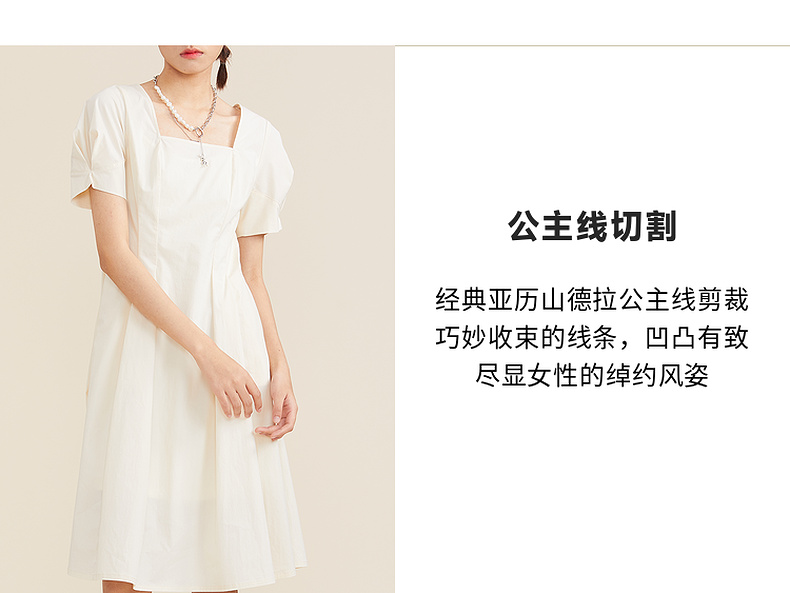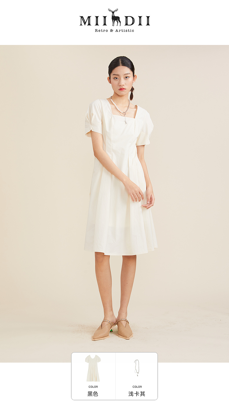 谜底2022夏季新款复古优雅修身收腰方领泡泡短袖连衣裙222ML0582