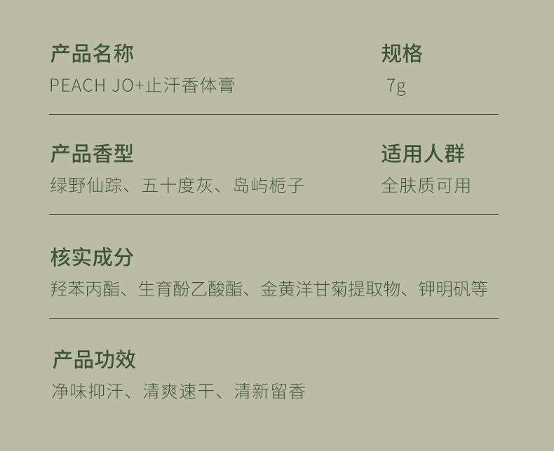 「9.9到手!买2送1」PEACH JO+止汗香体膏 净味清爽香体膏栀子淡香留香止汗香水棒香氛精油