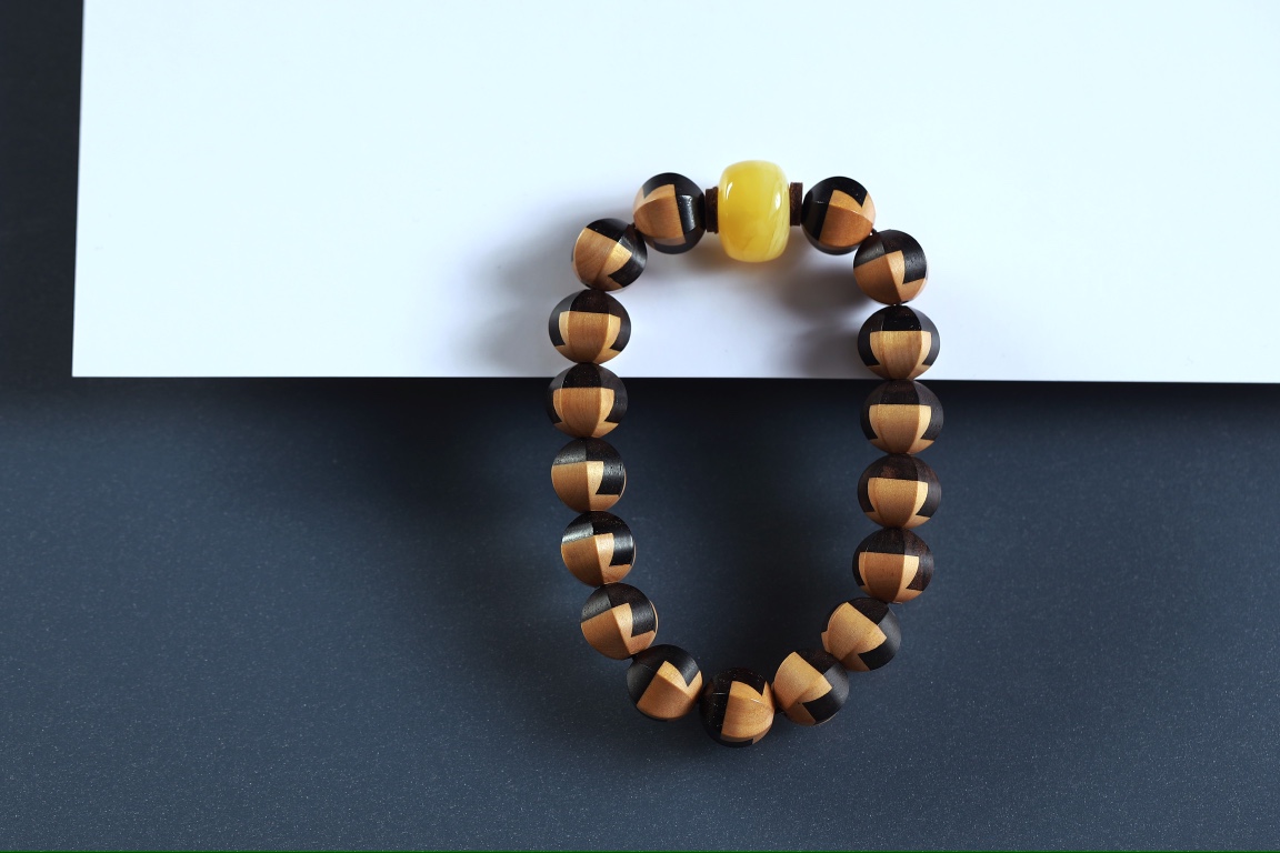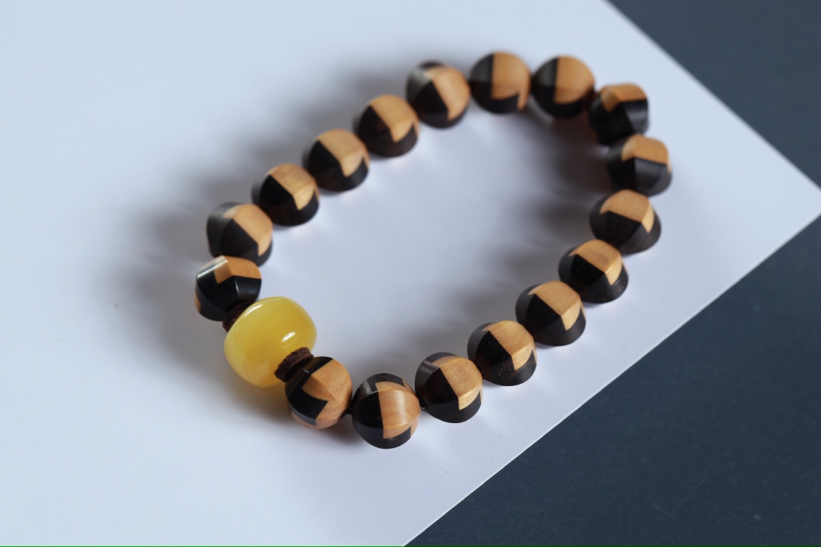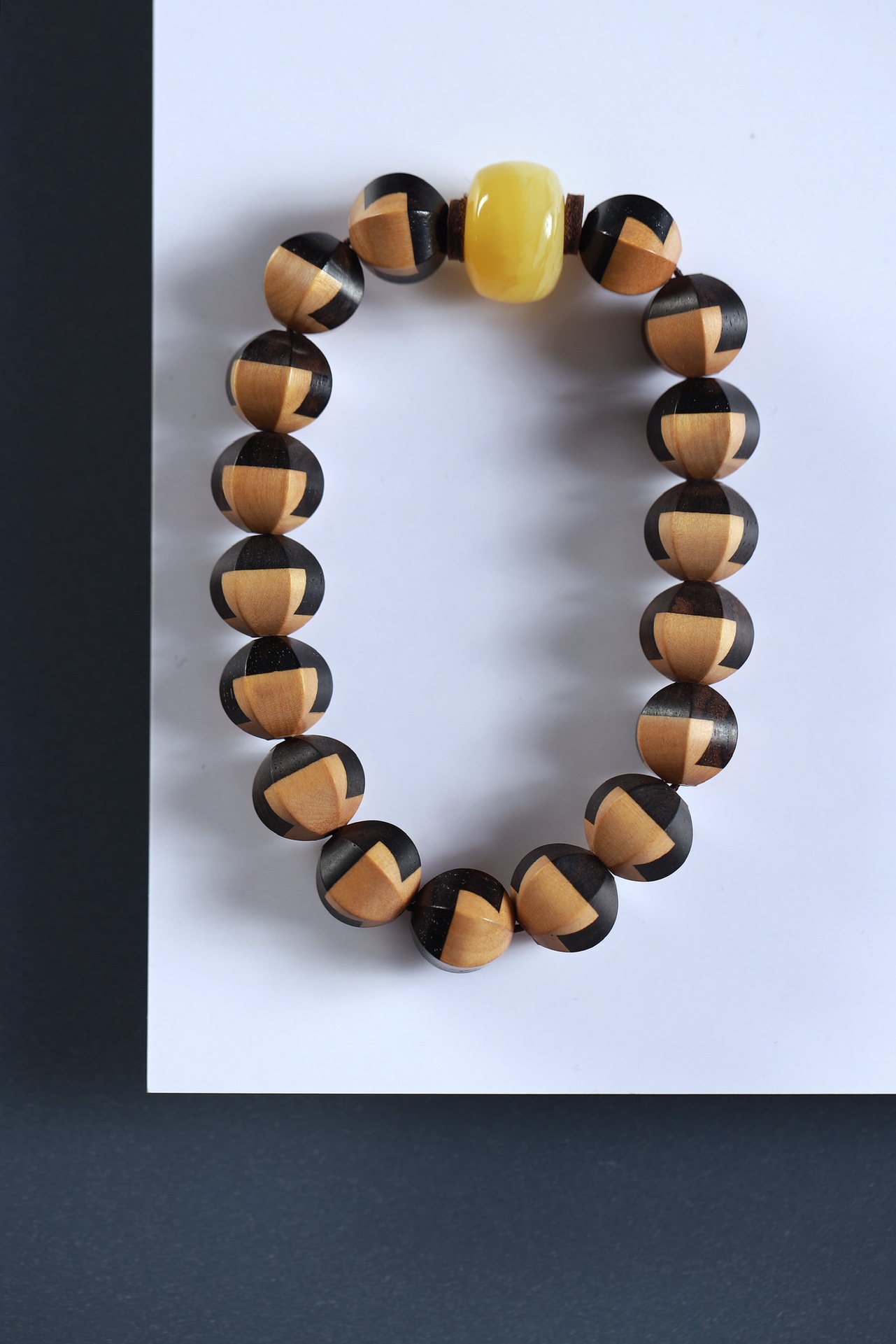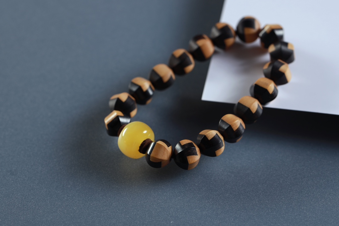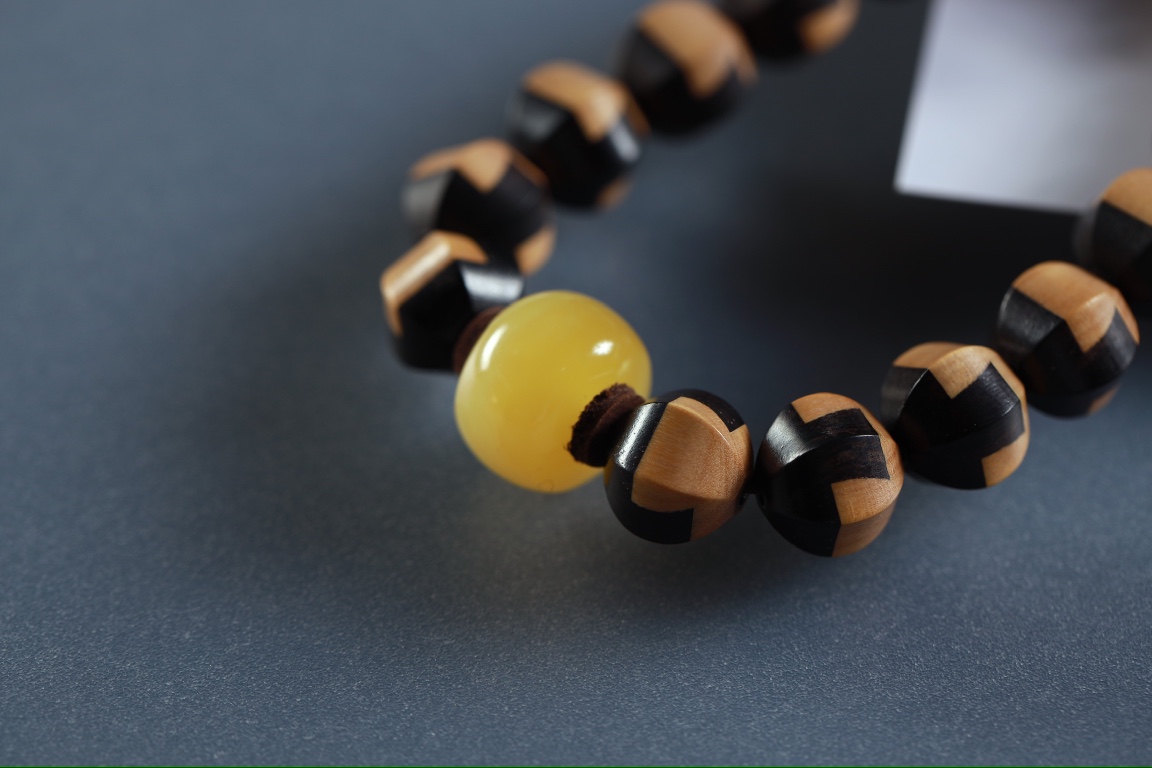 丨经典燕尾榫榫卯珠(紫光檀+黄杨木)&老蜡蜜蜡/牛皮