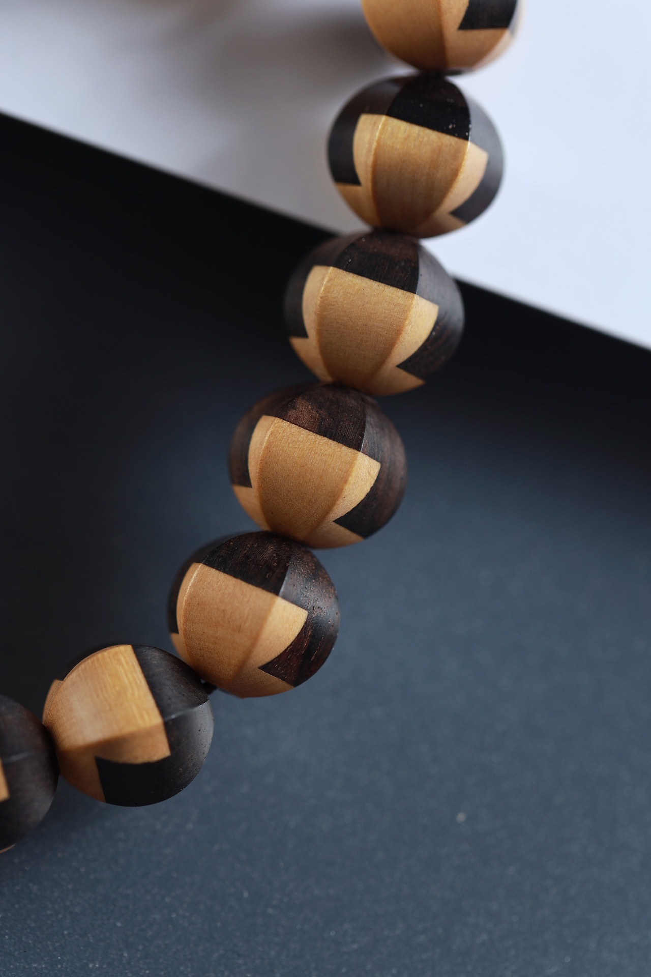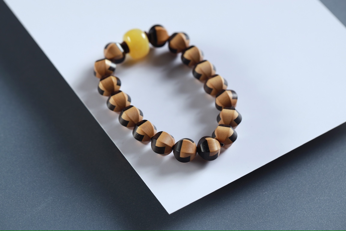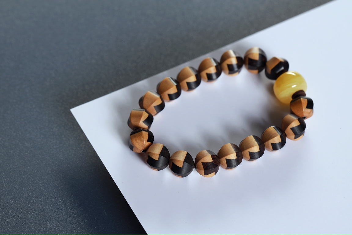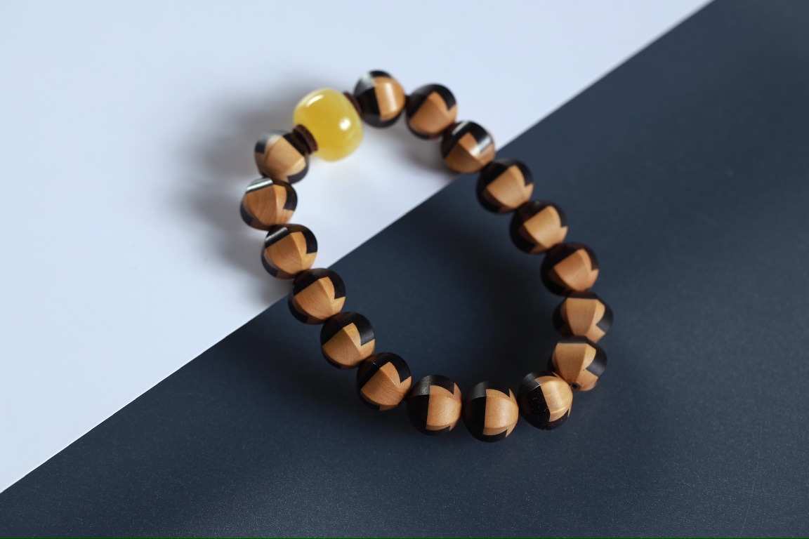 丨经典燕尾榫榫卯珠(紫光檀+黄杨木)&老蜡蜜蜡/牛皮