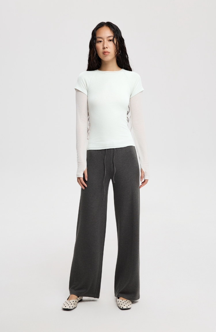 Oneup天丝亚麻系带直筒裤