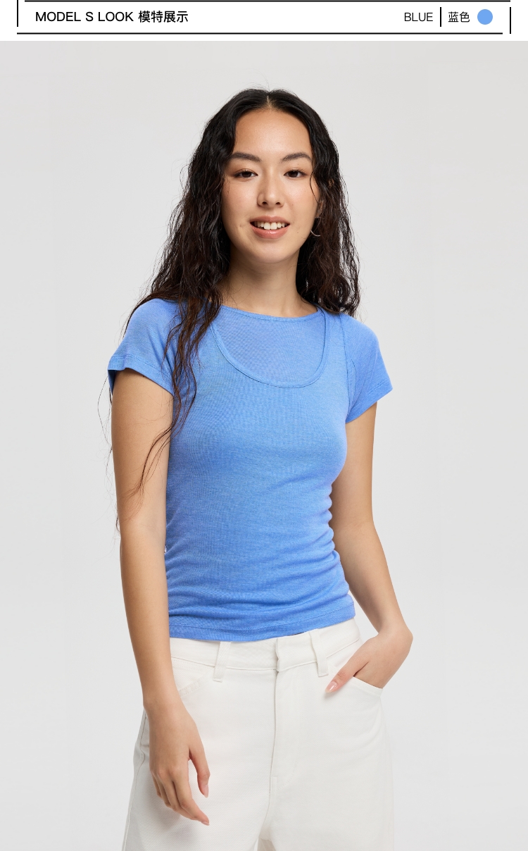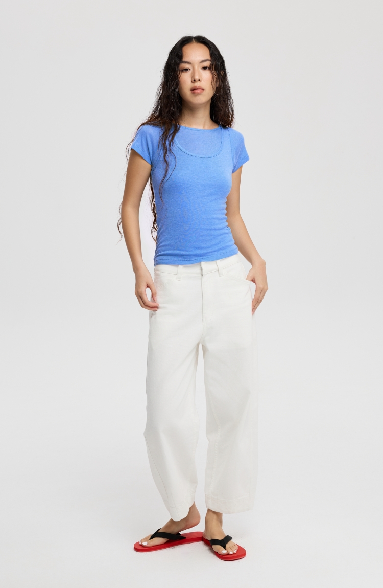 Oneup亚麻卷边针织正肩短袖