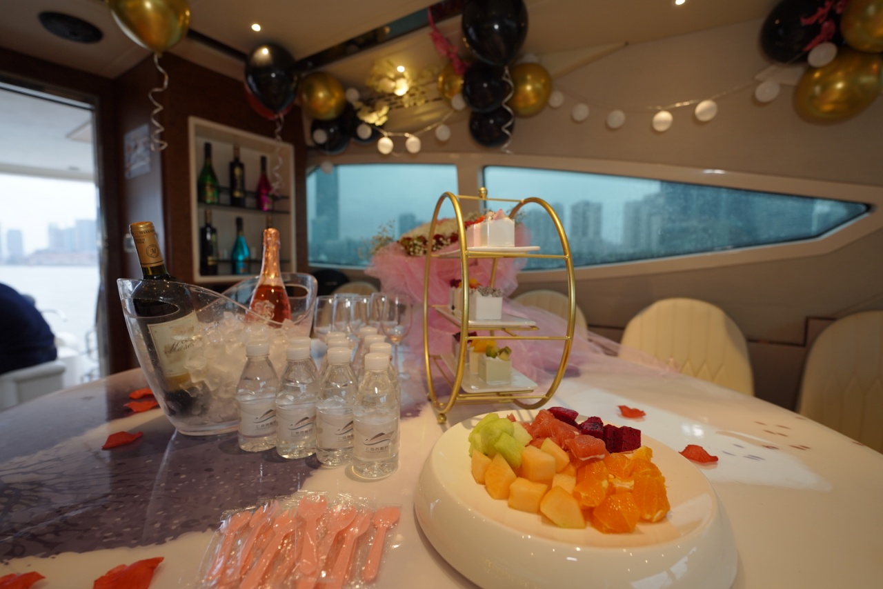 游艇赠送:香槟,矿水,软饮