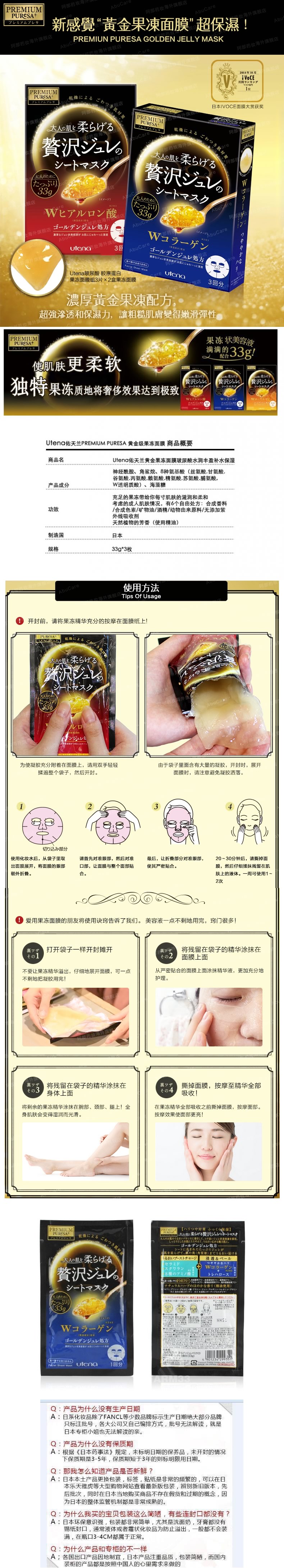 Utena佑天兰 胶原蛋白面膜蓝色 3片 日本