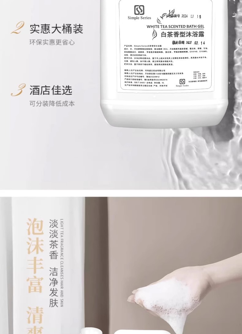 五星级酒店专用洗发水沐浴露白茶套装大桶分装瓶宾馆民宿洗手液商