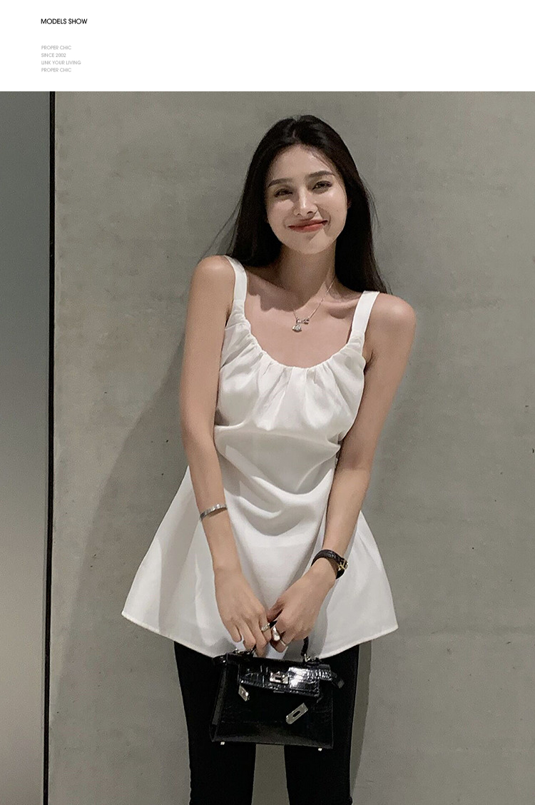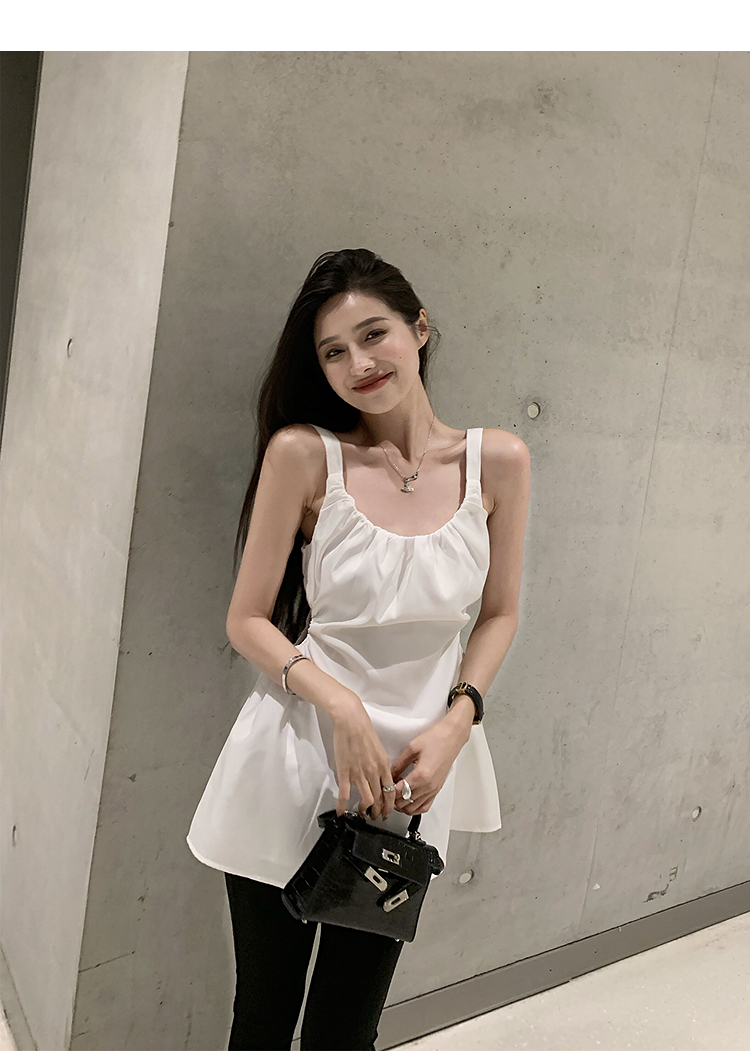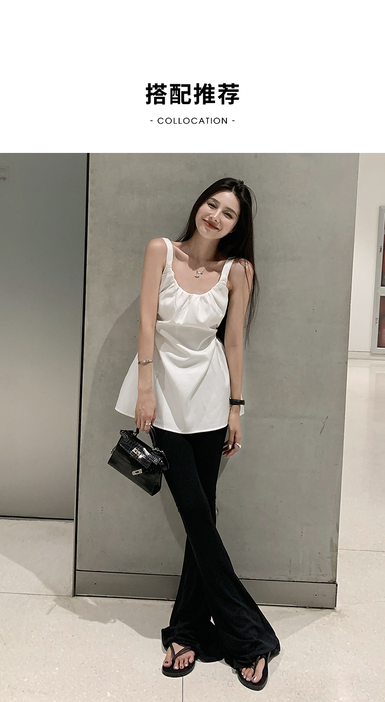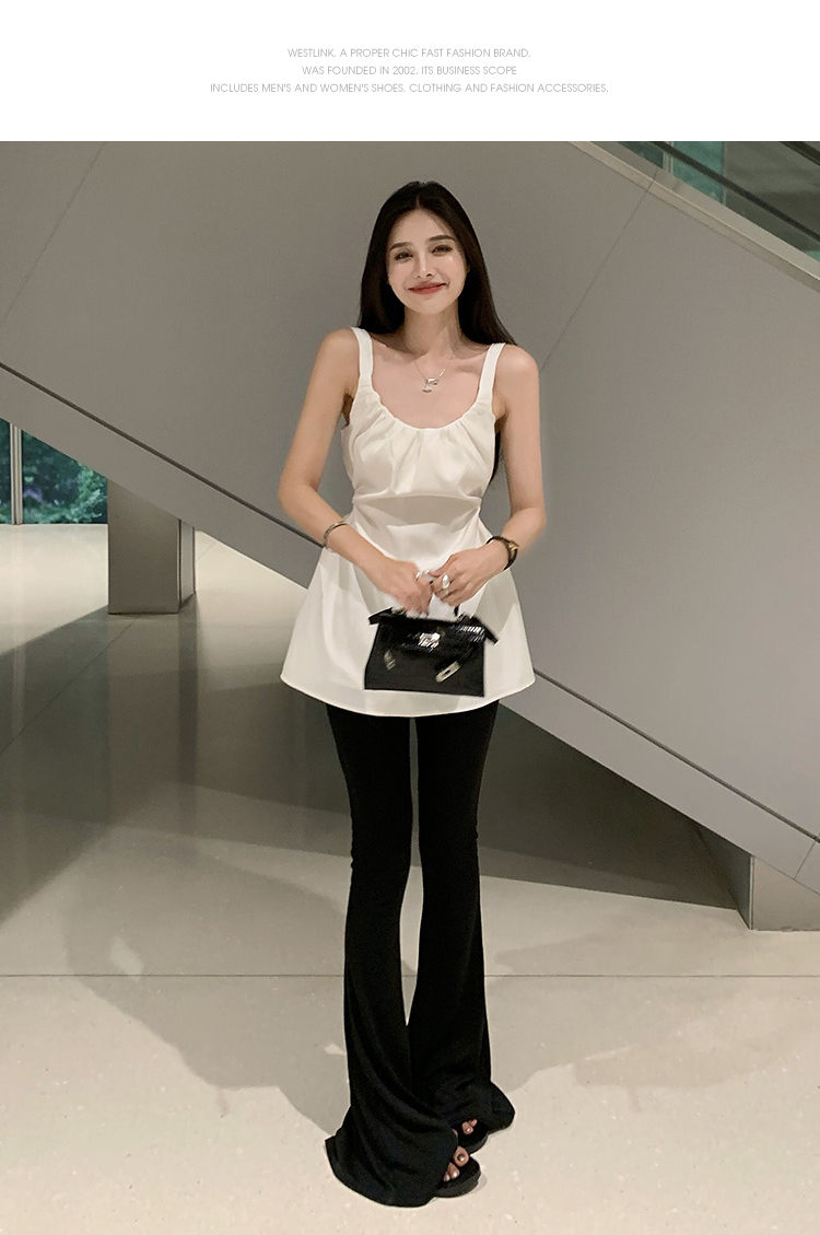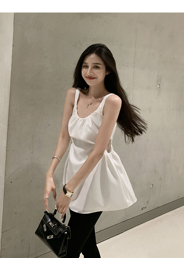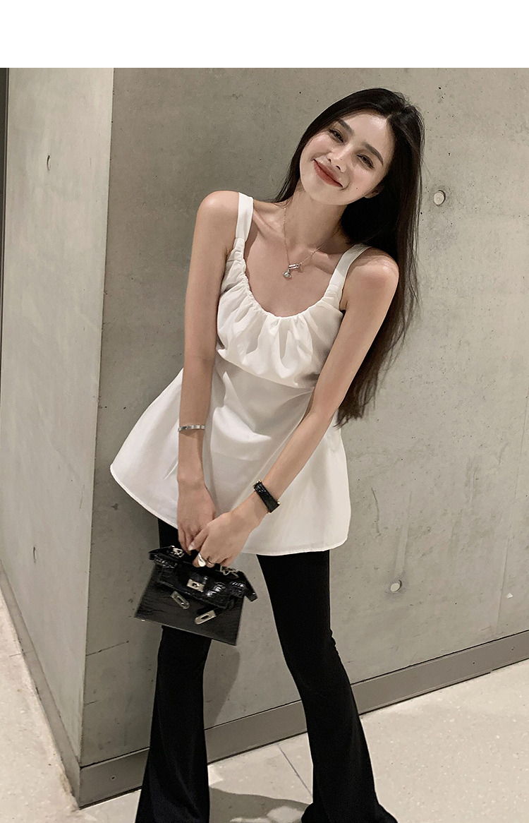西遇方领衬衣女春夏新款白色纯欲露肩镂空收腰设计无袖上衣SS150311