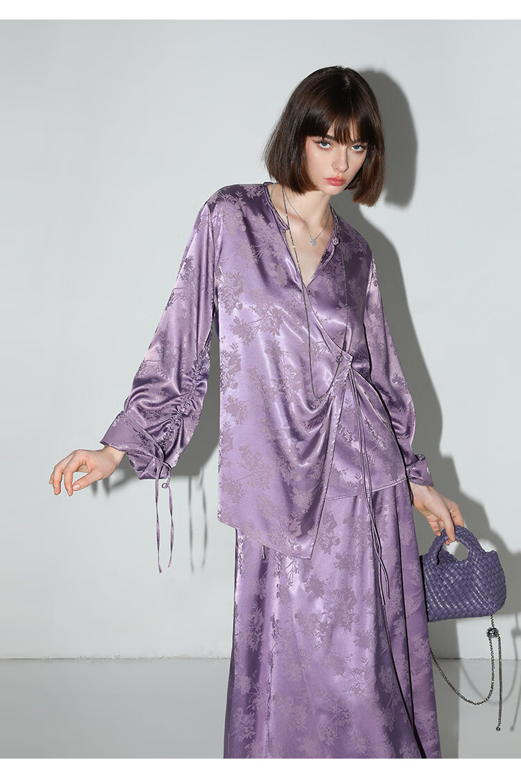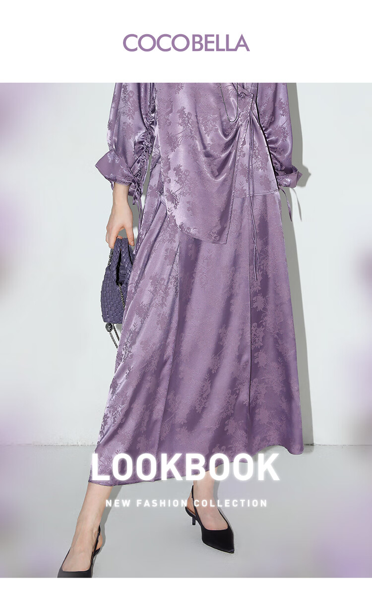 COCOBELLA暗纹提花丝滑缎面改良马面裙新国风半身裙HS3069