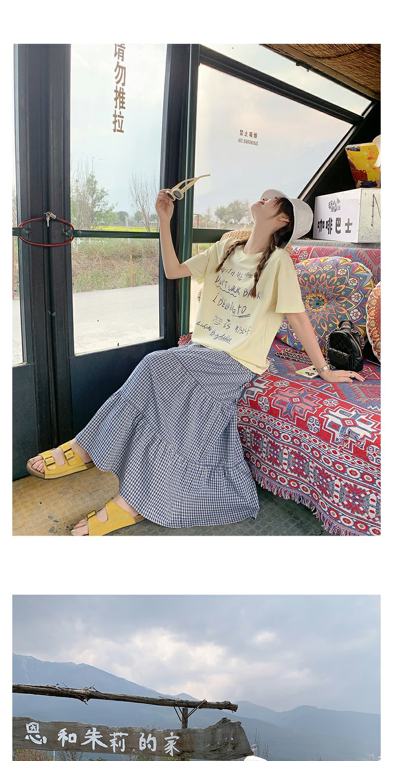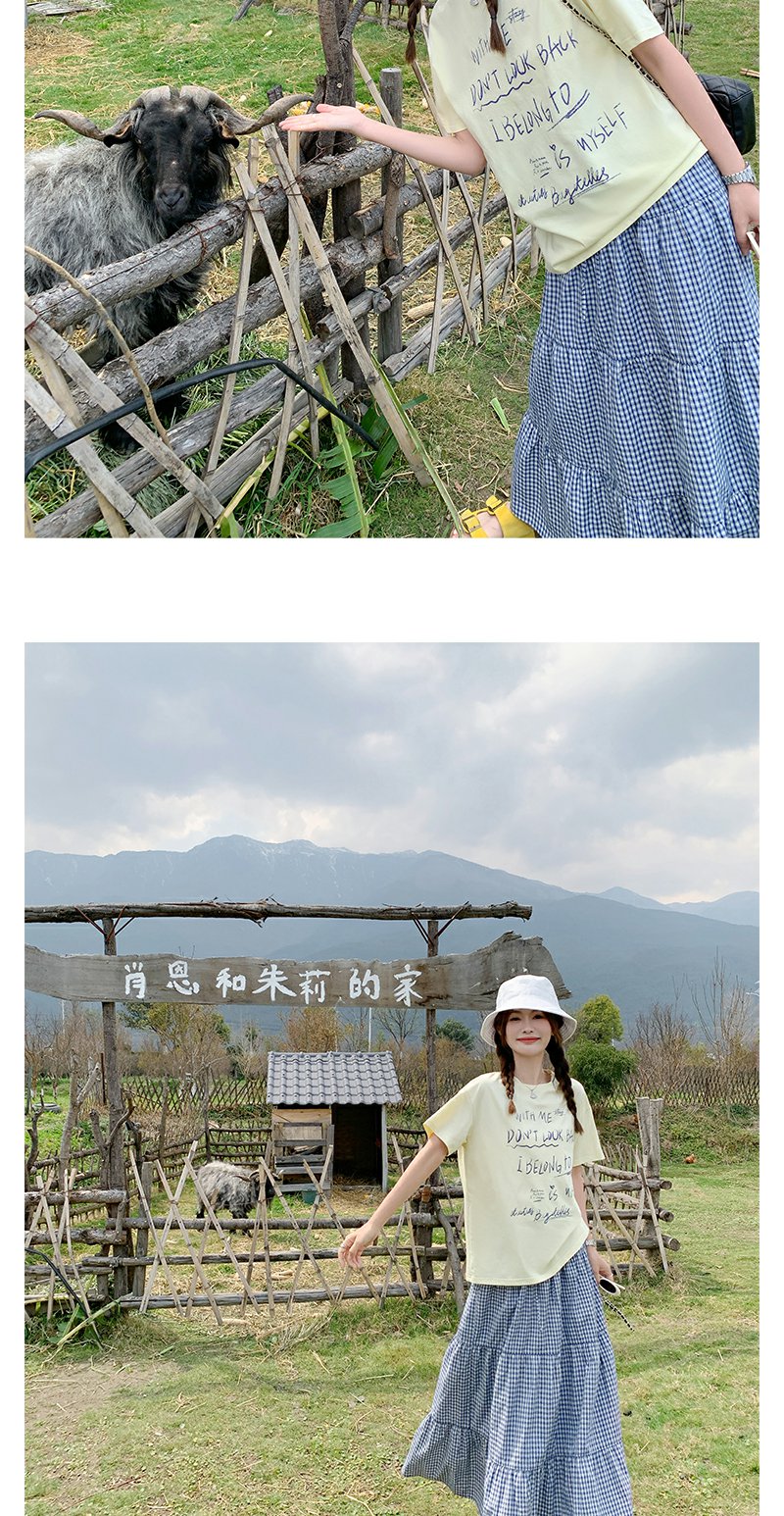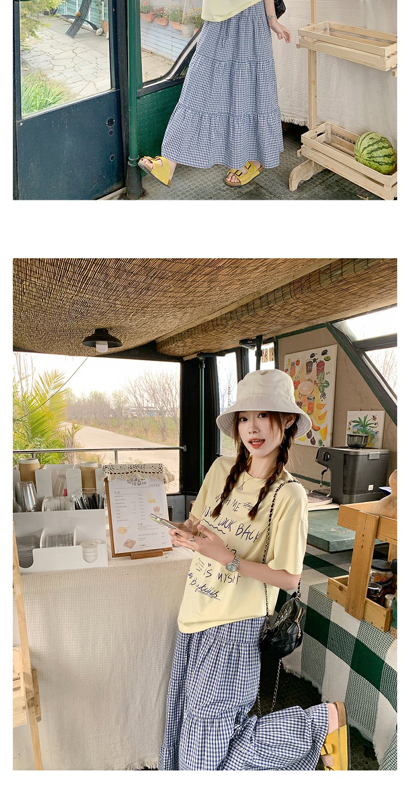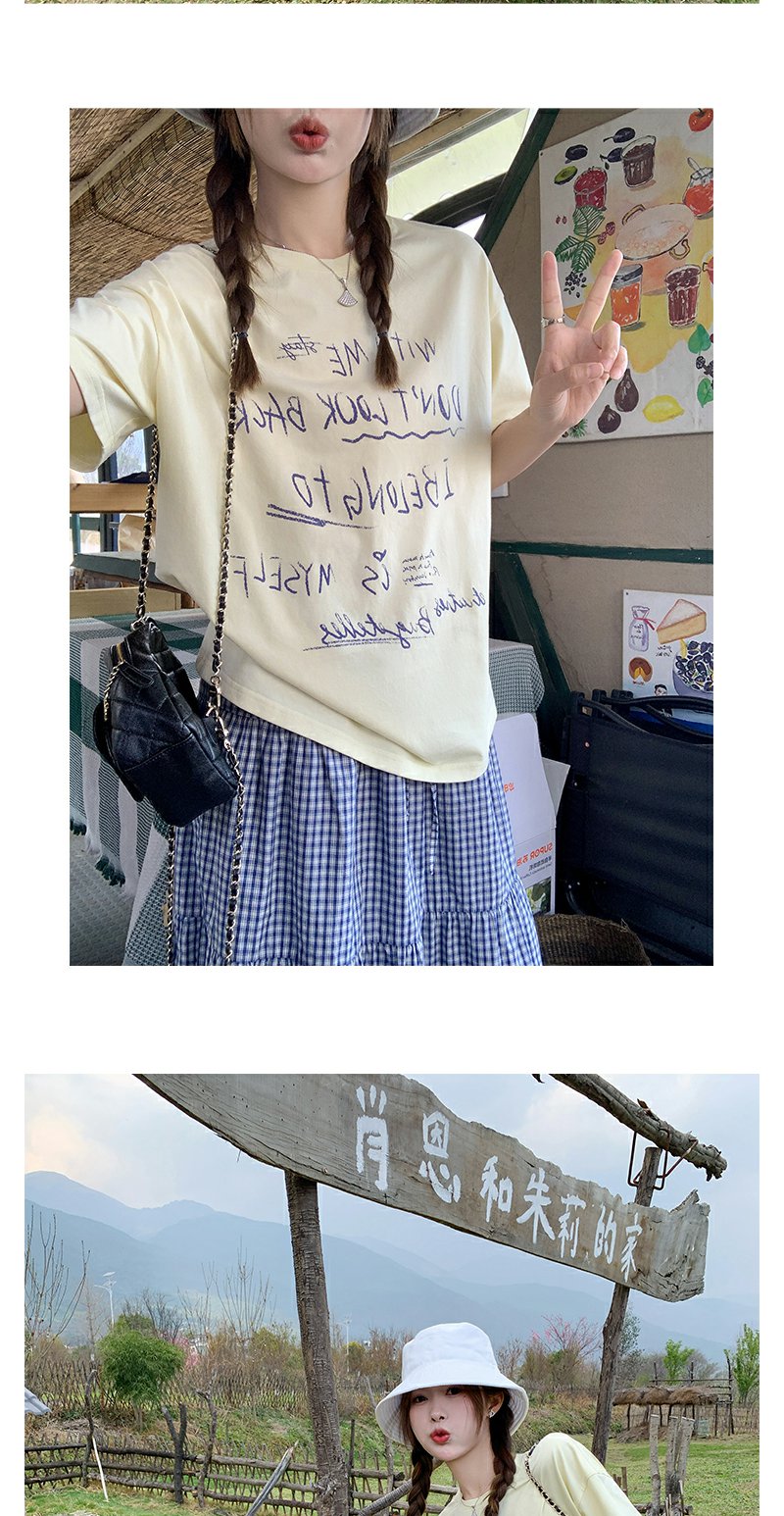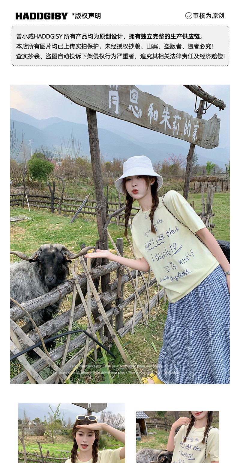 <曾小咸推荐>甜美清新黄色字母印花宽松短袖T恤