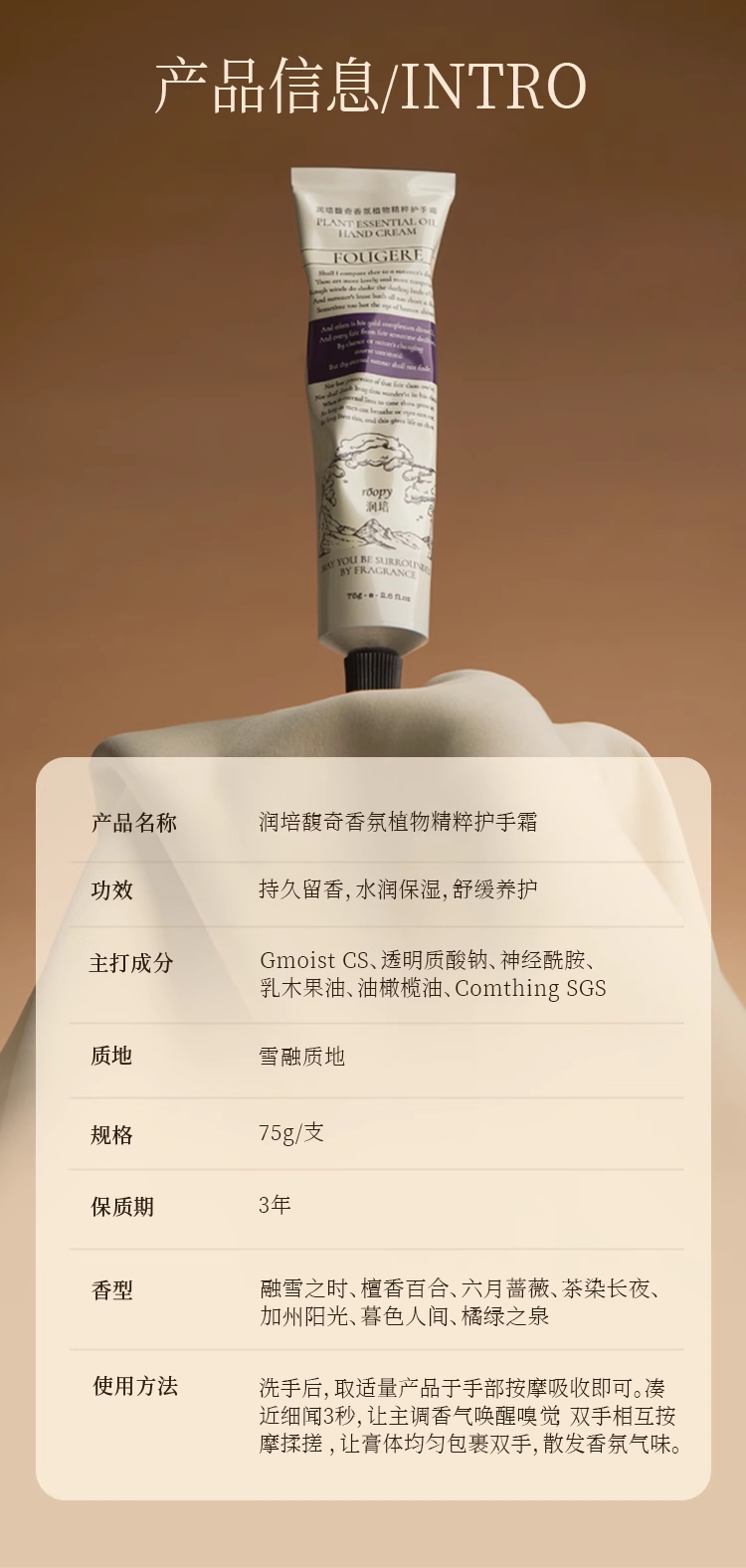【59元任选3支💥】润培经典诗境护手霜75g/支 滋润保湿补水 大支护手霜💐多款香味可备注