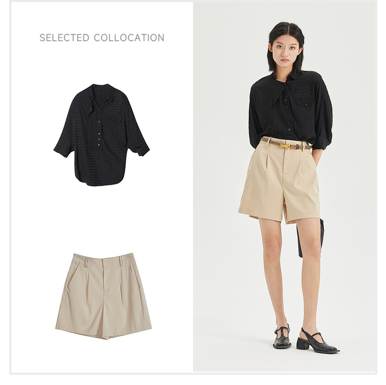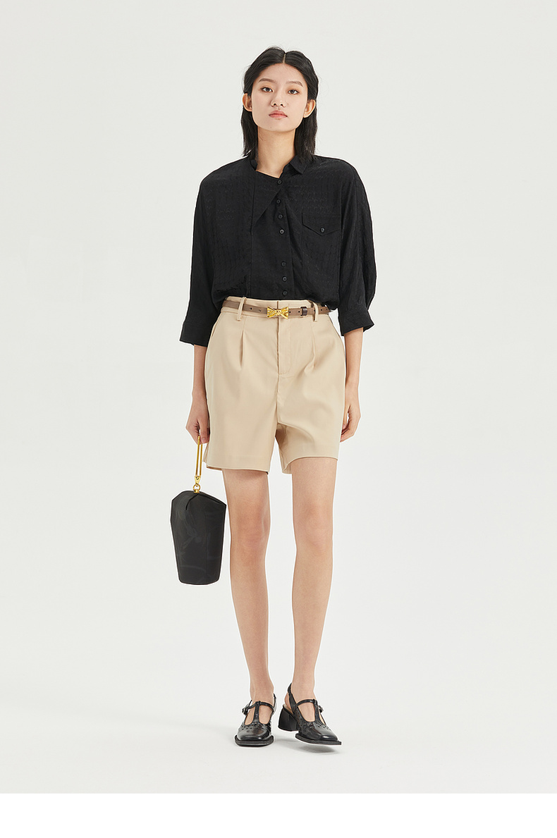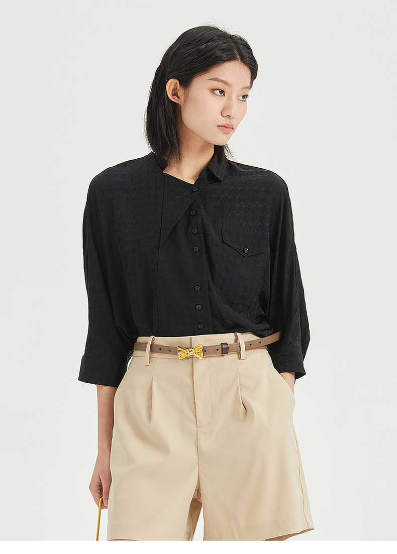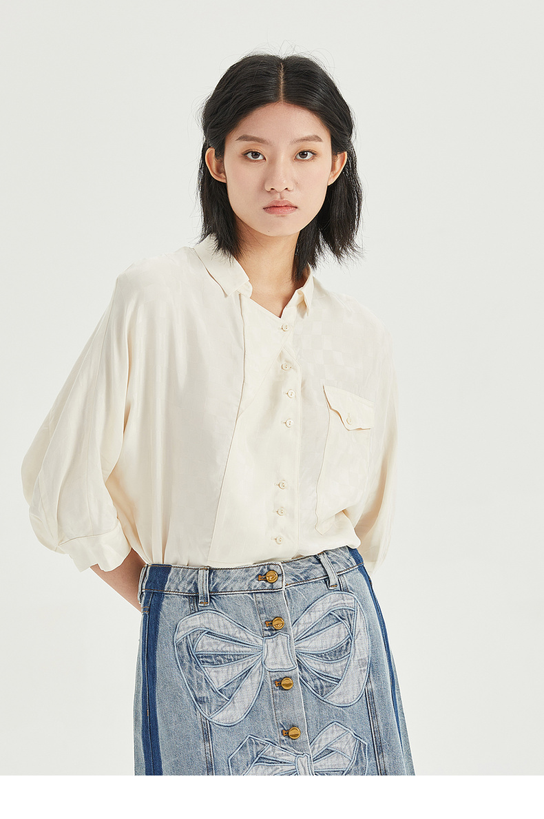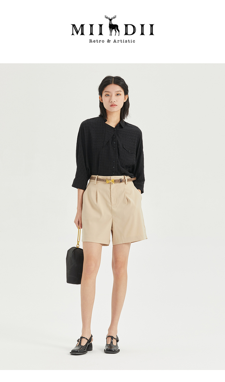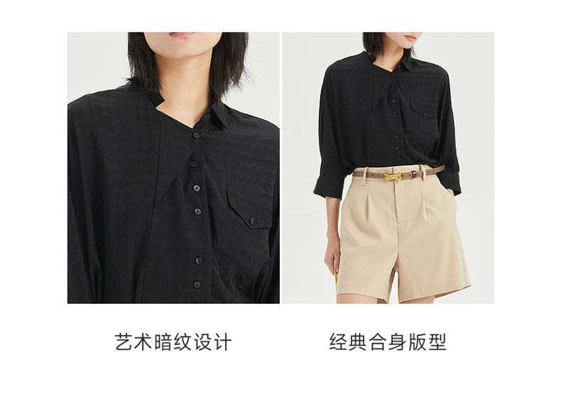 谜底2023夏新款翻领通勤风衬衫前短后长宽松设计感衬衣236MC7082