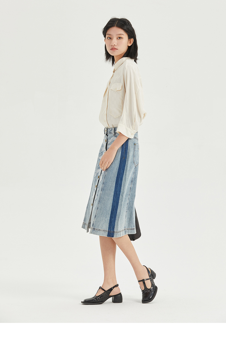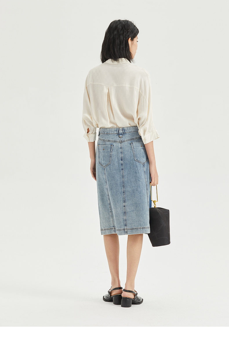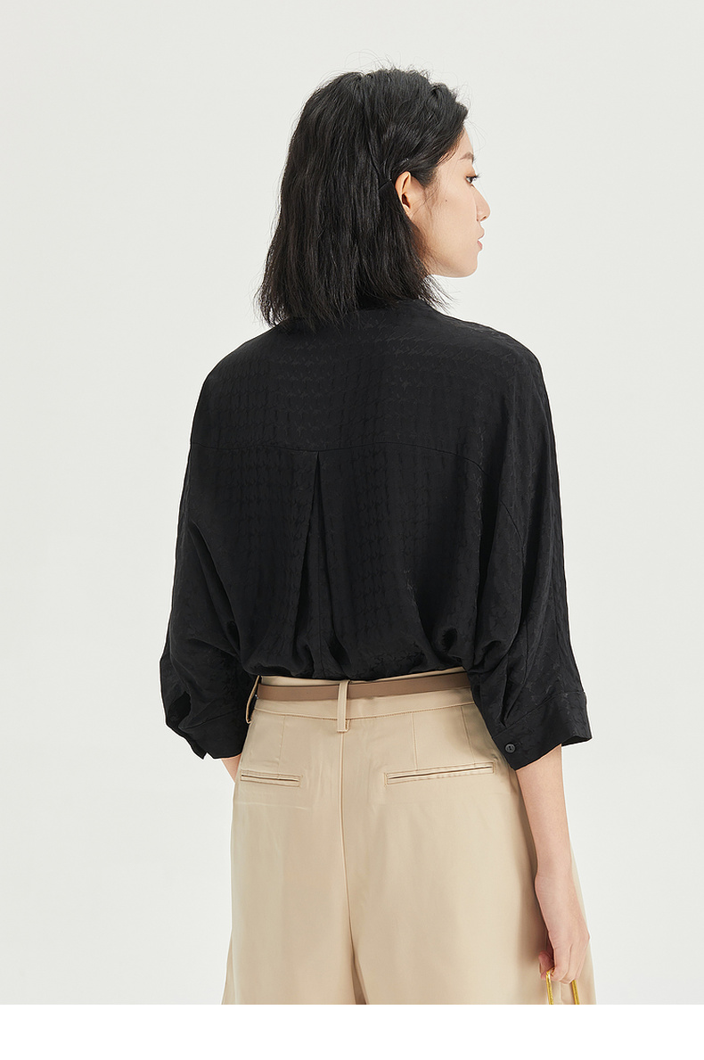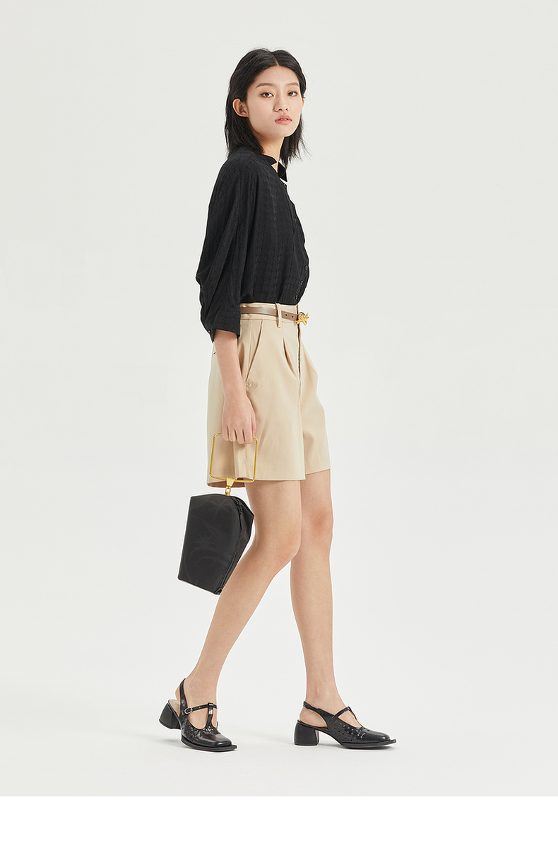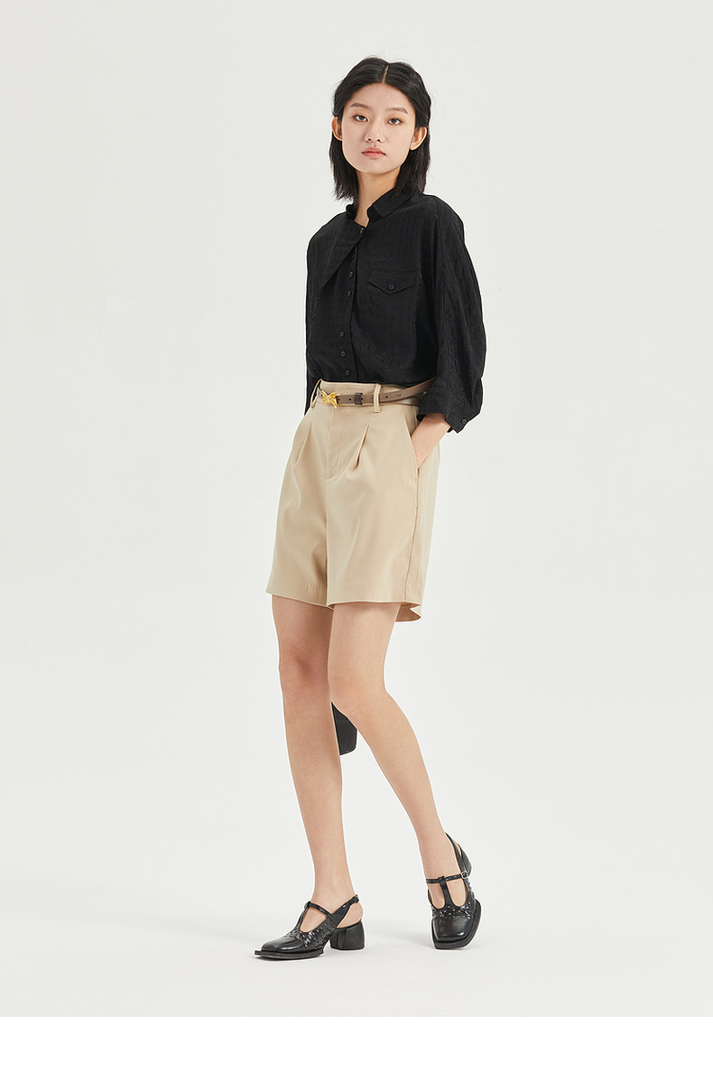 谜底2023夏新款翻领通勤风衬衫前短后长宽松设计感衬衣236MC7082