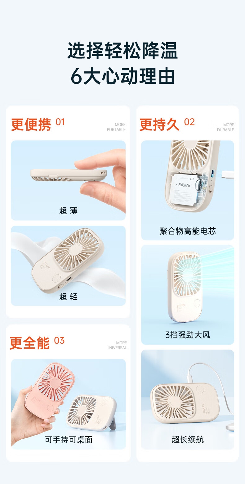 【小家电】几素超薄手持风扇 FA49(2000mAh) HF