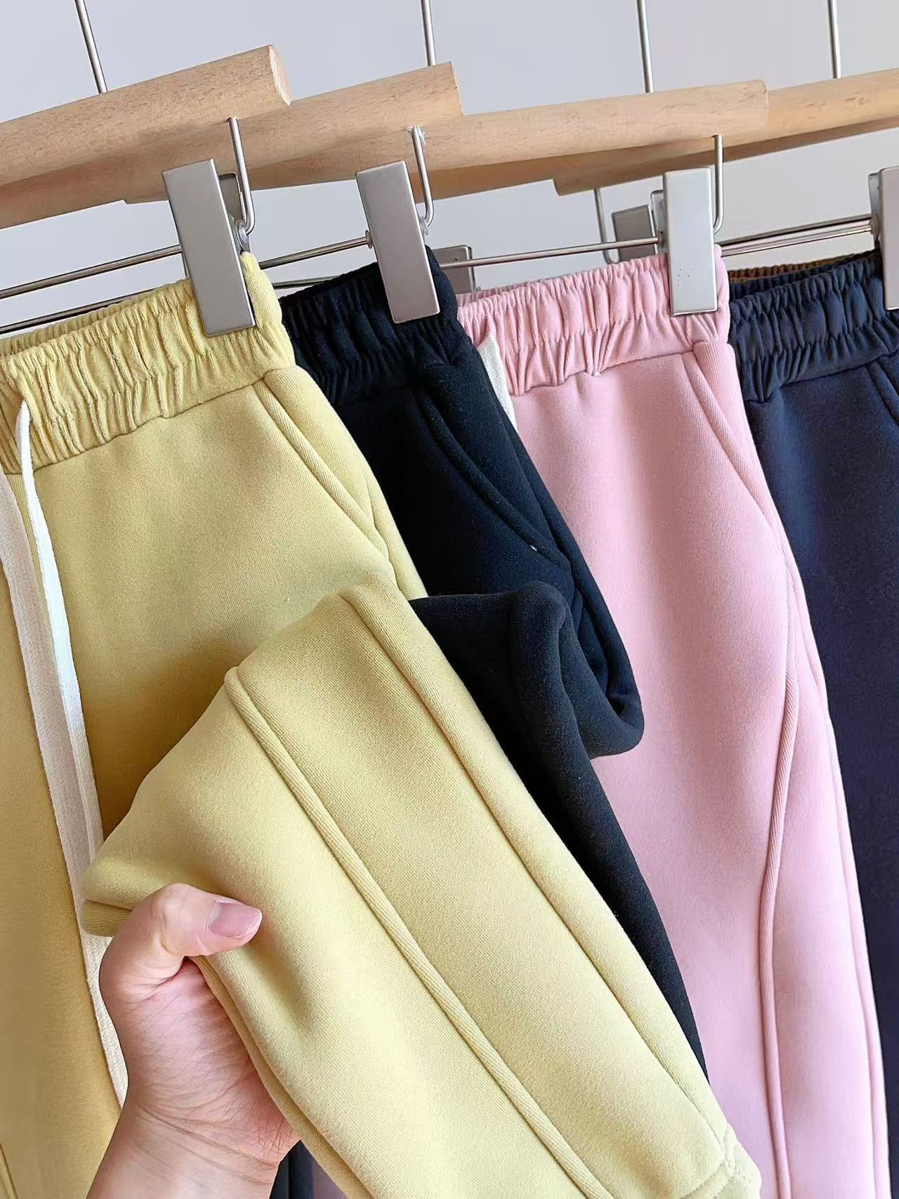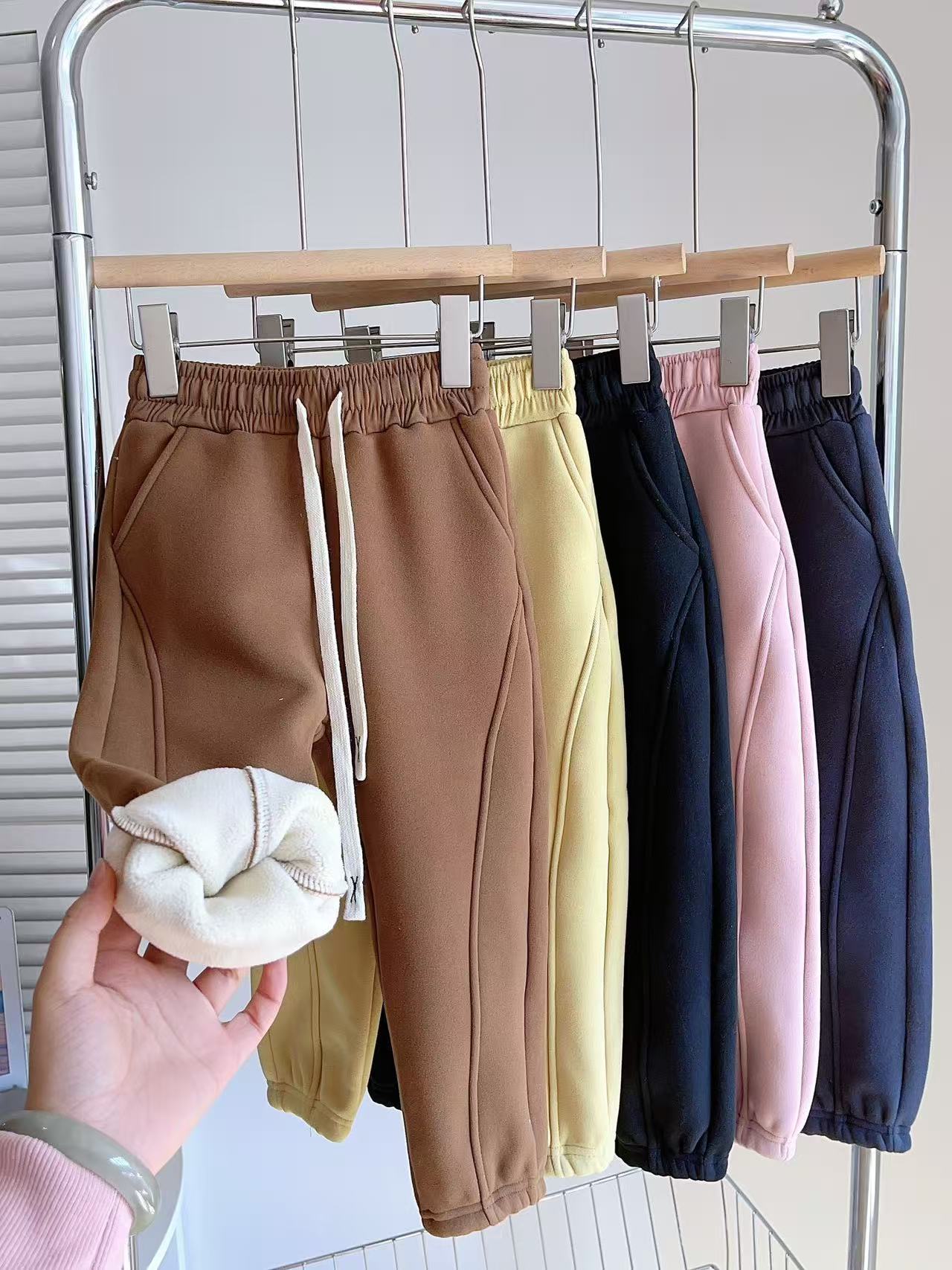 【保暖服饰丨儿童加绒防风裤】整体面料舒适保暖,内里加绒加厚,松紧裤腰,束口裤脚,上身挺括有型,适合多场景穿搭,男女童都有,多色可选~