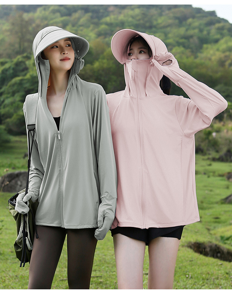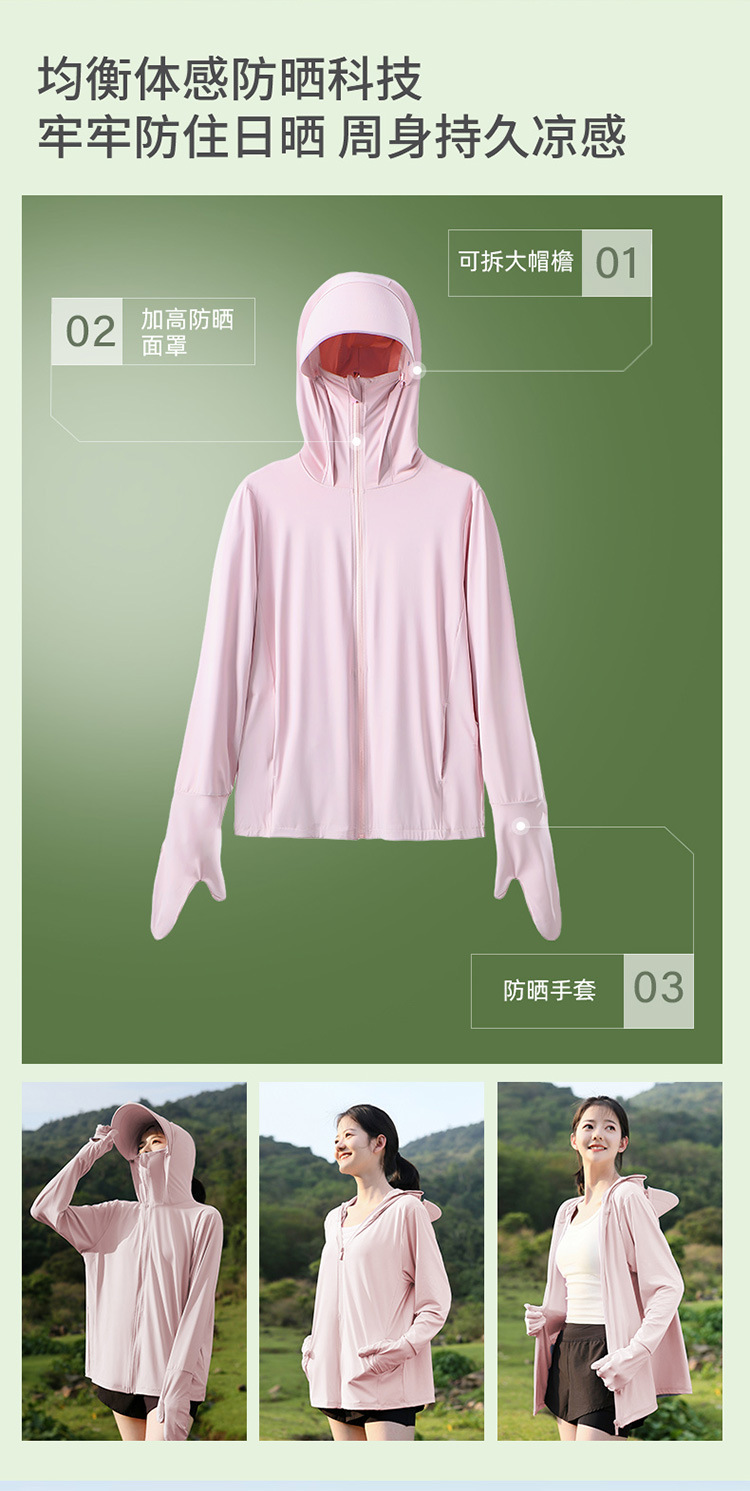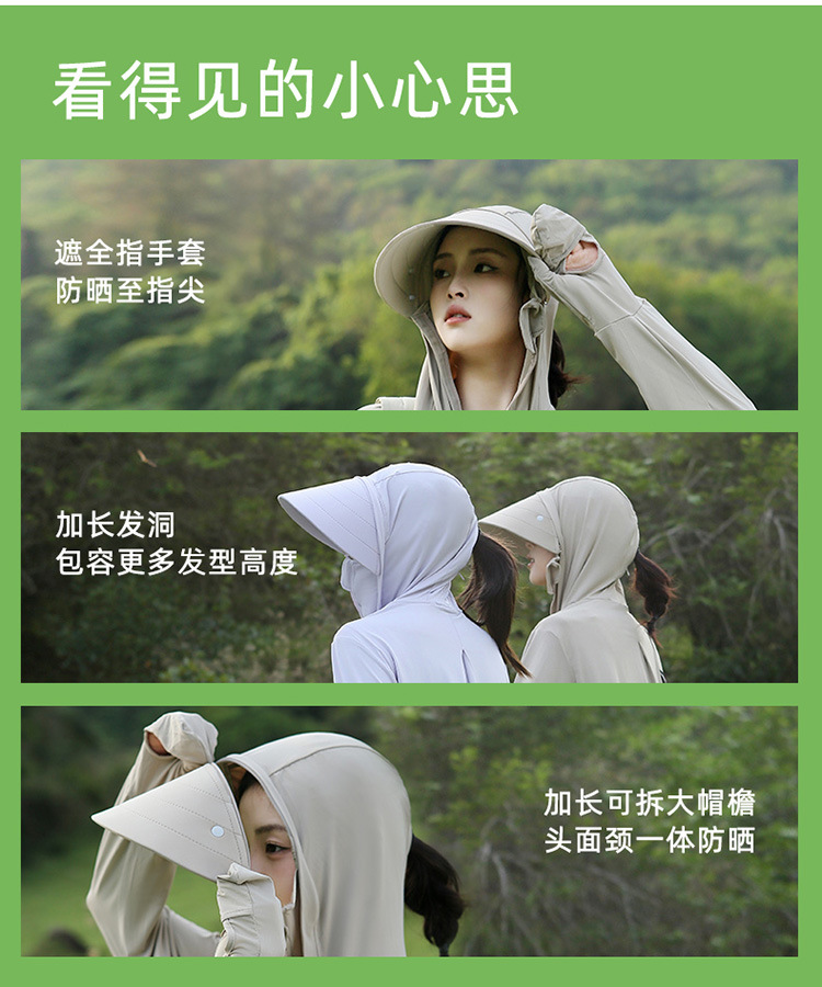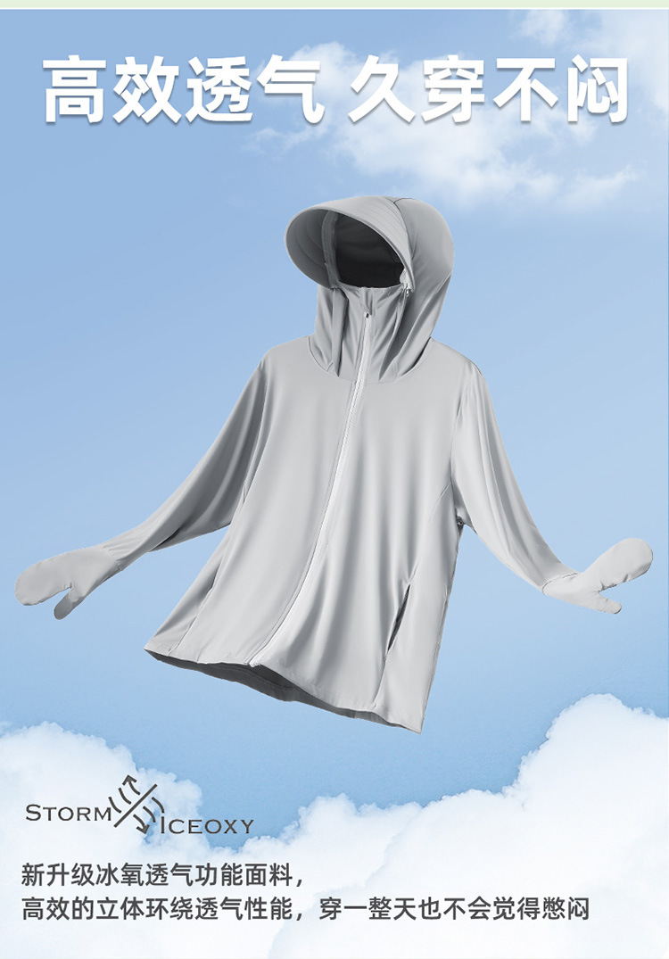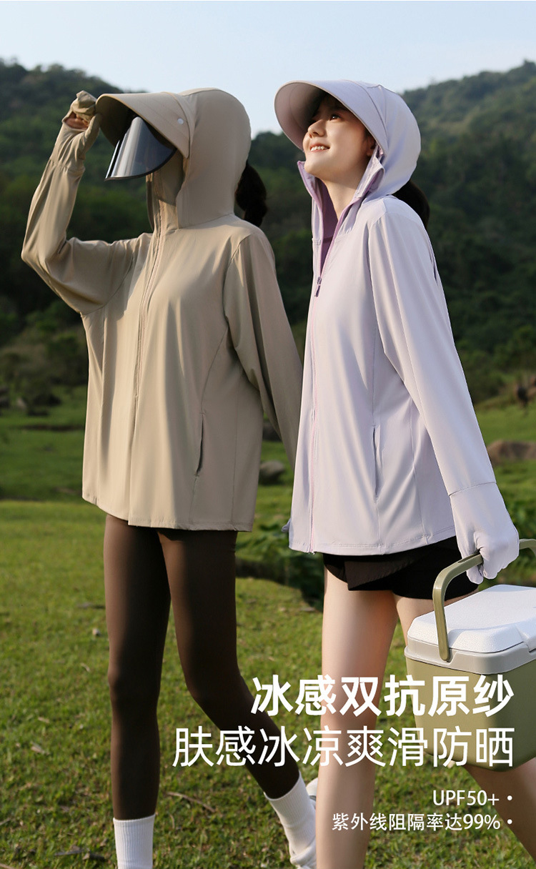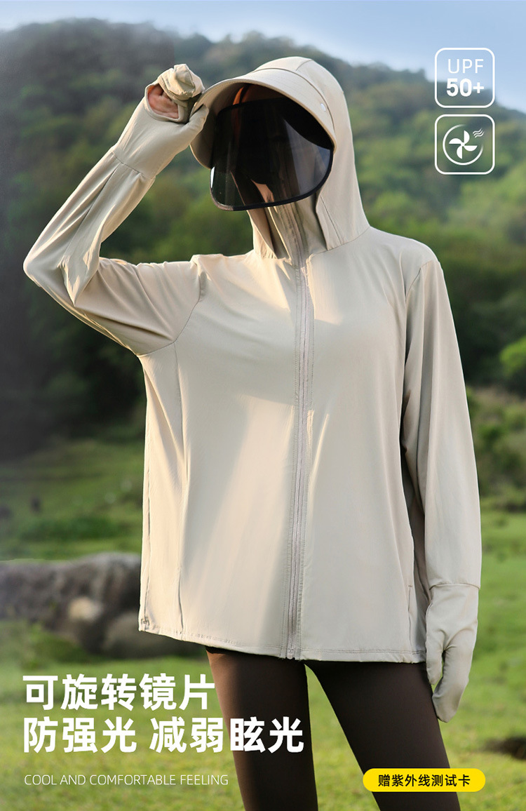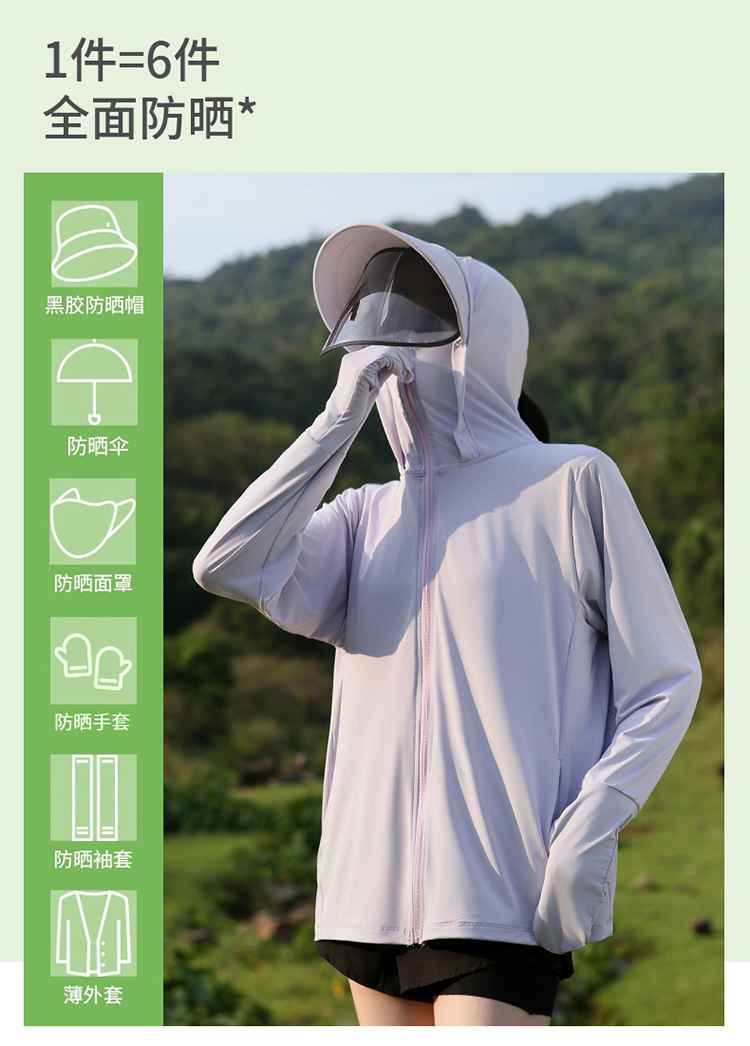 2024新款防晒衣女夏季防紫外线UPF50+冰丝可拆镜片护手款薄防晒服