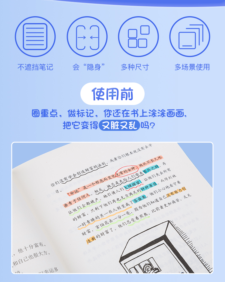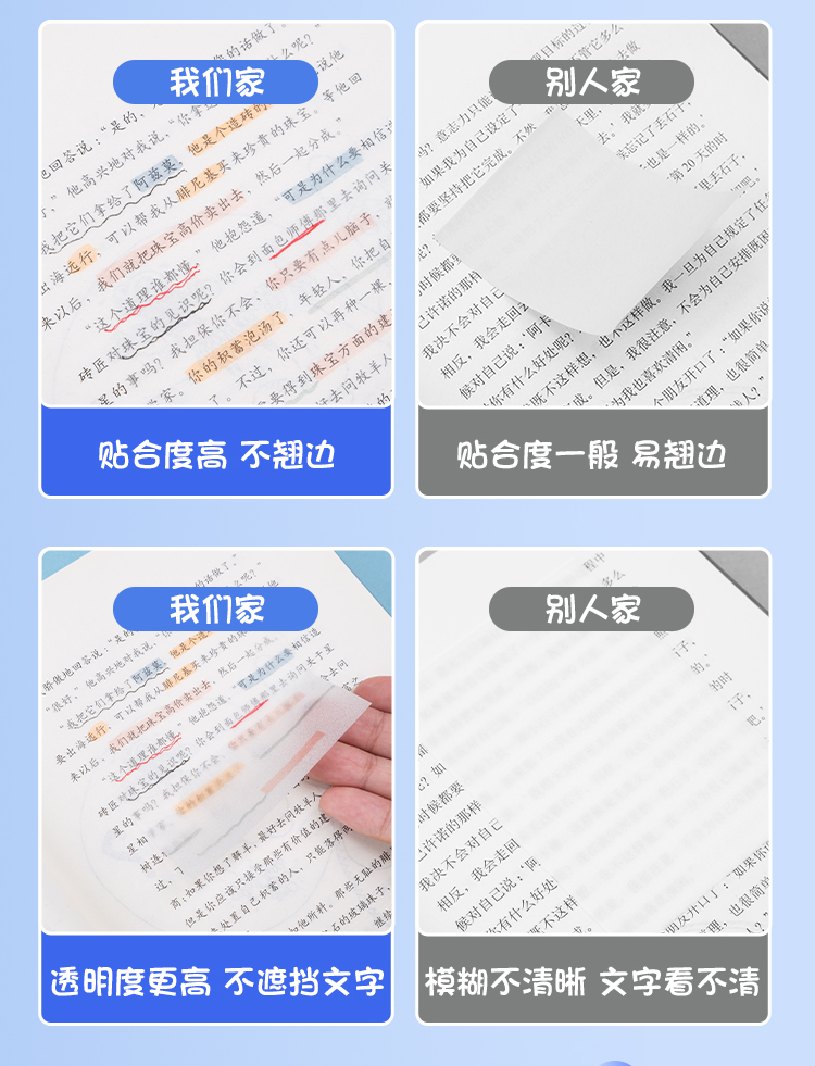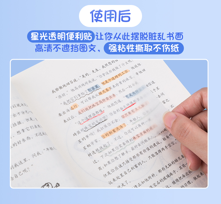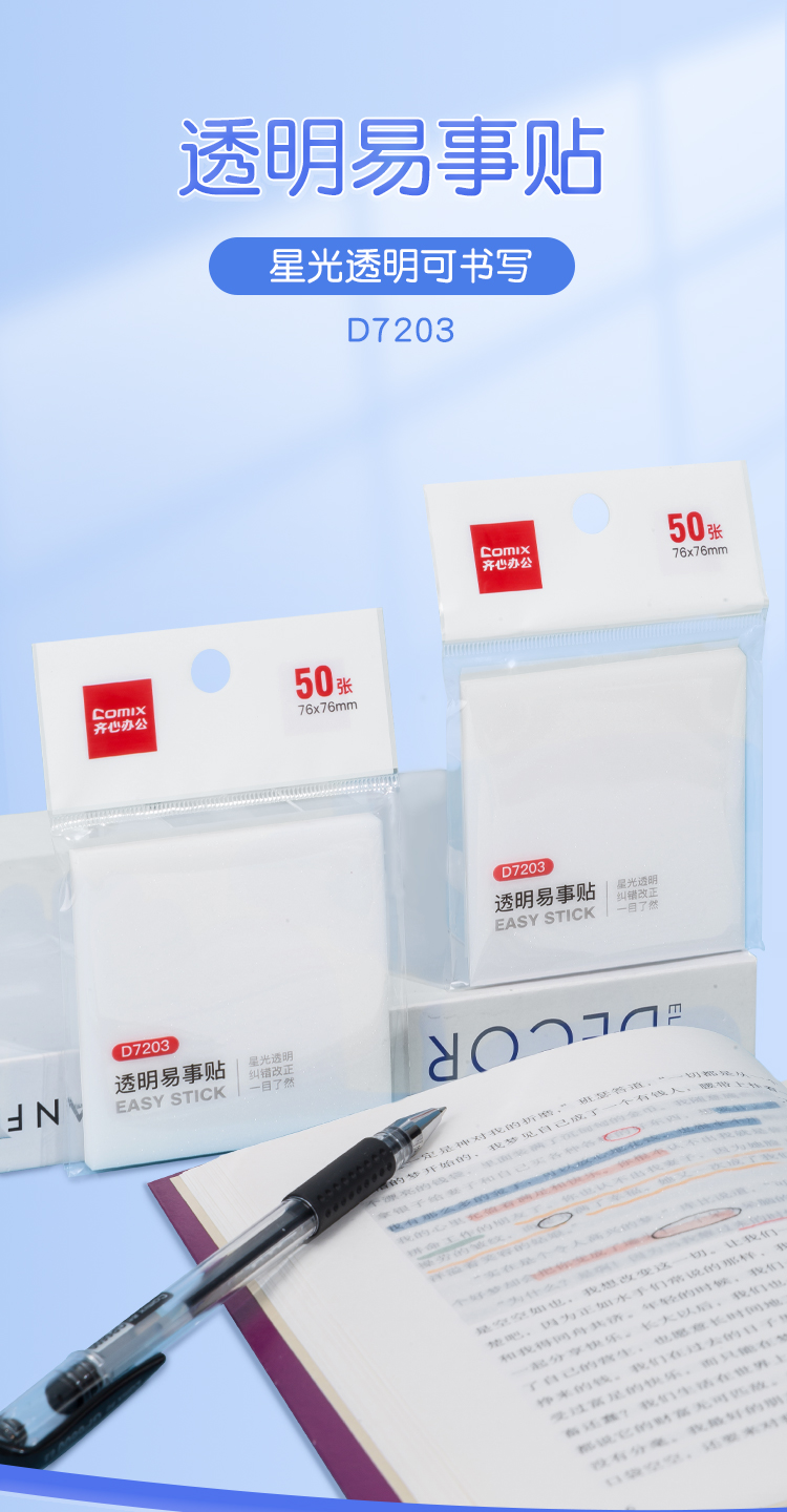 齐心透明便利贴 正方形易事贴纠正改错记事告示贴N次贴便签纸3×3 50张/本