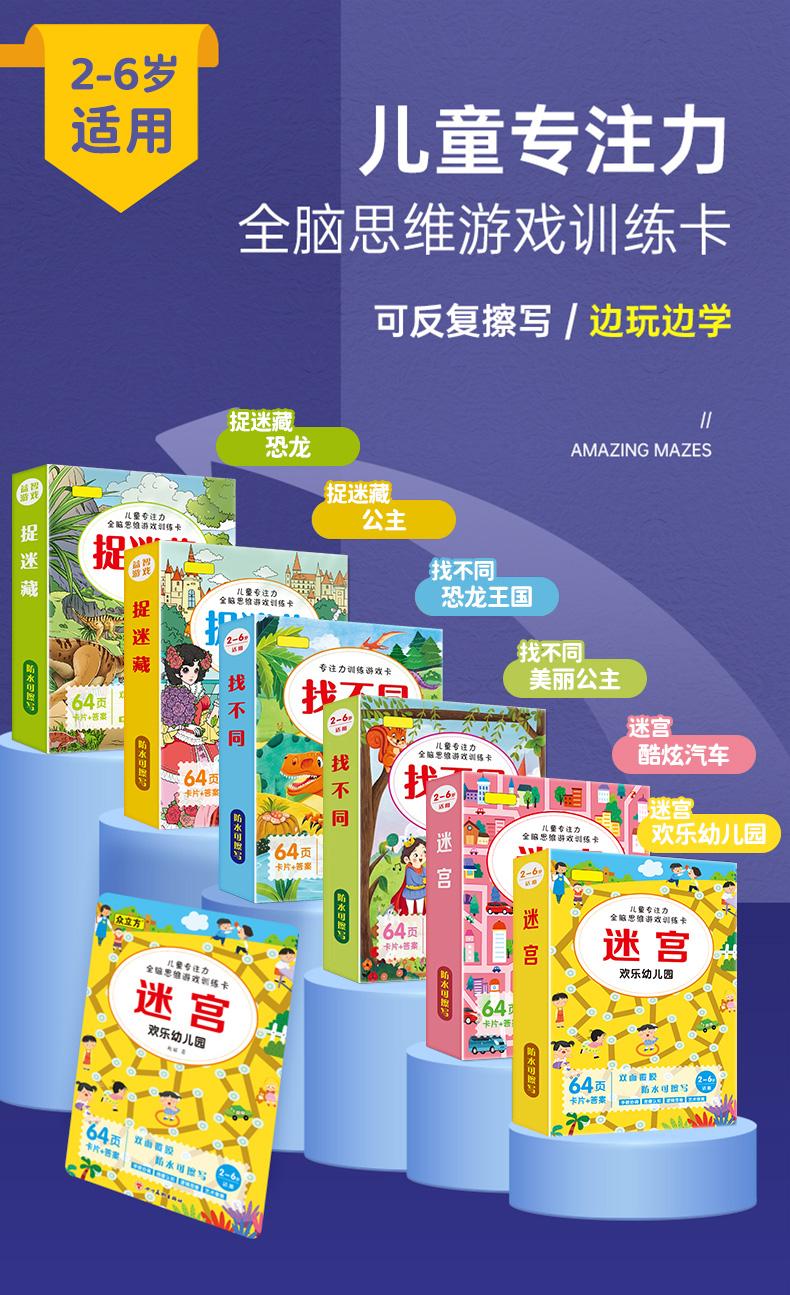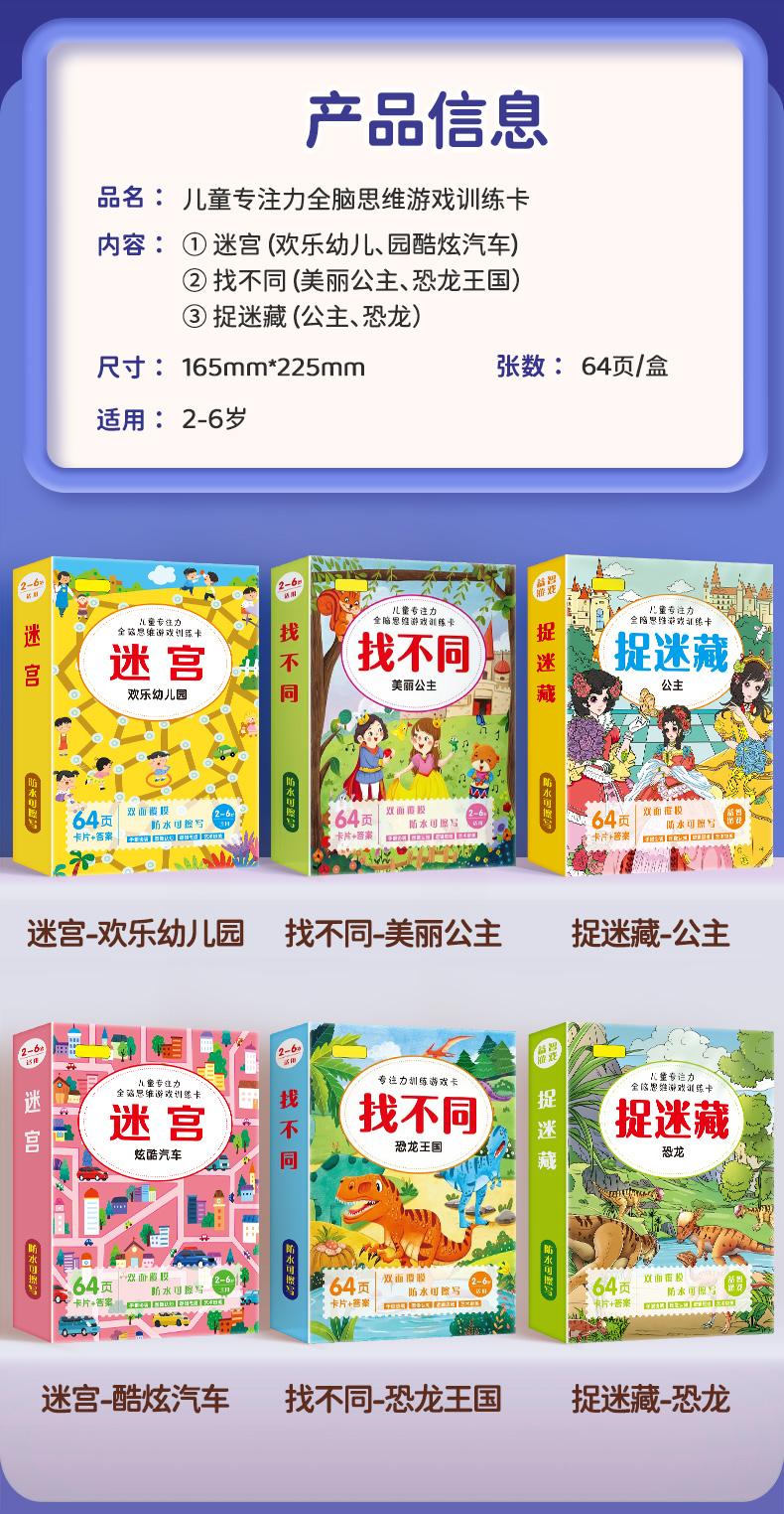 儿童幼儿园6-12岁趣味专注力训练迷宫捉迷藏开发大脑幼小衔接思维启蒙训练卡