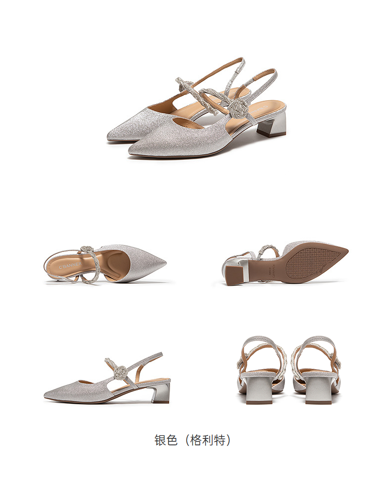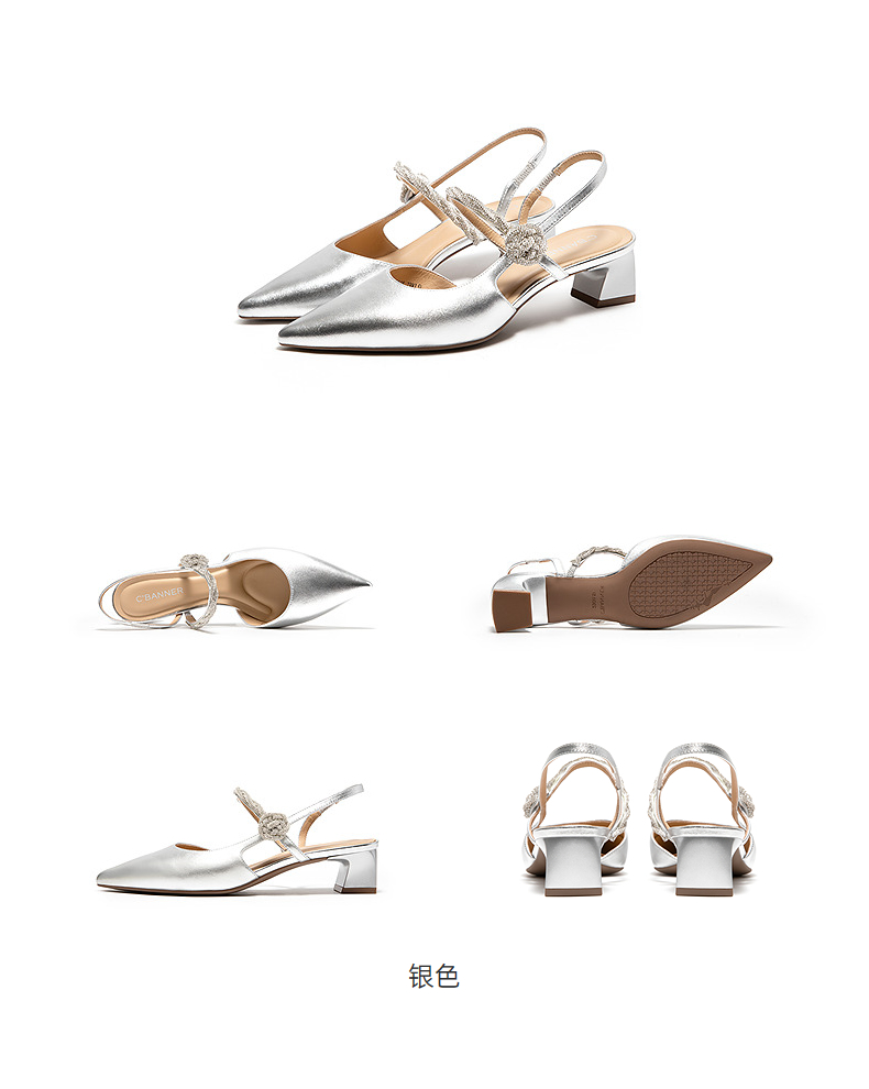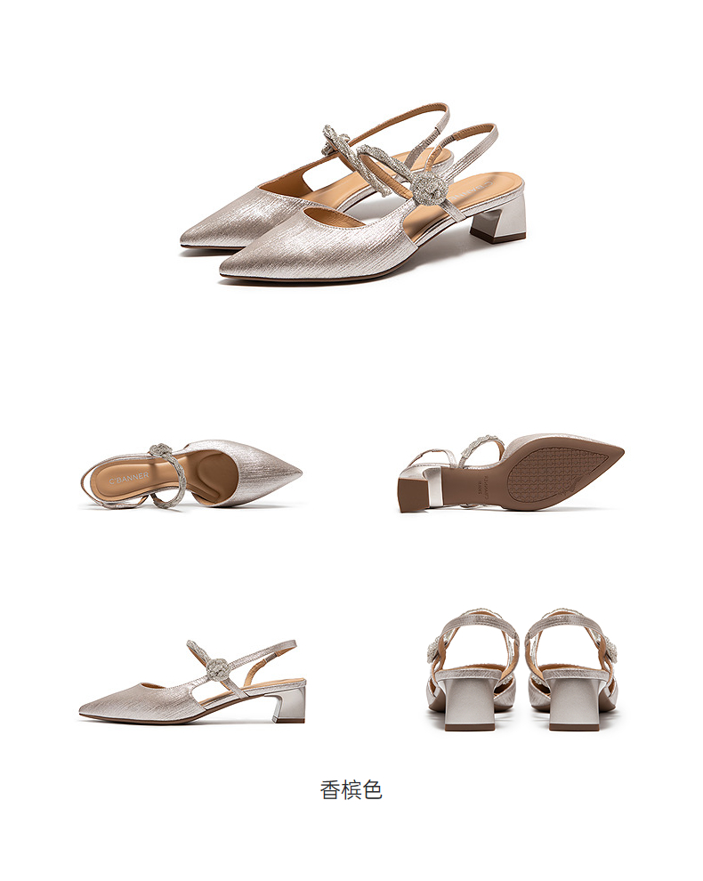 千百度小猫跟羊皮婚鞋高跟鞋女款新娘宴会法式单鞋A25176803
