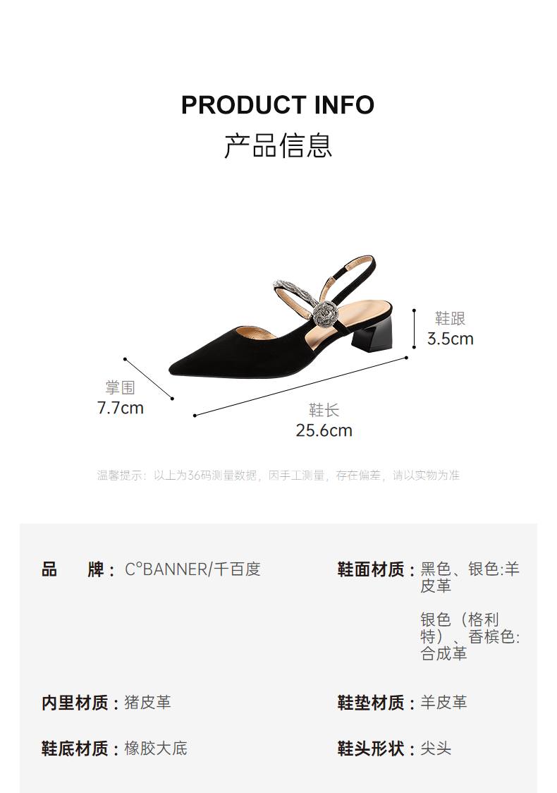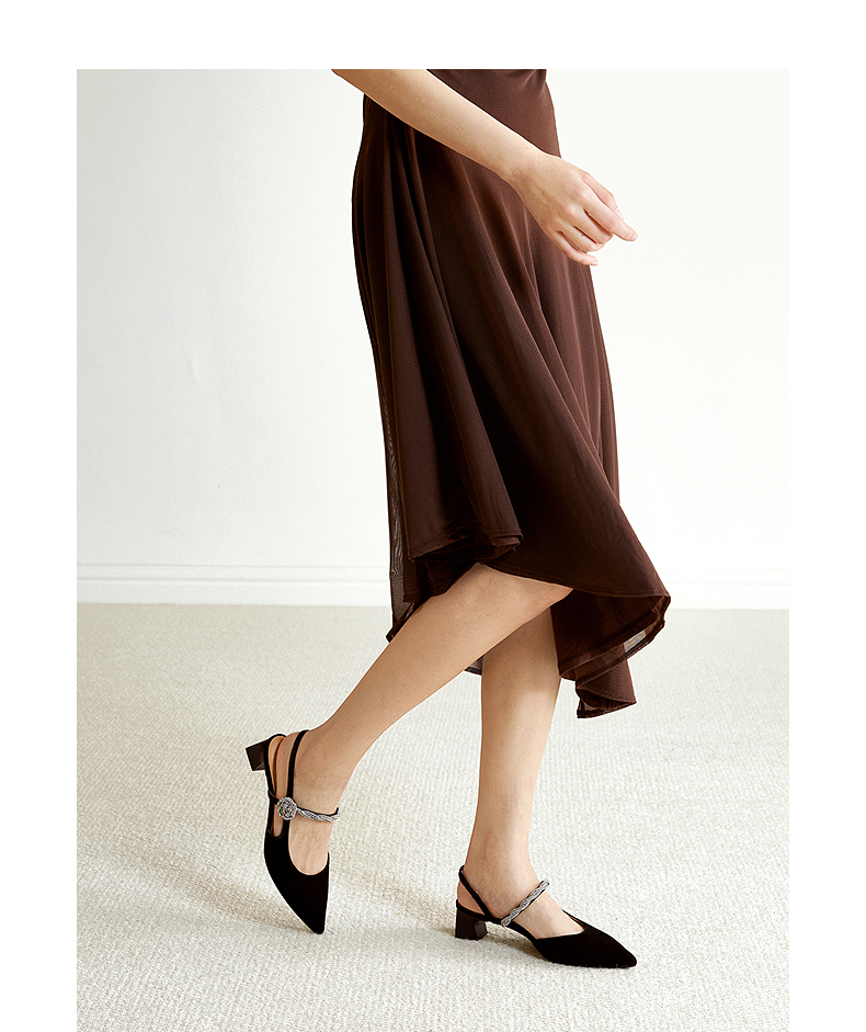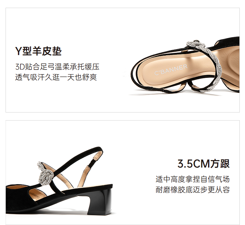 【静音系列】千百度粗中跟时装凉鞋女2026夏季新款包头后空凉鞋A26206084