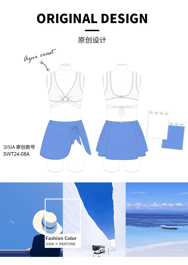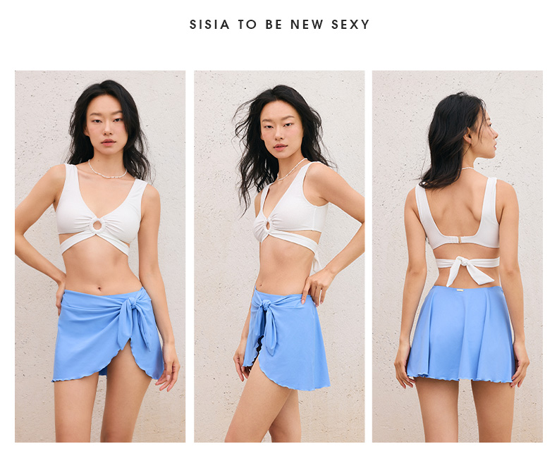 sisia2025新款泳衣女夏高级感度假性感泡温泉裙式分体泳衣比基尼SWT24-08A