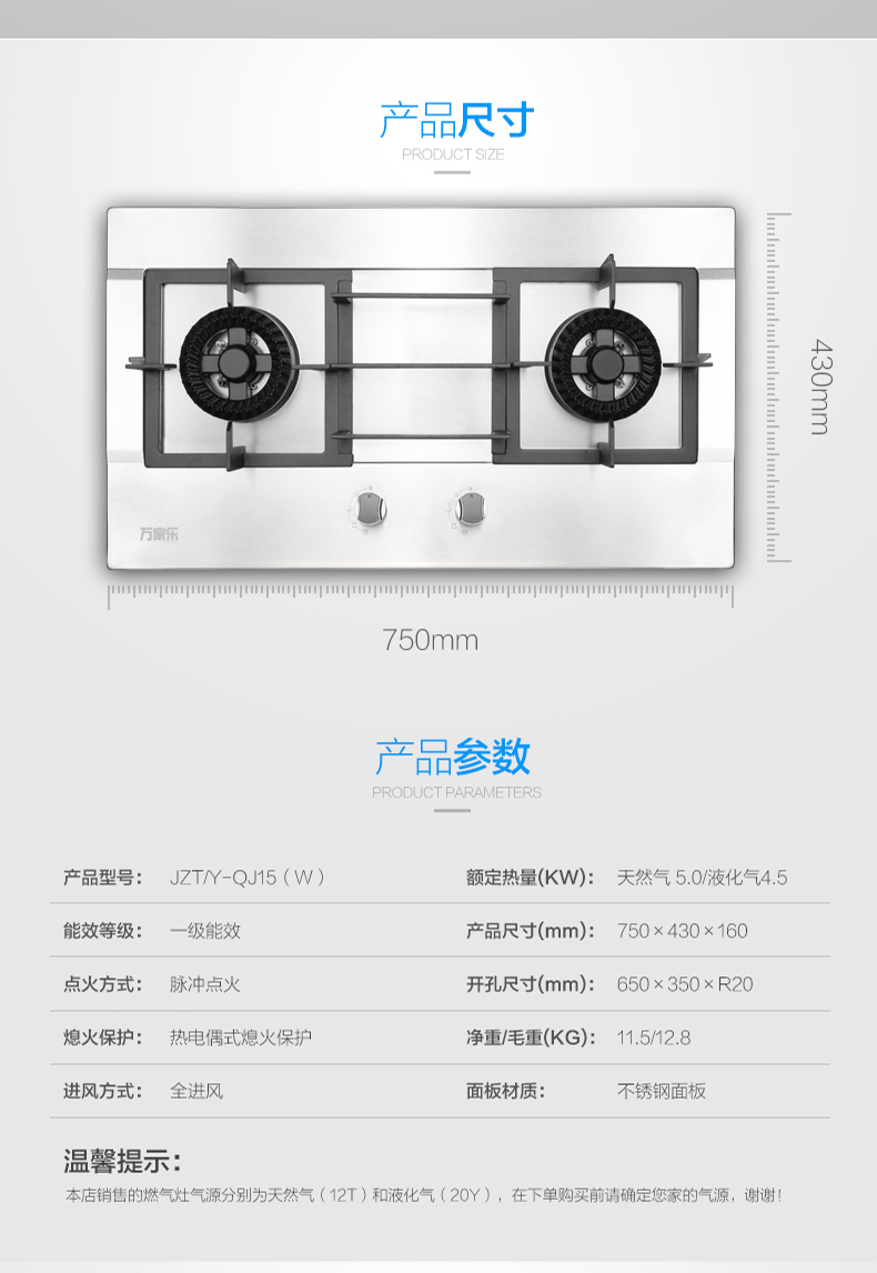 万家乐燃气灶具JZT-QJ15(W)