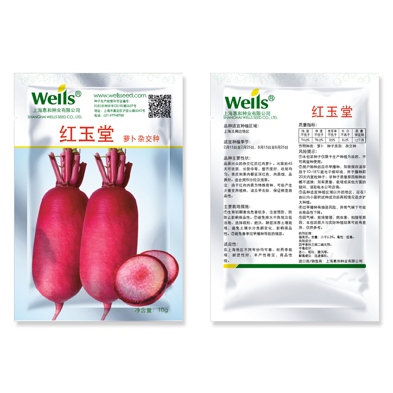 品质出众的杂交红皮红肉萝卜 出苗后45可收获,长势中等,整齐度好,收尾均匀。表皮和果肉都呈深红色,肉质细,品质好。适合用作沙拉及泡菜。