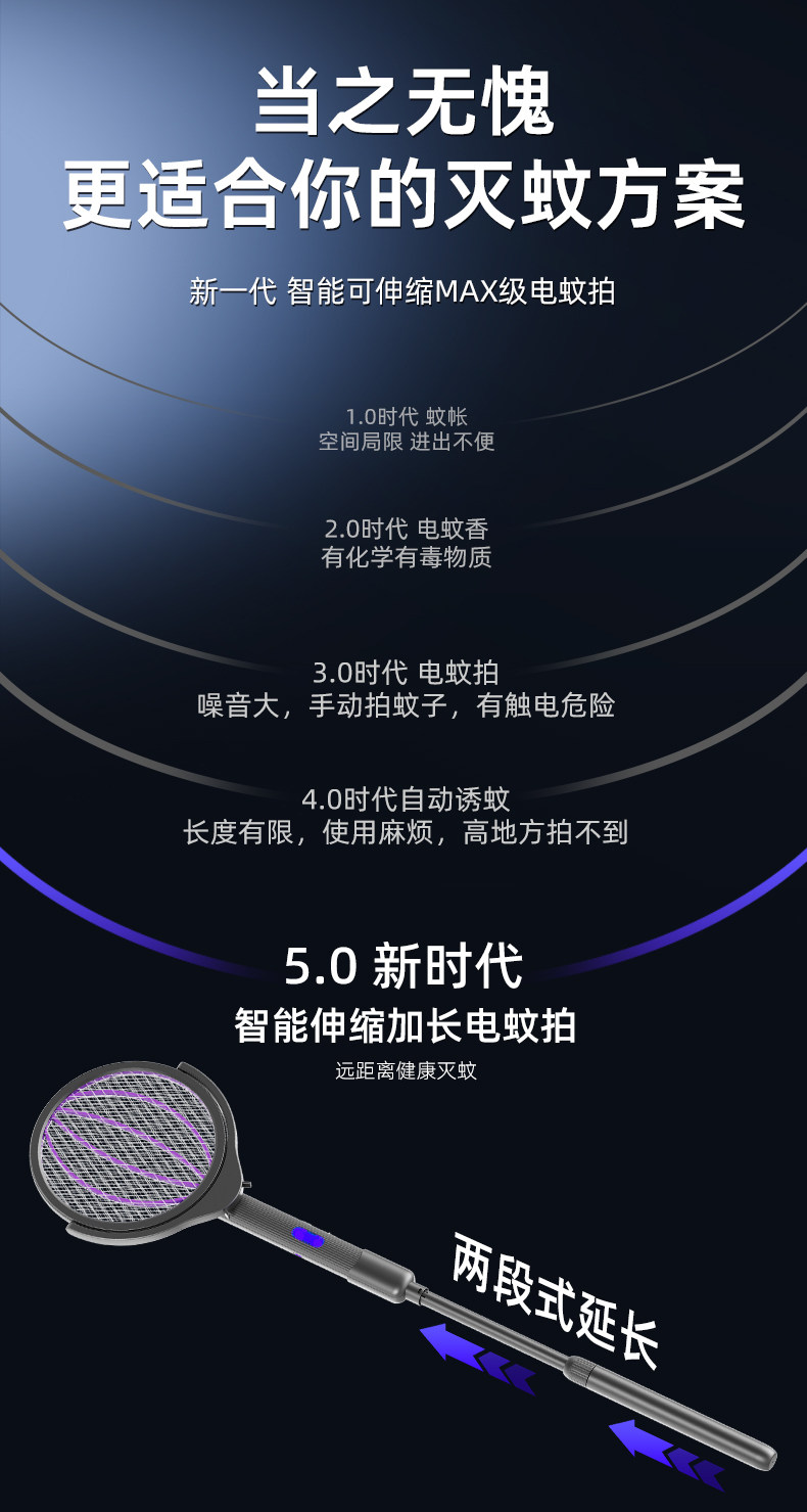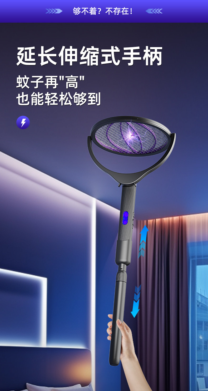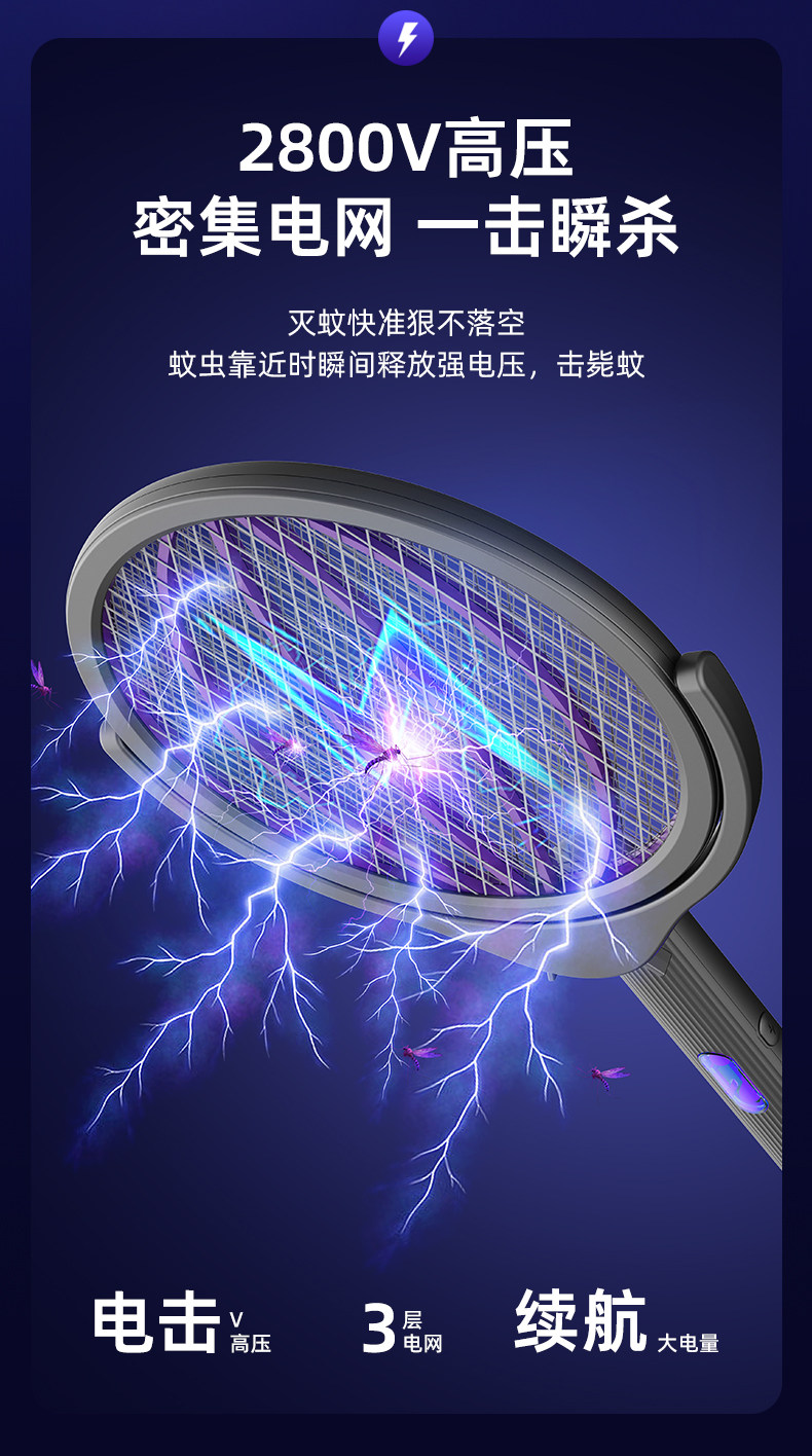 【多样屋专柜】奥力给智能伸缩电蚊拍充电式家用