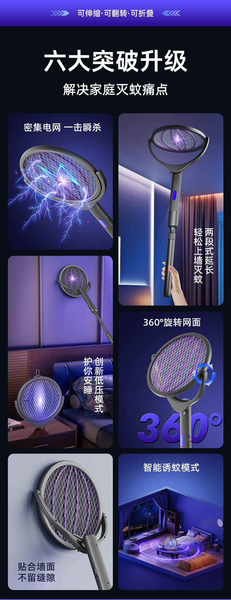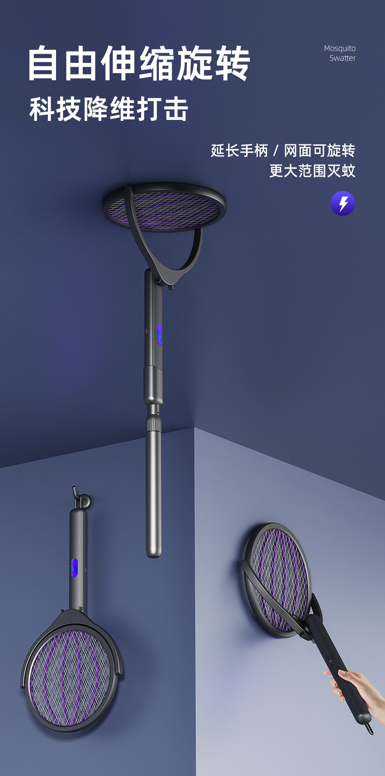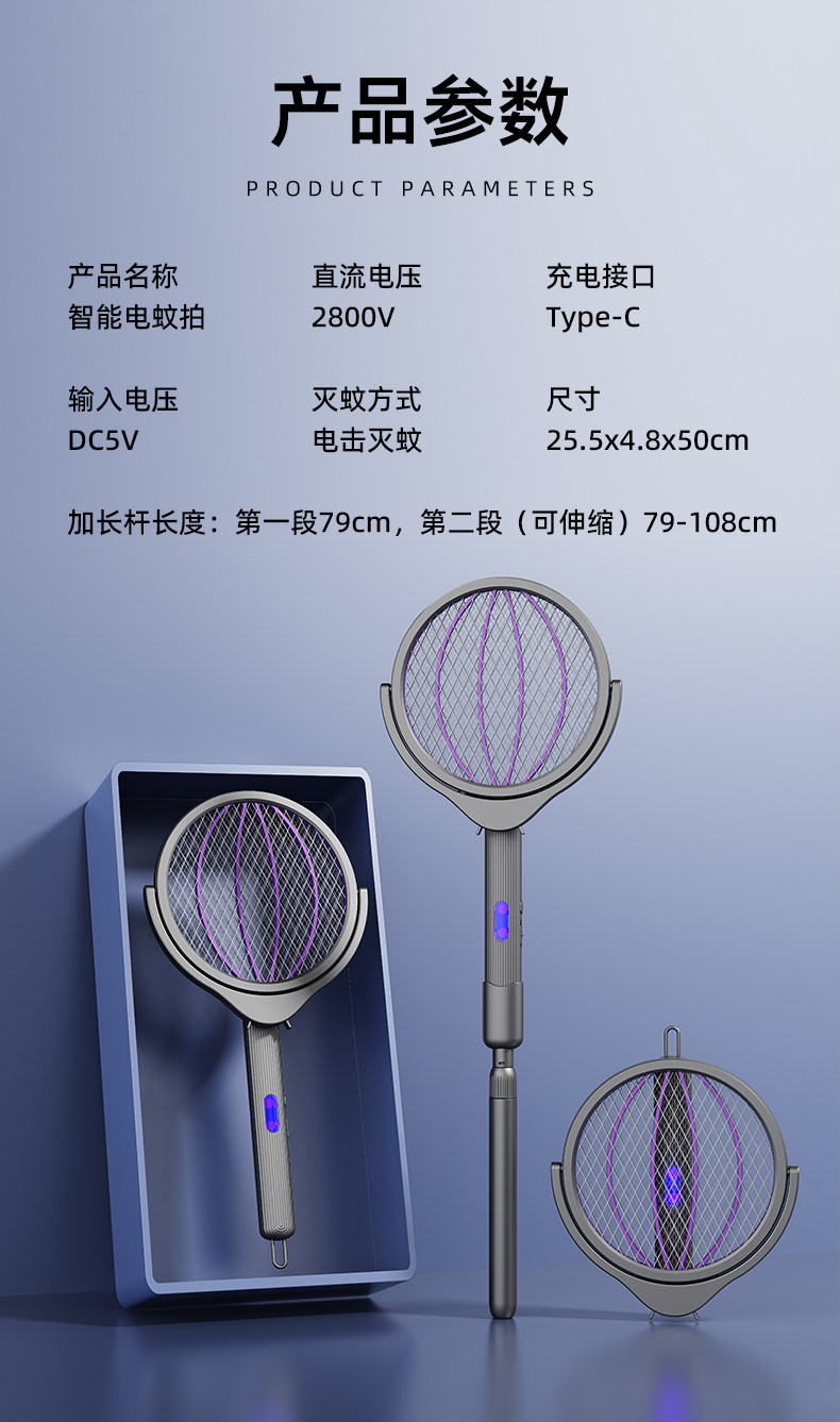 【多样屋专柜】奥力给智能伸缩电蚊拍充电式家用
