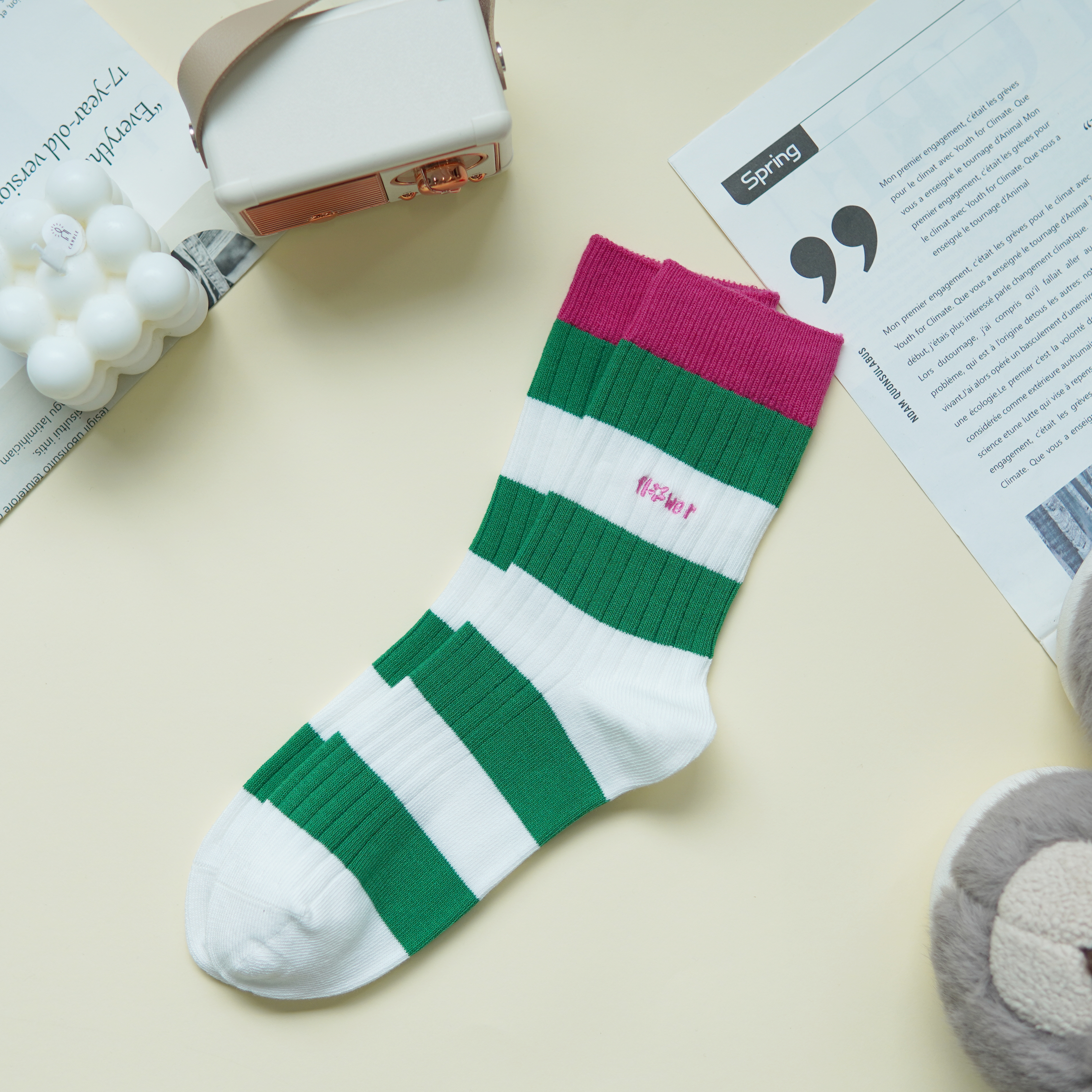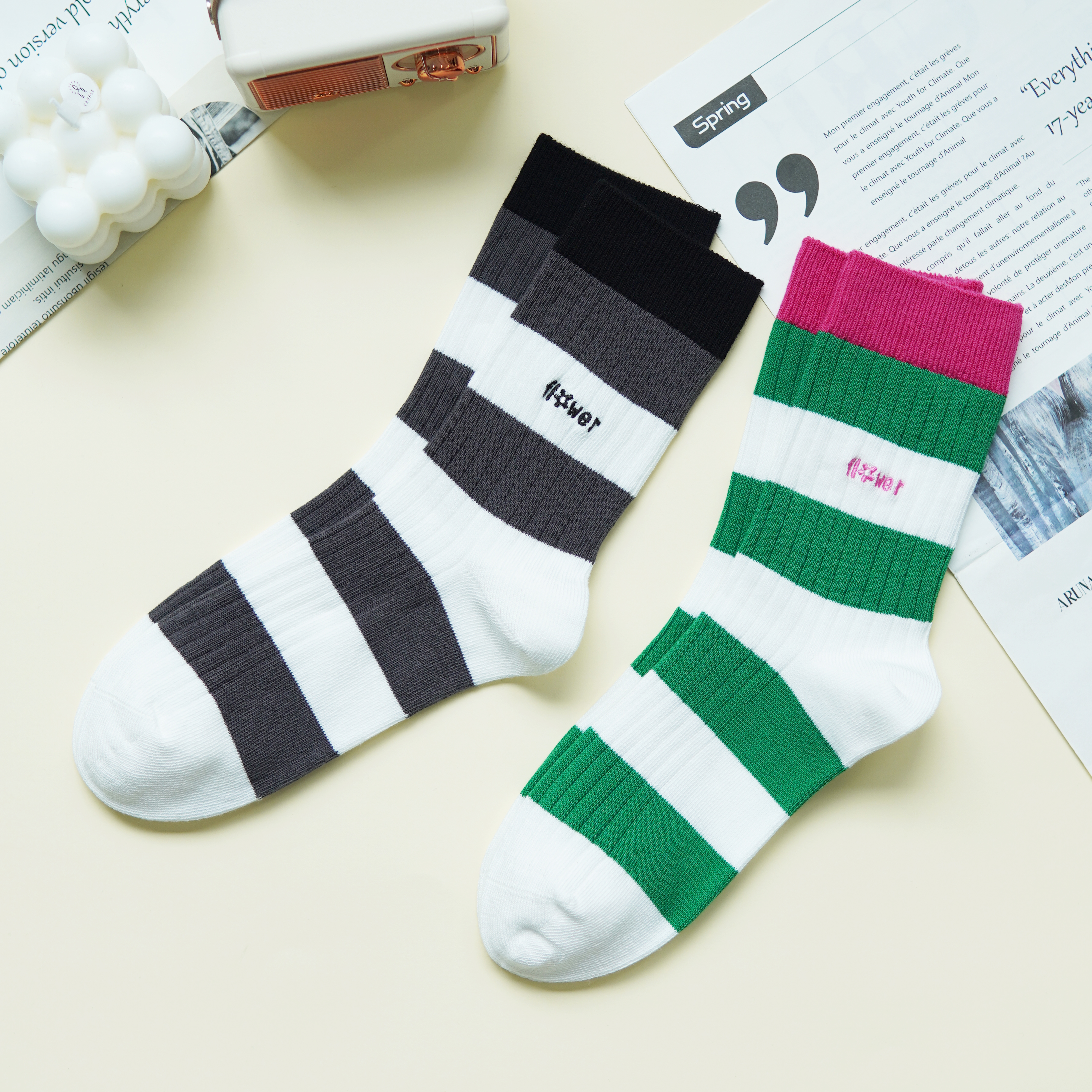 【59元3双】女士时尚条纹秋冬袜子双针彩条袜子【1双装】【2522505】