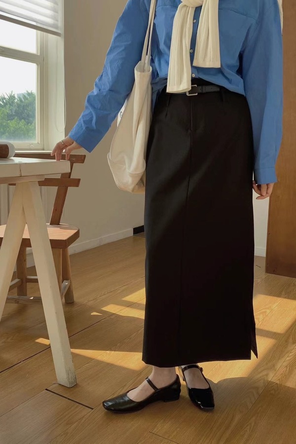 LNNNS 黑色百搭直筒半裙 19834【不含腰带】